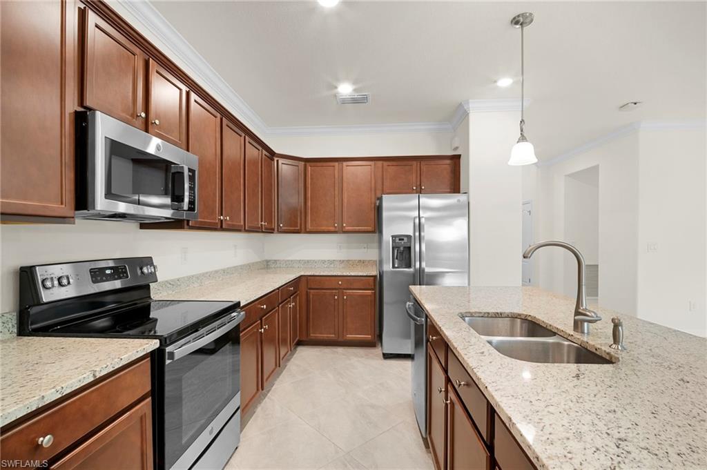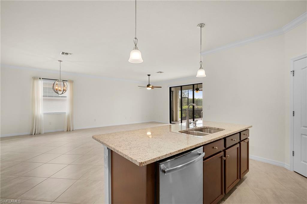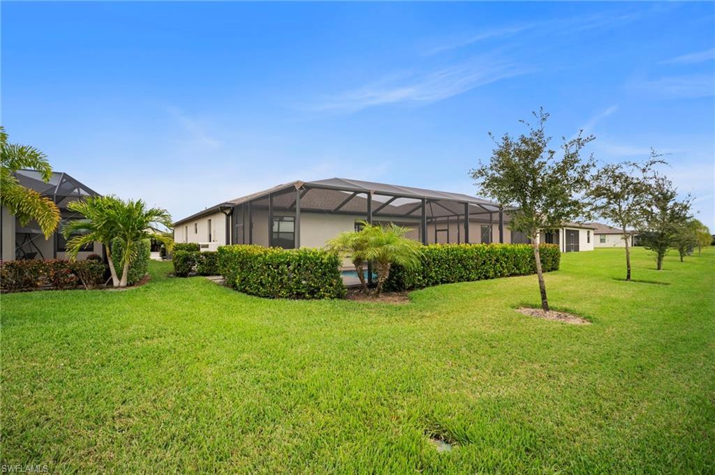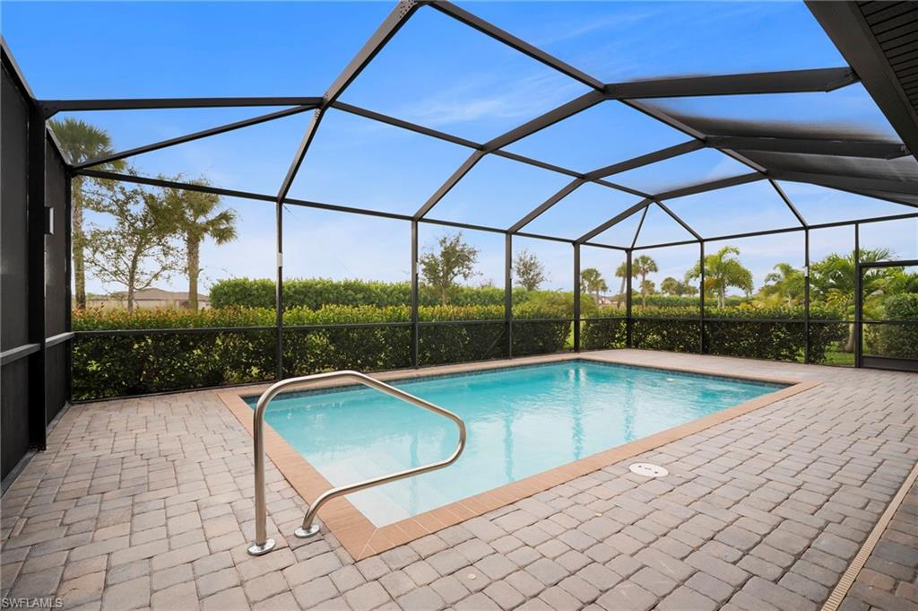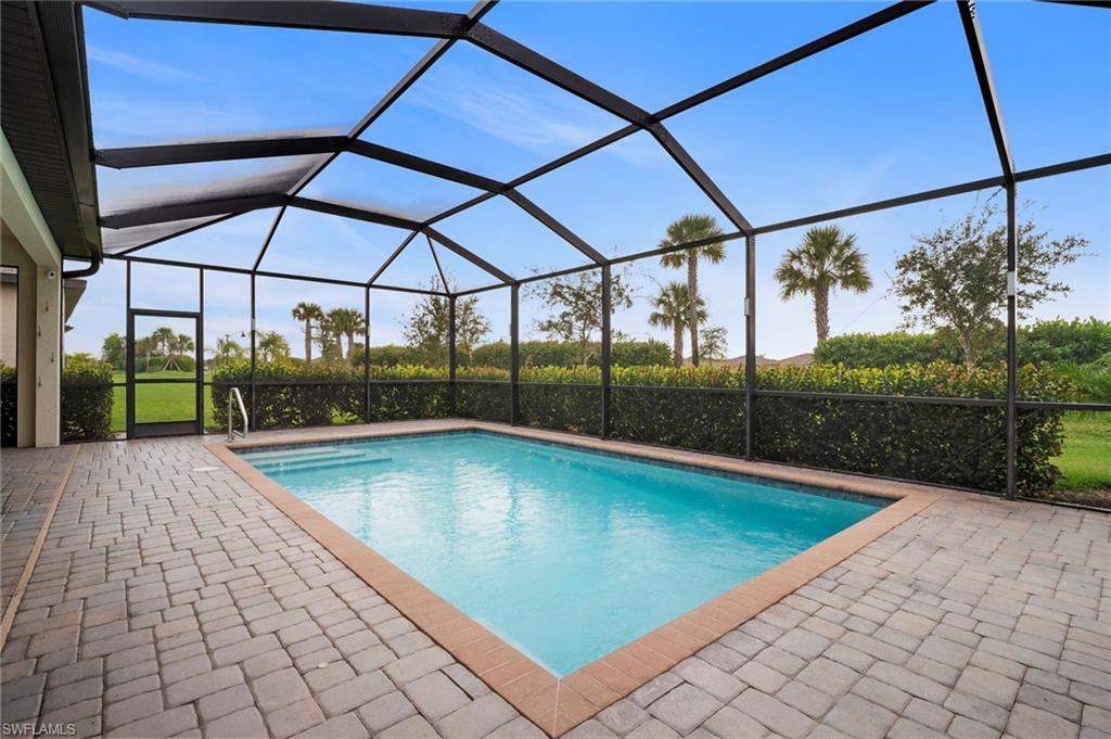 Welcome home! This Venice model by Lennar features 3 bedrooms, 3 FULL bathrooms, and OVER 1800sqft of functional living space. As you pull into the driveway, you'll be greeted by mature landscaping and the upgraded elevation featuring a stone accent. The interior of the home is light and bright with large windows and high ceilings throughout, while the foyer, great room, and kitchen are enhanced by CROWN MOLDING. The focal point of the home is the EXTRA LARGE great room and open concept kitchen. The chestnut brown cabinetry and granite counter tops add a touch of contrast and sophistication to your living space, and the WALK-IN PANTRY provides storage for all of your needs. Pocket sliding glass doors lead you to your COVERED lanai, featuring NEW no-see-um screens, and 8 adjustable pool cage lights. The in-ground chlorine pool is HEATED, making it the perfect place to host friends & family or simply relax in the beautiful Florida weather. Clusia hedges surround the pool cage for additional privacy. A split floor plan, the primary bedroom features a view of the pool, and TWO WALK-IN CLOSETS. The primary bathroom boasts a DOUBLE vanity sink and an oversized walk in shower. The second bedroom is equipped with an EN-SUITE bathroom featuring a shower/tub combo, while the third room provides easy access to the full guest bathroom. Additionally, TILE FLOORS THROUGHOUT make cleaning and maintenance a breeze. Best of all, NO flood insurance is required! Portico is a desirable community with low HOA fees and an impressive array of amenities and activities. Residents enjoy a clubhouse, resort-style pool, fitness center, yoga and exercise room, tennis, pickleball, basketball courts, and a playground. Meeting a neighbor has never been easier with poker nights, ladies nights, craft parties, food truck Mondays, monthly corn hole and so much more! The community also welcomes pets, fences, and low-speed vehicles. With easy access to Palm Beach Boulevard and I-75, youu2019re just minutes from downtown Fort Myers, Miromar Outlets, Gulf Coast Town Center, and The Forum, offering exceptional quality, location, and lifestyle. This home is move-in ready... the only thing missing is YOU!