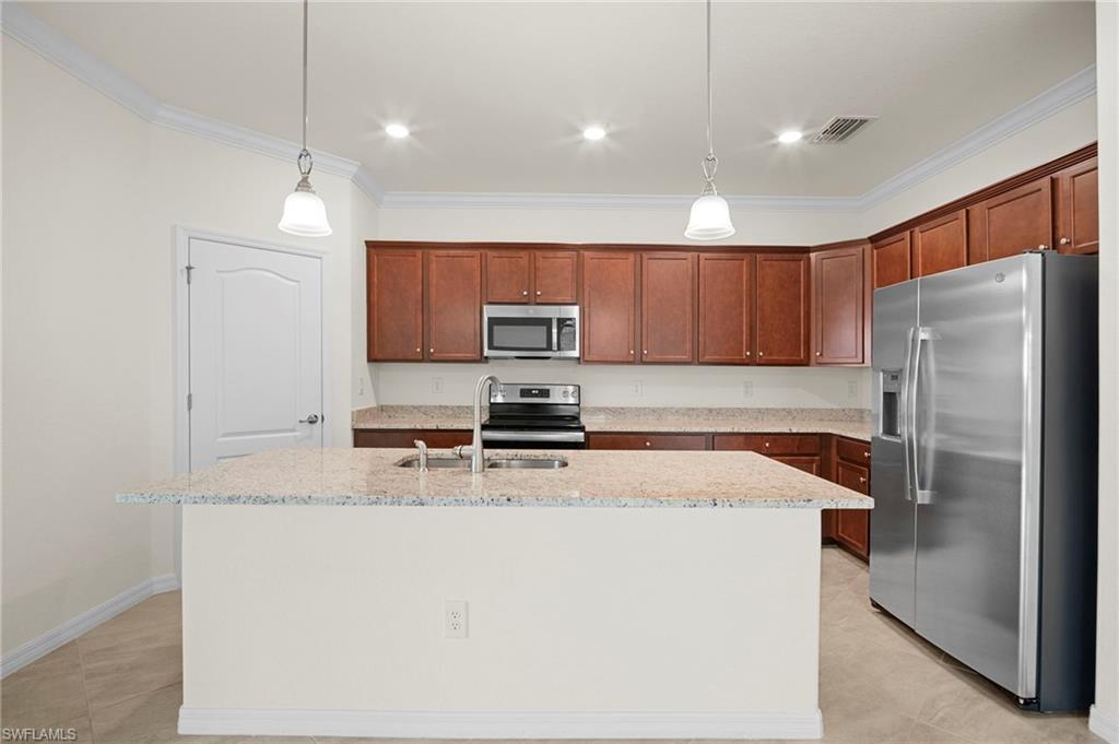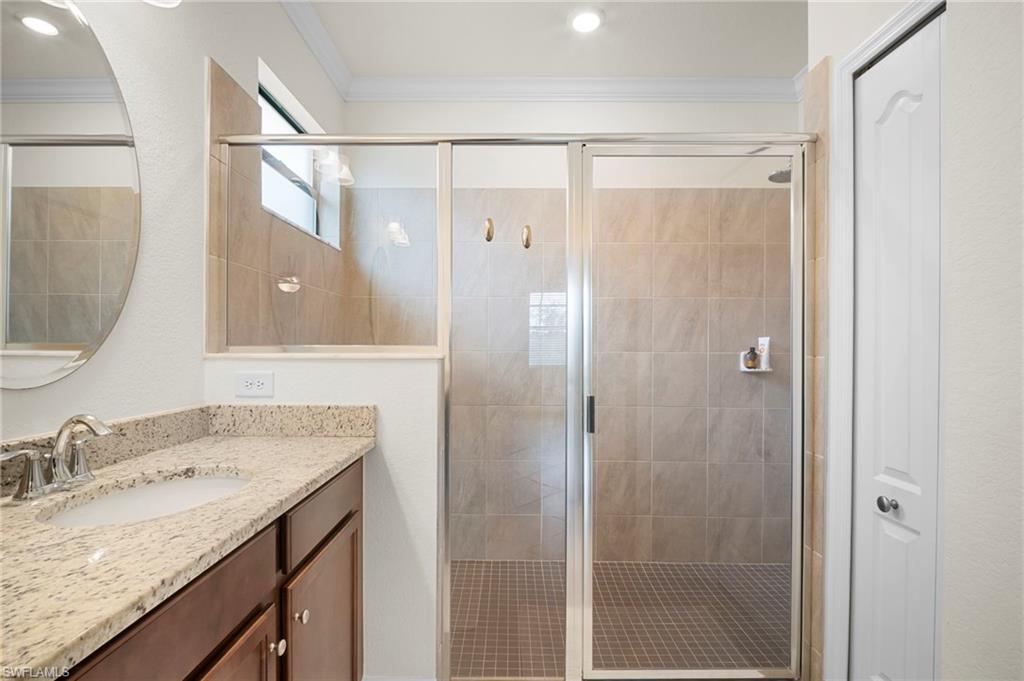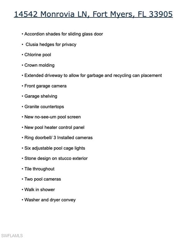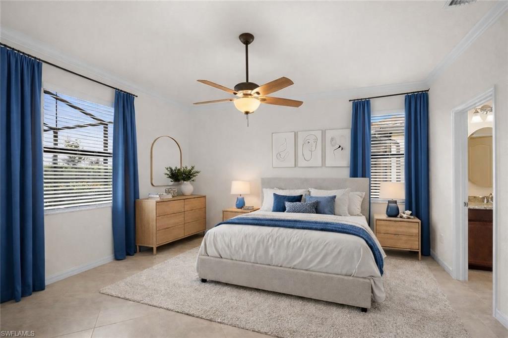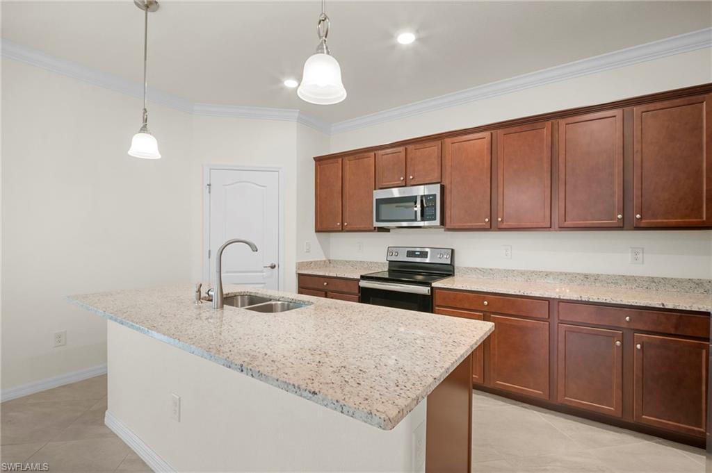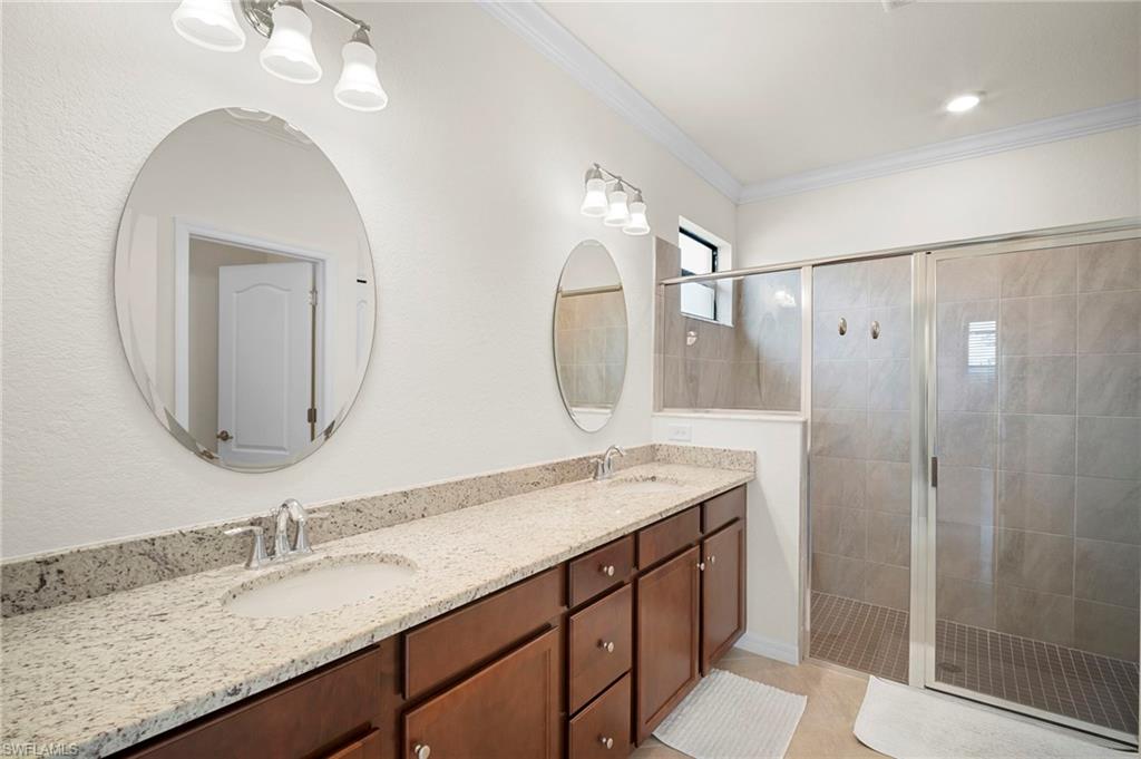 Welcome home! This Venice model by Lennar features 3 bedrooms, 3 FULL bathrooms, and OVER 1800sqft of functional living space. As you pull into the driveway, you'll be greeted by mature landscaping and the upgraded elevation featuring a stone accent. The interior of the home is light and bright with large windows and high ceilings throughout, while the foyer, great room, and kitchen are enhanced by CROWN MOLDING. The focal point of the home is the EXTRA LARGE great room and open concept kitchen. The chestnut brown cabinetry and granite counter tops add a touch of contrast and sophistication to your living space, and the WALK-IN PANTRY provides storage for all of your needs. Pocket sliding glass doors lead you to your COVERED lanai, featuring NEW no-see-um screens, and 8 adjustable pool cage lights. The in-ground chlorine pool is HEATED, making it the perfect place to host friends & family or simply relax in the beautiful Florida weather. Clusia hedges surround the pool cage for additional privacy. A split floor plan, the primary bedroom features a view of the pool, and TWO WALK-IN CLOSETS. The primary bathroom boasts a DOUBLE vanity sink and an oversized walk in shower. The second bedroom is equipped with an EN-SUITE bathroom featuring a shower/tub combo, while the third room provides easy access to the full guest bathroom. Additionally, TILE FLOORS THROUGHOUT make cleaning and maintenance a breeze. Best of all, NO flood insurance is required! Portico is a desirable community with low HOA fees and an impressive array of amenities and activities. Residents enjoy a clubhouse, resort-style pool, fitness center, yoga and exercise room, tennis, pickleball, basketball courts, and a playground. Meeting a neighbor has never been easier with poker nights, ladies nights, craft parties, food truck Mondays, monthly corn hole and so much more! The community also welcomes pets, fences, and low-speed vehicles. With easy access to Palm Beach Boulevard and I-75, youu2019re just minutes from downtown Fort Myers, Miromar Outlets, Gulf Coast Town Center, and The Forum, offering exceptional quality, location, and lifestyle. This home is move-in ready... the only thing missing is YOU!