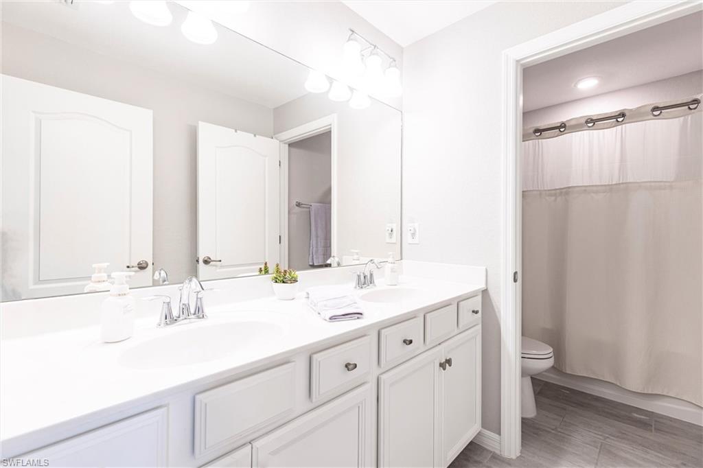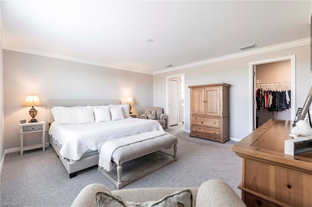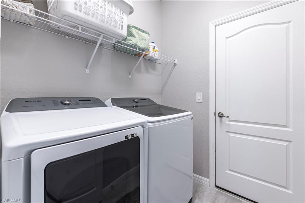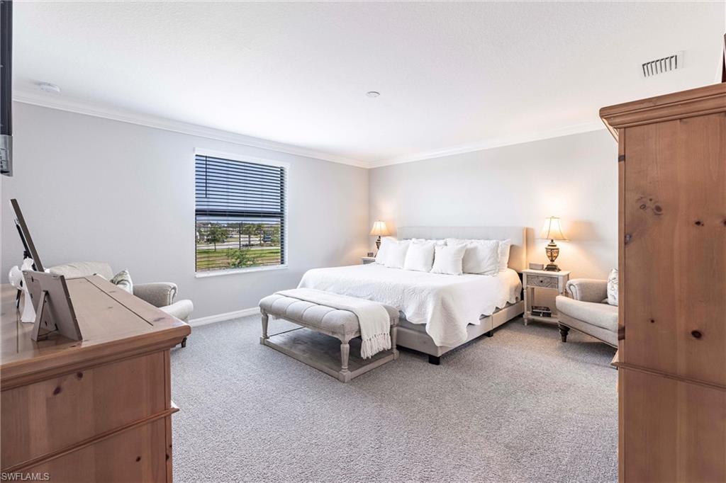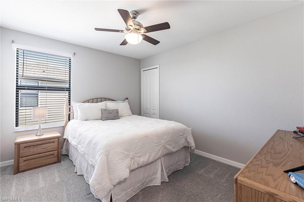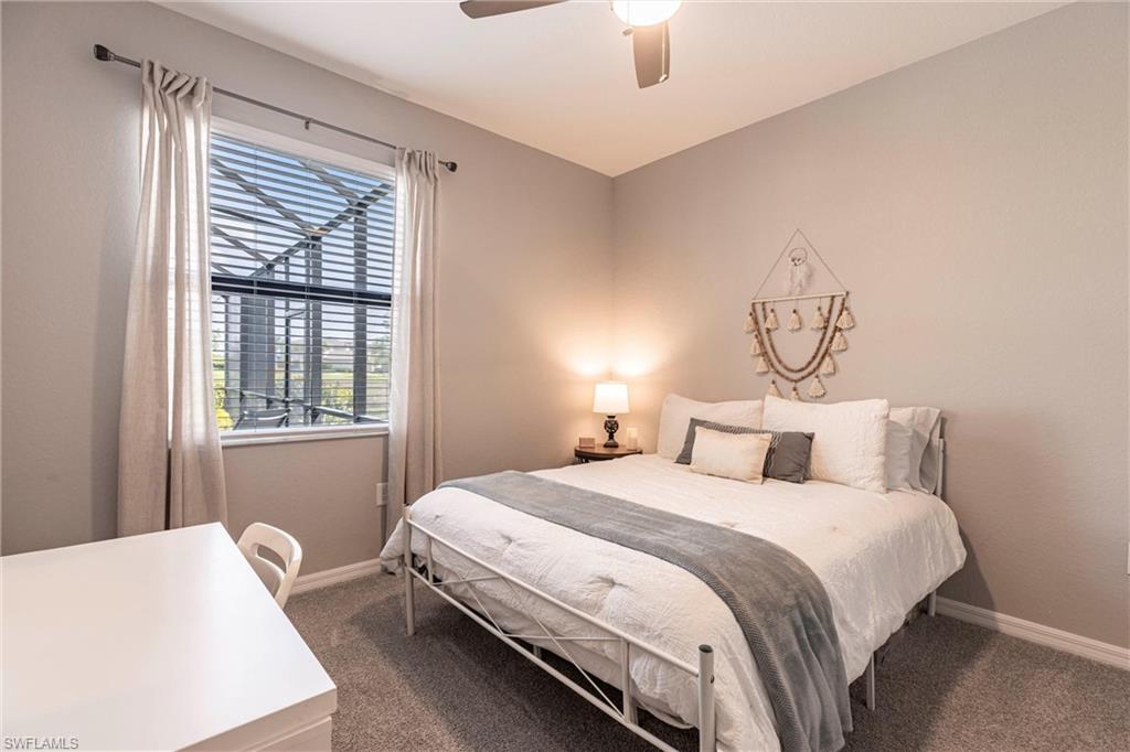 STUNNING POOL HOME W/LAKE VIEW + FULLY FENCED-IN BACKYARD! OVERSIZED LOT, DESIRABLE CUL-DU-SAC LOCATION! Welcome to effortless Florida living in this Amalfi model by Lennar, perfectly situated in the highly sought-after Portico community of Fort Myers.This spacious, beautifully designed smart home blends modern comfort with timeless style, offering an open and inviting layout, ideal for both everyday living and entertaining. Natural light fills the living spaces, highlighting the thoughtful finishes and seamless indoor-outdoor flow. This amazing residence spans over 2,600 square feet of living space under A/C (4 BEDROOMS + DEN + LOFT, 3 BATHROOMS, 2-CAR GARAGE). The first floor has an open layout w/great room, kitchen, den (currently used as office, could also be a formal dining room) and one bedroom w/adjacent full bathroom. The gourmet kitchen is a chef's dream, feat. white cabinets, stainless-steel appliances, sleek granite countertops, a large island w/breakfast bar and a pantry. On the second floor, youu2019ll find a versatile loft space, ideal for a play area or a home office, the spacious owneru2019s suite w/large walk-in closet, owneru2019s bathroom w/dual sinks and walk-in shower, two additional bedrooms offering flexibility for guests or a hobby room and one more full bathroom. Step outside to your private oasis, where a sparkling pool invites you to relax, unwind, and soak up the Southwest Florida sunshine. The fully fenced-in backyard provides added privacy and peace of mindu2014perfect for pets, play, or hosting weekend gatherings. Further upgrades of this amazing home include beautiful tile flooring in all living areas on the first floor and in all bathrooms, upgraded carpet in all bedrooms and loft (installed 2024), custom paint throughout the house and on lanai (2024), crown molding, designer light fixtures and ceiling fans, epoxy garage floor + more. Washer and Dryer are also included! Located in a vibrant, amenity-rich community with convenient access to shopping, dining, and major roadways, this home delivers the best of comfort, convenience, and lifestyle!NO FLOOD INSURANCE REQUIRED! PORTICO is a highly sought-after, access-controlled community w/Low HOA fees. Residents enjoy resort-style amenities, including a clubhouse, community pool, gym, yoga/exercise room, tennis, pickleball, basketball + play area. Pets, Fences & LSVs permitted!
