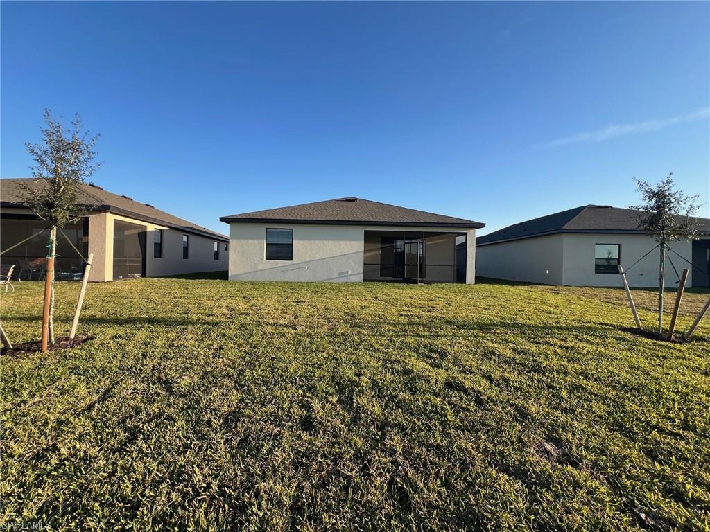 Welcome to 15072 Palamos Circle, a four-bedroom, three-bathroom single-family home in one of Fort Myers's newest gated communities, Portico. This is a brand new, never been lived in home. The home includes bright and modern finishes, an open floor plan, and tile throughout all rooms. The kitchen includes white cabinets, granite countertops, stainless steel appliances, a walk in pantry, and a large island perfect for hosting. The primary suite is tucked into the corner of the home and split from the other three bedrooms, providing privacy from family and guests. The primary suite also includes a walk-in closet and an attached bathroom with a dual vanity and a walk-in shower. A covered lanai allows you to experience the outdoors year-round, and enjoy the view of the yard from the shade. The home is also pet friendly with approval. Portico provides many amenities, including a clubhouse, a community pool with lap lanes, a playground, tennis courts, pickleball courts, basketball courts, and a fitness center.