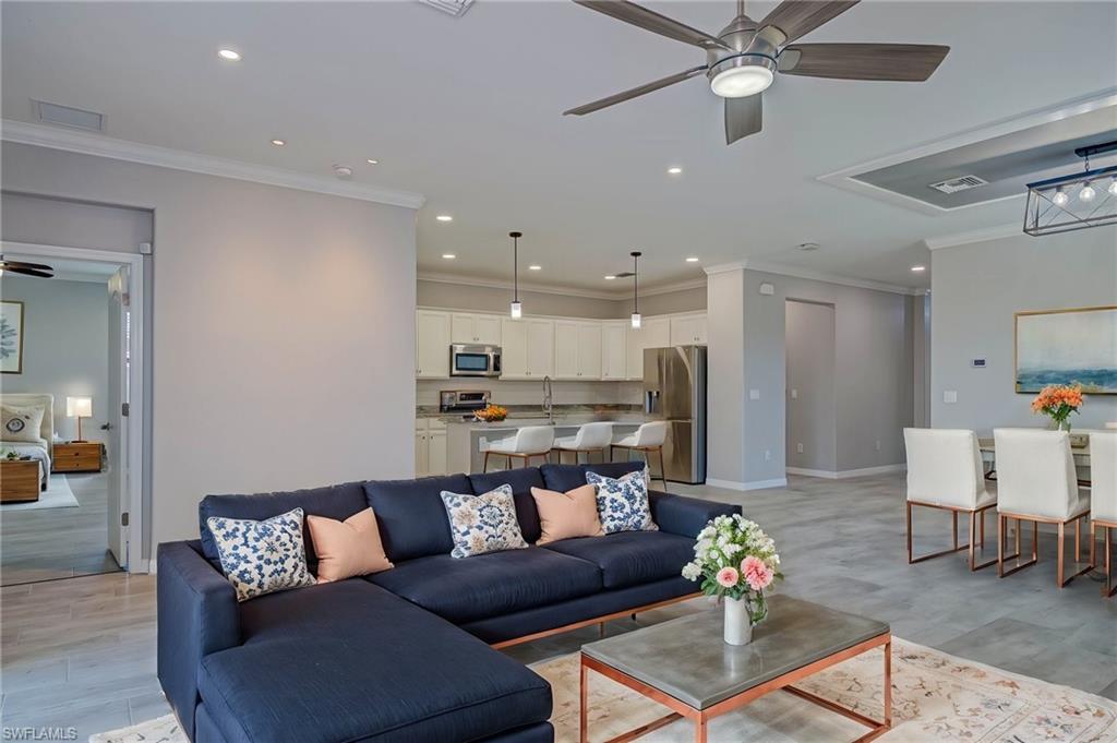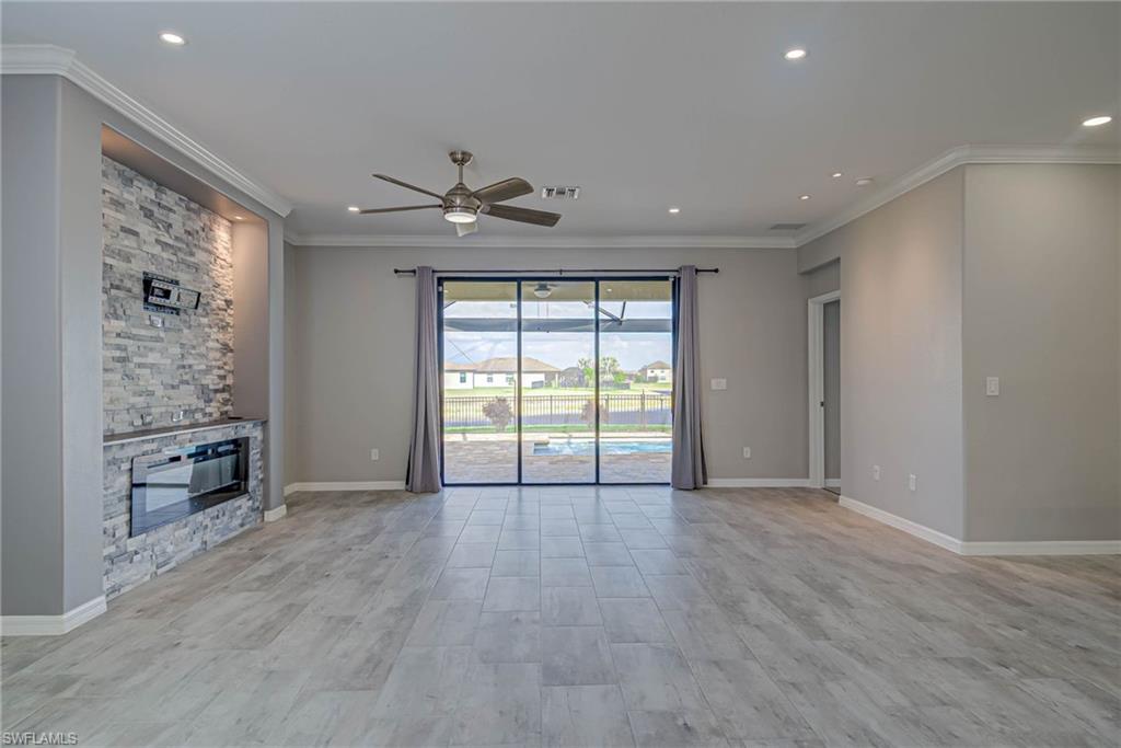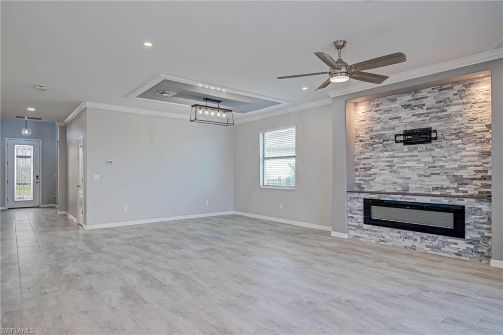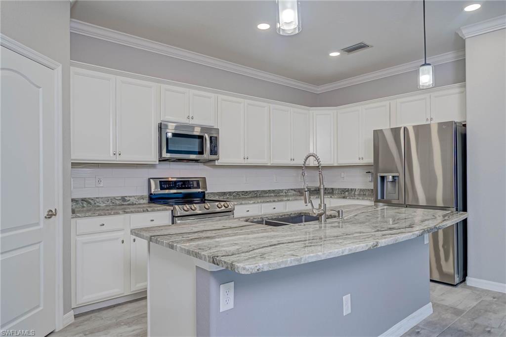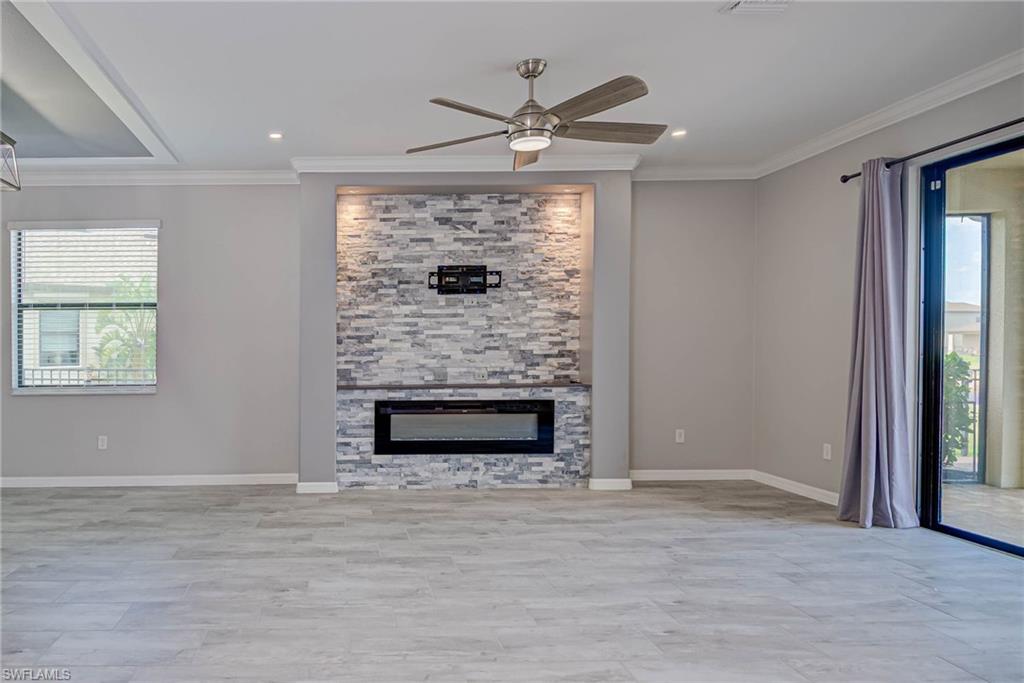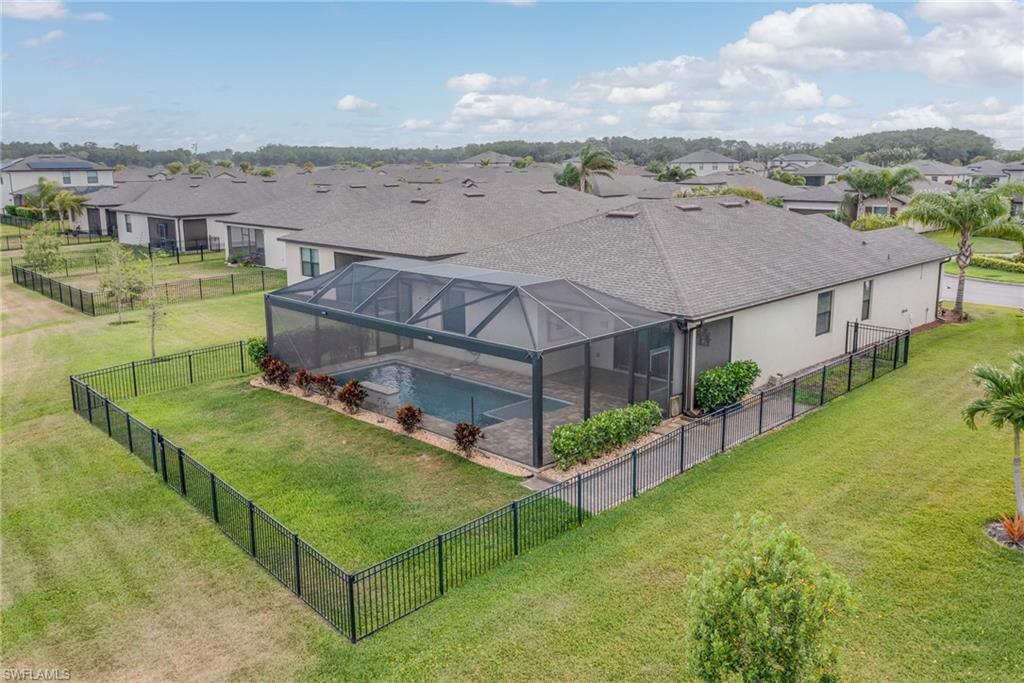 Indulge in the finest lakefront living with this elegant pool home in the gated community of Portico. This 4-bedroom, 3-bath Trevi model is perfectly positioned on a fenced cul-de-sac lot, offering peace, privacy, and stunning views of both sunrise and moonlight reflections over the lake. Inside, youu2019ll find tile flooring throughout and an open-concept layout featuring a chef-inspired island kitchen with granite countertops, stainless steel appliances, and upgraded cabinetry u2014 ideal for both cooking and entertaining.The living area includes a custom built-in media wall with an electric fireplace, creating a warm and inviting ambiance. Step outside to your private screened lanai where a heated pool awaits, perfect for relaxing or hosting friends while enjoying the tranquil water views.Just a short walk away, youu2019ll have access to Porticou2019s resort-style amenities u2014 a clubhouse, fitness center, community pool, tennis and pickleball courts, playground, and scenic walking and biking paths.This isnu2019t just a home; itu2019s a complete lifestyle of comfort, elegance, and convenience. Donu2019t miss your chance to make this lakefront retreat yours!