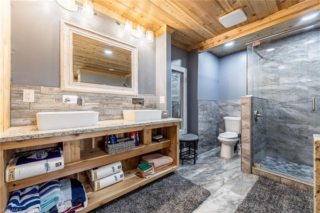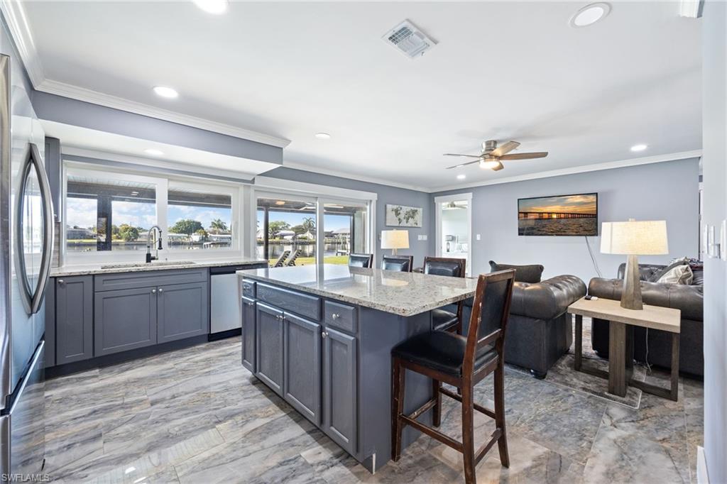 Beautifully updated 4-bedroom, 3.5-bath riverfront pool home located in the desirable River Forest Island community in Fort Myers. This bright and inviting residence features open living spaces with tile flooring throughout, creating a seamless and low-maintenance flow. The kitchen opens to the main living area, making it ideal for entertaining and everyday living, and includes a convenient breakfast bar for casual dining.The spacious primary suite offers a comfortable retreat with a large walk-in closet and a well-appointed ensuite bath featuring warm wood accents, dual sinks, and a separate soaking tub and shower. One additional bedroom also features a walk-in closet, providing plenty of storage.Enjoy true Southwest Florida living from the expansive covered back porch with a pool overlooking the river, perfect for relaxing or entertaining while taking in the peaceful waterfront views. The property also includes a private wooden dock, ideal for boating, fishing, or simply enjoying the beauty of riverfront living.Situated in the charming River Forest Island neighborhood, this home offers a wonderful blend of updated interiors, scenic riverfront views, and indoor-outdoor Florida living, all just minutes from shopping, dining, and everything Fort Myers has to offer.