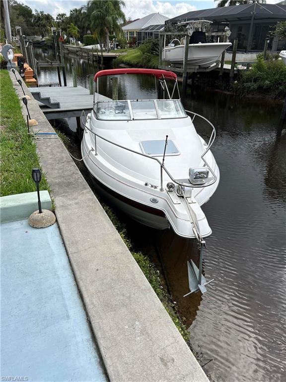 Direct Gulf Access Waterfront Pool Home with Private Dock & 10K Boat LiftWelcome to your turnkey waterfront paradise in the desirable River Forest community, offering direct Gulf access and a quick ride to the Caloosahatchee River. Located in a quiet boating neighborhood with NO-HOME-ASSOCIATION fees and just minutes to I-75.This beautifully remodeled 3-bedroom, 2-bath canal home sits on a 105-ft waterfront lot with seawall, private dock, and new 10,000-lb boat lift-2023. Enjoy the Florida boating lifestyle and breathtaking sunsets.Major upgrades include new roof-2023, new gutters-2025, and heated pool with new equipment-2022 with a beautiful paver lanai.This beautiful home features ceramic tile flooring throughout, fresh interior/exterior paint, Moda glass doors, and an updated kitchen with high-end Samsung appliances-2023. Includes dedicated laundry room with high-end Samsung washer & dryer-2023. Extra air-conditioned room in the back.Situated on an oversized 0.34-acre lot with private well-fed irrigation plus a 2-car garage with epoxy flooring.Bring your boat and enjoy the Southwest Florida waterfront lifestyle.