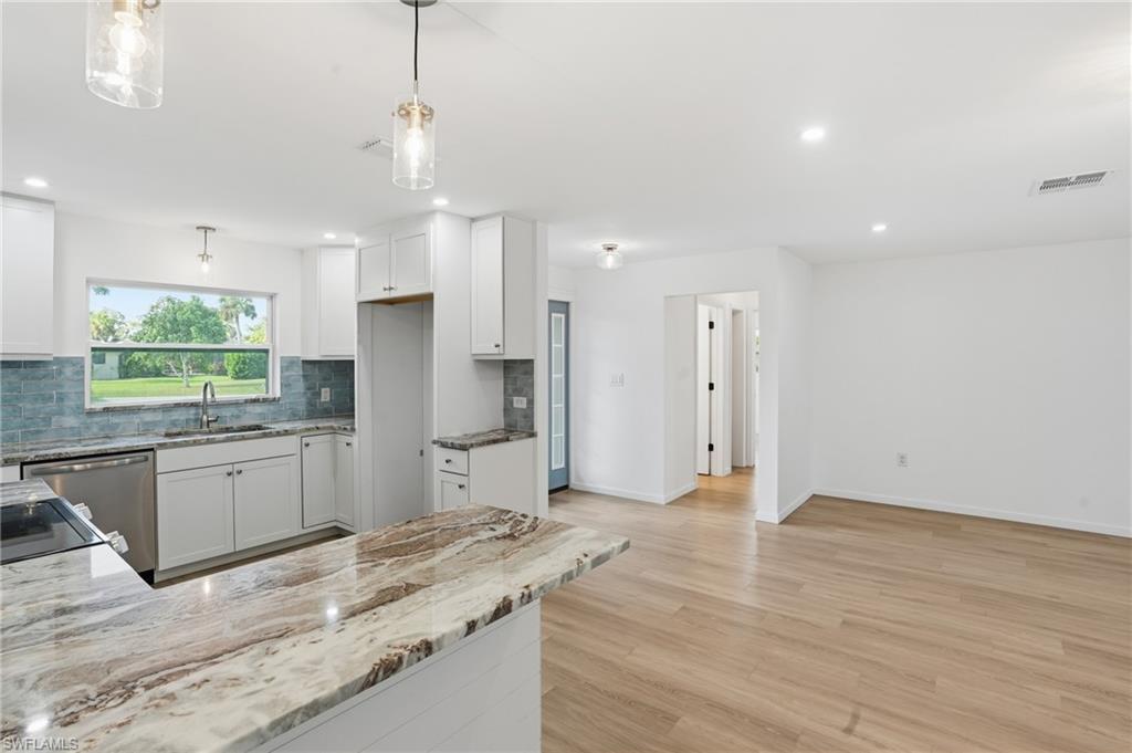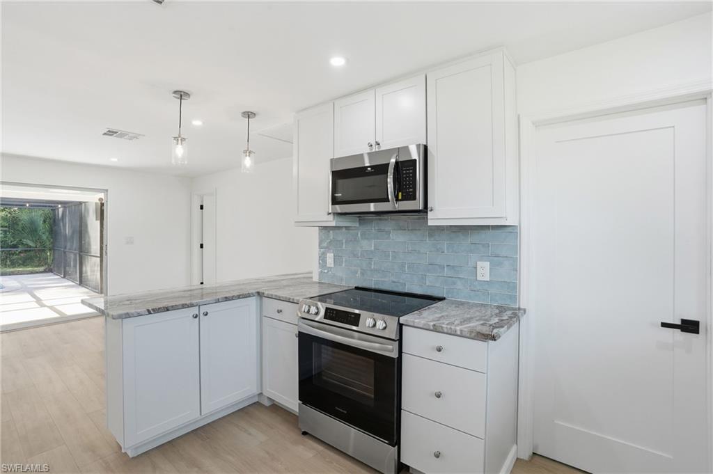 If homes had a dating profile, hereu2019s what this one would say: Iu2019m a freshly remodeled pool home sitting confidently on nearly half an acre, angled just right on my lot to show off all the extra yard space I offer for kids, pets, and anyone who loves room to roam. Iu2019m looking for new owners who appreciate charm, comfort, and a whole lot of outdoor living.I have 3 bedrooms and 2 full baths arranged in a split floor plan, and my French-style front door lets natural light pour inu2014showing off my new floors, fresh paint, and all the updates Iu2019ve received. My kitchen is one of my best features, with white cabinetry, stainless steel appliances, and a coastal-inspired tile backsplash that brings a calming pop of color to my otherwise neutral palette.My primary bedroom includes a private ensuite with a walk-in shower and a spacious walk-in closetu2014because everyone deserves a little luxury. Step out back and youu2019ll find my screened-in pool and covered lanai, perfectly designed for Florida summers, weekend gatherings, and relaxing afternoons.Iu2019ve been completely refreshed from top to bottom, including new flooring, paint, remodeled kitchen and baths, updated plumbing and electrical, new appliances, windows, AC, hot water heater, pool surface, pool tile, pool pump, and more. Iu2019m move-in ready and proud of it.As part of the River Forest community, I also come with access to a private boat ramp that gets you to the Caloosahatchee River in minutesu2014leading straight to the Gulf of Mexico and world-class beaches. Youu2019re welcome to keep your boat right at home with me; there are no restrictions here.If youu2019re looking for a home thatu2019s charming, updated, spacious, and fun, I might just be your perfect match. Come tour me in personu2014I think weu2019ll hit it off.