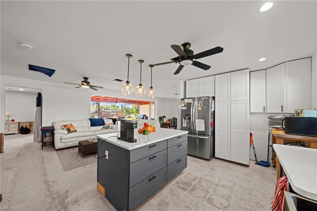 Direct Sailboat Gulf Access with Open Water in Minutes! Incredible waterfront opportunity on a wide DEEP WATER CANAL with direct sailboat access and open water just minutes away. Perfectly positioned near the Caloosahatchee River, this property offers fast access to the Gulf of Mexico, Sanibel, Captiva, and Fort Myers Beach. Boaters and water enthusiasts will love the private dock, lift, and rare grandfathered-in boat ramp, ideal for launching your boat, canoe, kayak, or jet skis right from your backyard. Enjoy the soothing sounds of the water and the coastal breeze that make this home feel like a private beach retreat.Set on a large .35-acre lot, this 1,403-square-foot home features 3 bedrooms, 2 baths, and a garage, along with a 238-square-foot bonus room perfect for a workshop, home office, or recreation space. Many major updates are already complete including electrical, plumbing, kitchen, and a new roof installed in 2017, giving you the freedom to personalize the finishing touches to your own style. The hard work has been done; now you can design your dream waterfront home without paying for someone elseu2019s taste.Inside, the owners have reimagined the floor plan by opening walls, expanding the kitchen with a modern island, and creating a bright, open-concept layout ideal for entertaining. Step through the living area to a large screened patio overlooking the water, the perfect spot for morning coffee, evening cocktails, or weekend barbecues under the Florida sun.For boating enthusiasts, this is truly a boateru2019s paradise: a 10,000-pound boat lift and a private boat ramp. Turn east for the Gulf islands and world-class fishing, or head west across the Okeechobee Waterway and reach Floridau2019s Atlantic Coast by dayu2019s end. From there, the adventure continues to the Keys, Miami, Fort Lauderdale, or even the Bahamas. Enjoy the rare combination of deep water access, privacy, and potential in one of Fort Myersu2019 most desirable waterfront corridors. Whether you renovate, expand, or simply enjoy the charm as it is, this home offers endless possibilities and an unbeatable lifestyle on the water.