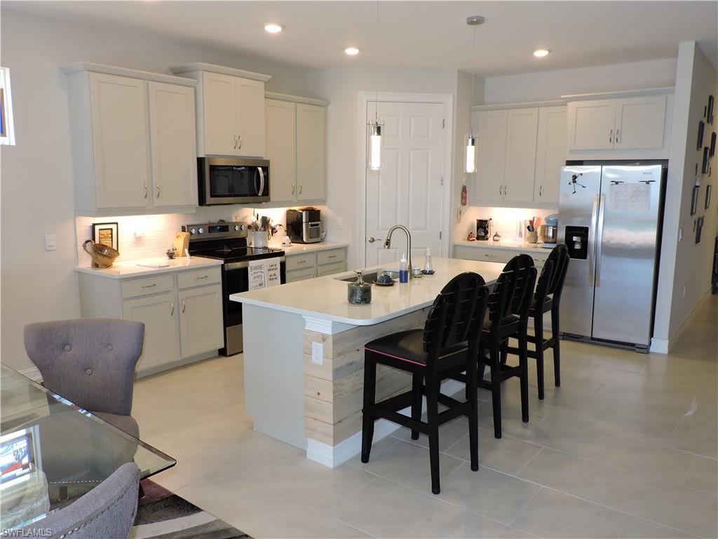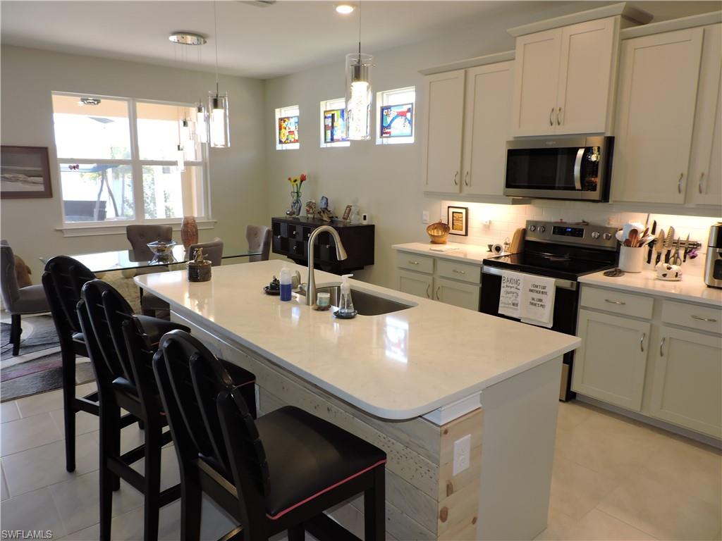 WOW!! $30,000 price drop!! This home is located in a established, well managed, and very active 55+ community. The home is three years young and no need to worry about finishing all the necessities, it's tastefully detailed and complete!! Featuring a salt water pool, 4 bedrooms, 2 full baths, and a 2 car garage. This spacious home is handicap accessible and offers designer upgrades throughout including a large private primary suite with custom wall trim, full bath, walk-in shower and lots of closet space. The 2 guest bedrooms share an adjoining full bath. A fourth bedroom can be used as a flex/office room. The kitchen/dining/great room, overlooks the extended lanai and your very own pool with views of the private sparkling lake and bird sanctuary looking to the west for beautiful relaxing sunsets. The home is light and bright and offers many upgrades including light gray designer cabinets, a large walk-in pantry, quartz counters and a large quartz countertop island. Additional extras include upgraded ceiling fans throughout and accent wall trim. The spacious kitchen extras include soft close drawers, under cabinet lighting in kitchen, and extra decorative kitchen lighting. The primary ensuite includes a spacious primary bath featuring premium quartz counters with double sinks, and a tile/glass walk-in shower enclosure. Cascades of River Hall is a 55+ gated community with an active lifestyle and many amenities to enjoy including an amenity center that features a large pool, hot tub, grill to cook out, extensive gym, community/meeting room, bocci, pickle ball and tennis courts. Many year round social activities are well attended and enjoyed by all the residents. Low HOA fees of 343 mo. include landscaping, irrigation, cable tv, high speed internet, security gate and community management. Bring your suitcase and start living your Florida dream today! Not in a Flood Zone. Home is fully handicap accessible.