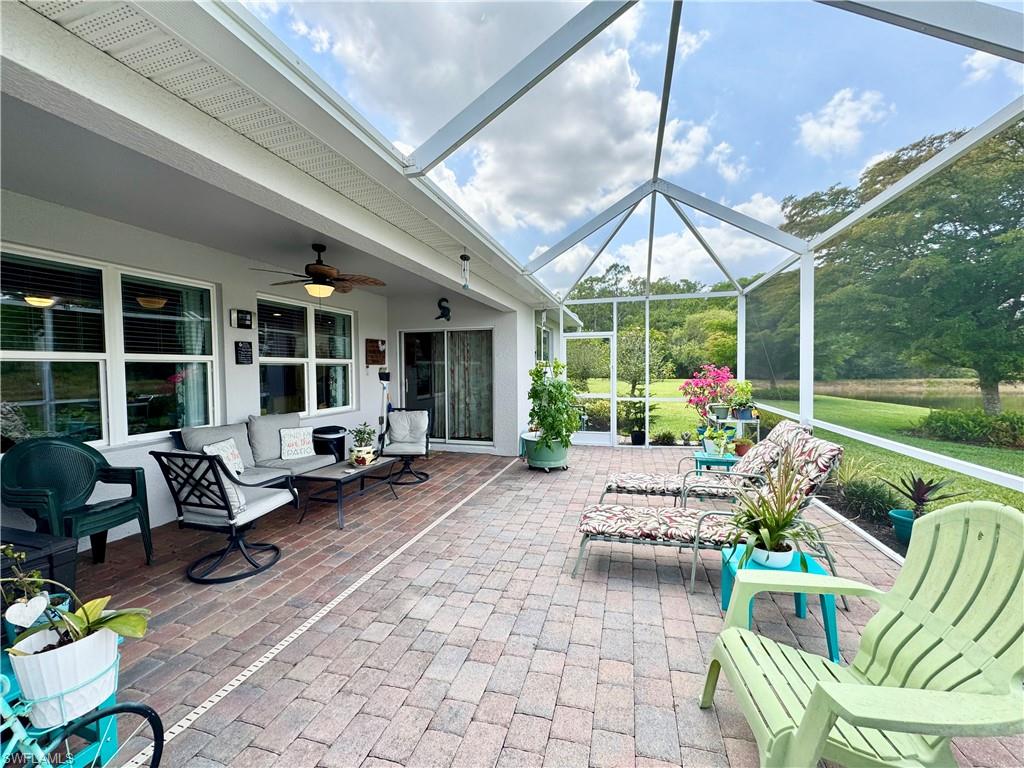 Beautifully decorated, bright and cheery with fun Florida colors! You'll be happy in this home because it feels so good! Rare Denton Floor Plan with 2319 sq ft under A/C, 3 bedroom plus a huge den or could easily be a 4th bedroom, 2 baths. Brand new tile roof and a new $8,000 AC with 10 year warranty, so your largest expense is already paid for! The kitchen has rich wood cabinets, a large Island with granite counter tops and a more than ample pantry. Upgraded appliances. Dining room just off the kitchen has plenty of room for a matching hutch or buffet. This house has closets - I mean closets everywhere and good size closets! The Lanai has been extended because this is where you will want to spend lots of time.. Relax and enjoy while sitting an the Lanai and looking out over the lake. This is a vibrant 55+ community that has a lot going on all the time and great amenities. Furniture is available for purchase separate from the house contract if you are interested. A few things will be excluded. This home is NOT in a flood zone! NO FLOOD INSURANCE NEEDED!!