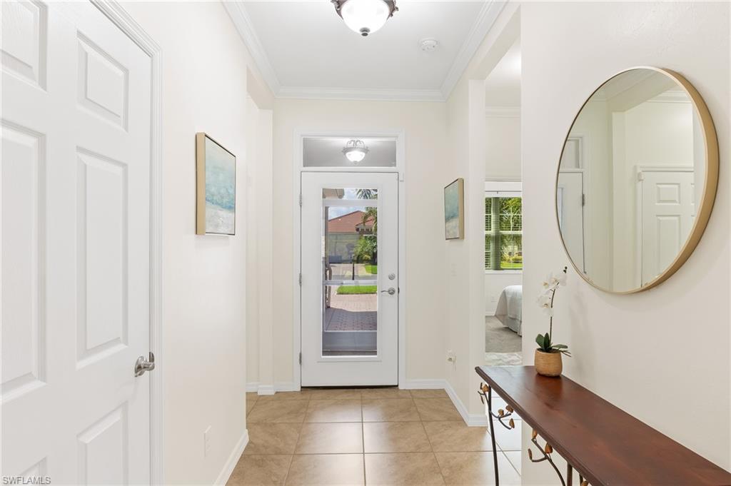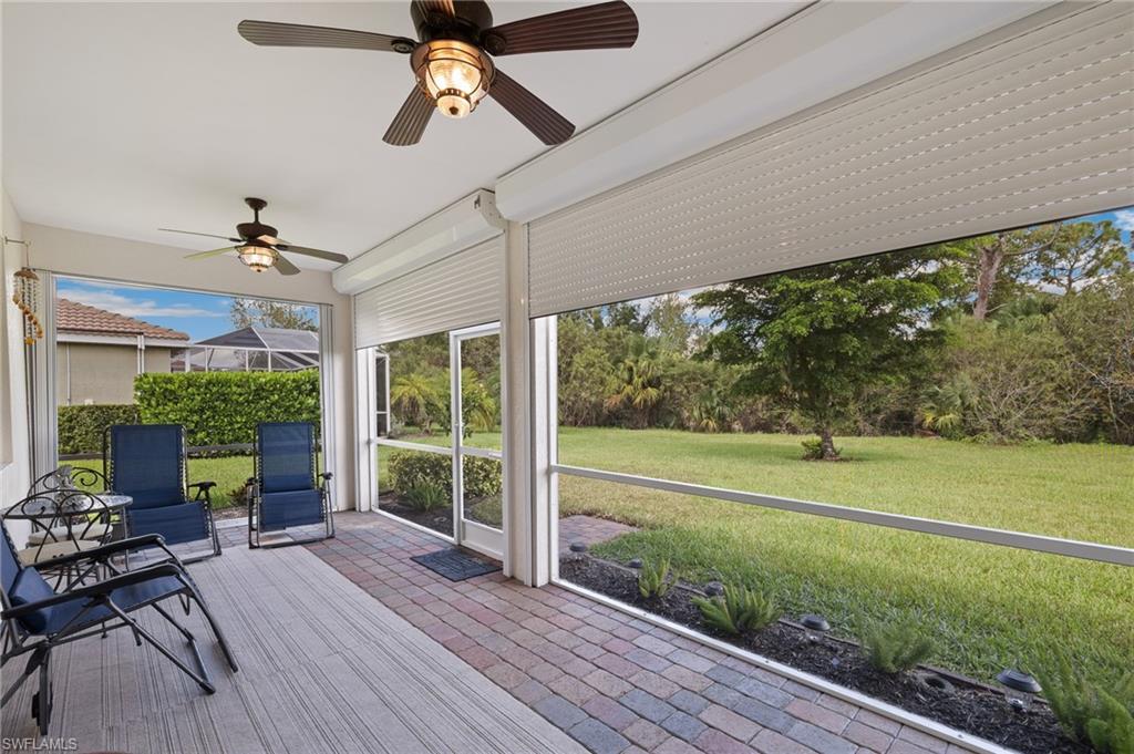 LET'S MAKEA DEAL ON THIS SWEET RETREAT! MOVE-IN READY!! This EXCITING new listing is being sold FURNISHED and is AVAILABLE NOW! Pride of Ownership Shows inside and out with an expanded driveway, additional paver patio out front, and crown trim throughout. For your peace of mind, WINDOWS AND FRONT DOOR HAVE BEEN UPGRADED TO IMPACT RESISTANT, the lanai has ELECTRIC HURRICANE RATED ROLL-DOWN SHUTTERS & 1 ACCORDION SHUTTER FOR FULL PROTECTION. For added cooling/heating efficiency, ADDITIONAL INSULATION was added, including over the garage and lanai areas. AC new in 2023 and UV Light and Cleaning Systems added in 2025. The kitchen offers a new disposal, decorative island trim and backsplash, wood cabinetry with crown trim, granite countertops, and stainless appliances. The dining area has great light and views of the extra deep backyard and landscaping. The primary suite is spacious, and the primary bath has been updated with NEW SHOWER TILE AND GLASS ENCLOSURE. The laundry room has built-in cabinetry/sink. Interior has been painted with fresh, neutral colors. The exterior was painted in 2024 and a full house gutter system added. The garage is wired for a generator. Cascades at River Hall is a great 55+ community offering an exciting Florida lifestyle with full amenities. The recreation center has a gorgeous pool, spa, game and event rooms with kitchen, outdoor grilling area, pickle ball, tennis courts, bocce ball, an exercise room and more! The Cascades is close to I75, the airport, hospitals, great shopping, dining, and our terrific Downtown River District with Art and Music Fests!