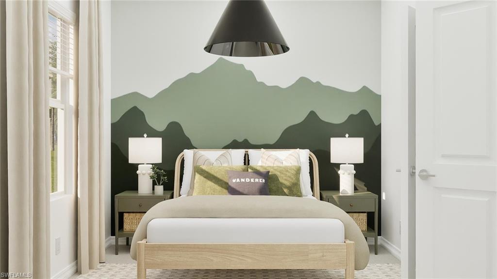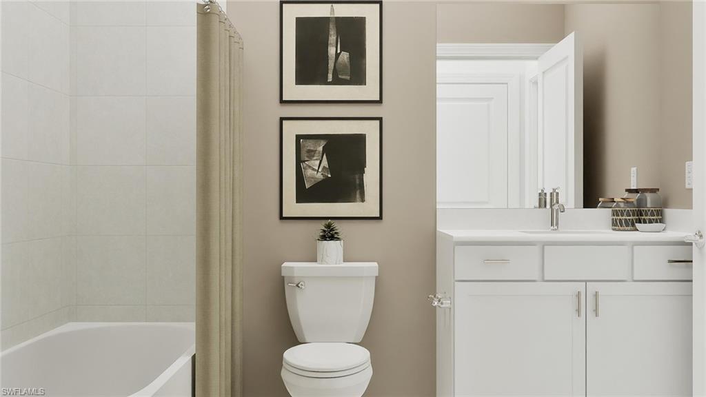 Hampton Lakes is a collection of new single-family homes for sale at the River Hall masterplan in Alva, FL. This gated community is designed to cater to active lifestyles, featuring an array of amenities including a fitness center, resort-style pool and tennis, pickle ball and bocce ball courts. This new single-story home is perfect for families who live an active lifestyle. Two secondary bedrooms share a bathroom in the hall at the front of the home, while a third is around the corner with a private bathroom. Down the foyer is the open living area, which includes a kitchen, dining room and family room with a covered patio. The owneru2019s suite is tucked into the rear corner with an attached bathroom. Prices, dimensions and features may vary and are subject to change. Photos are for illustrative purposes only. Estimated delivery date is Apr/May 2026.