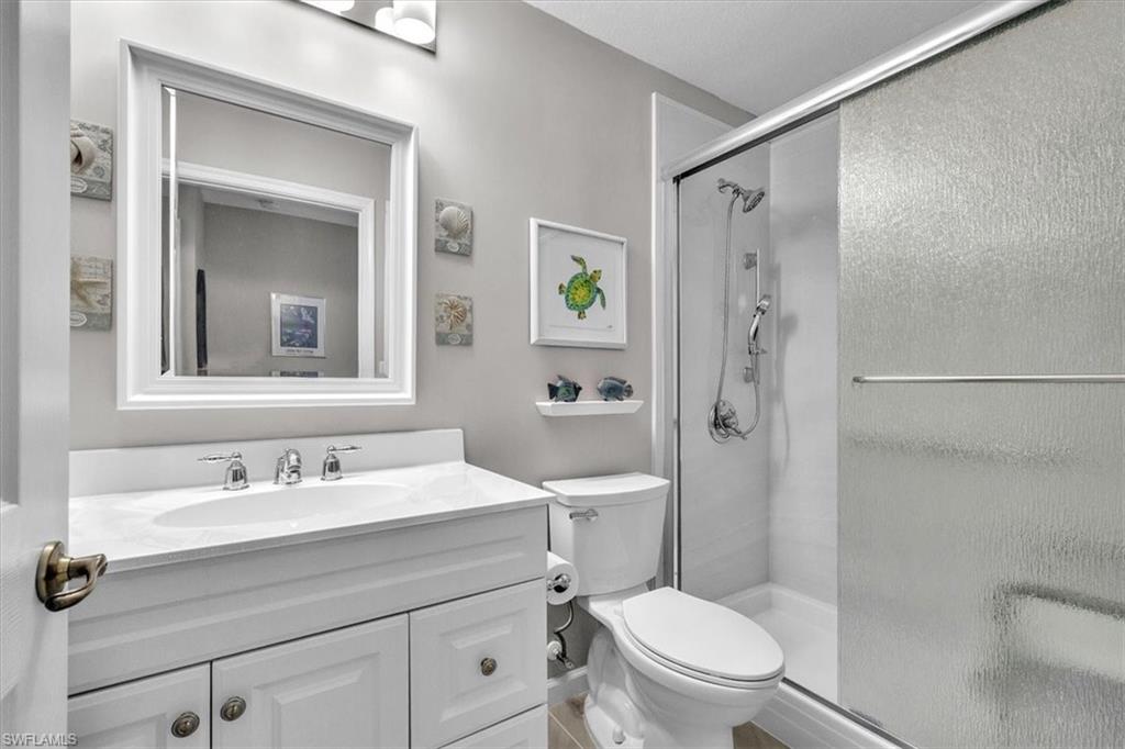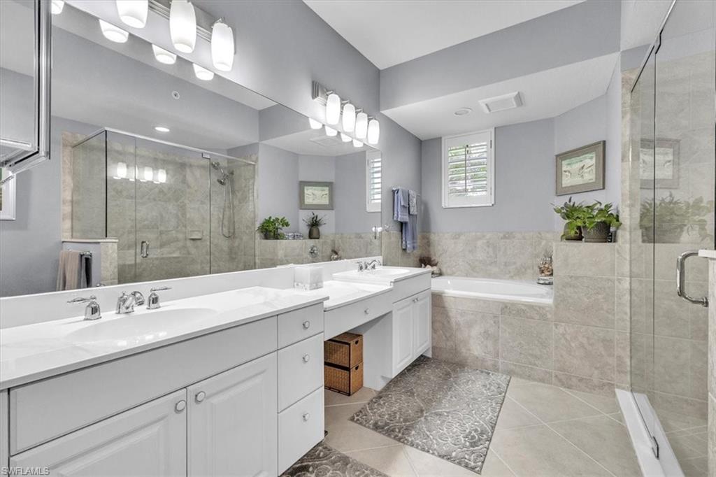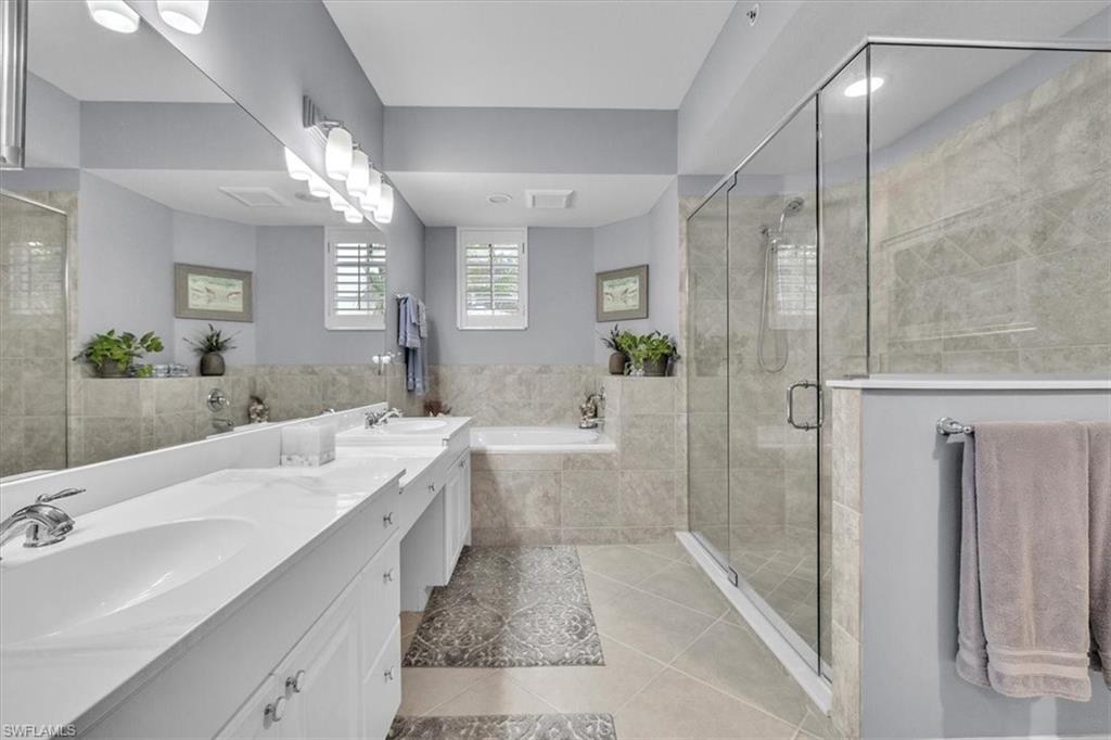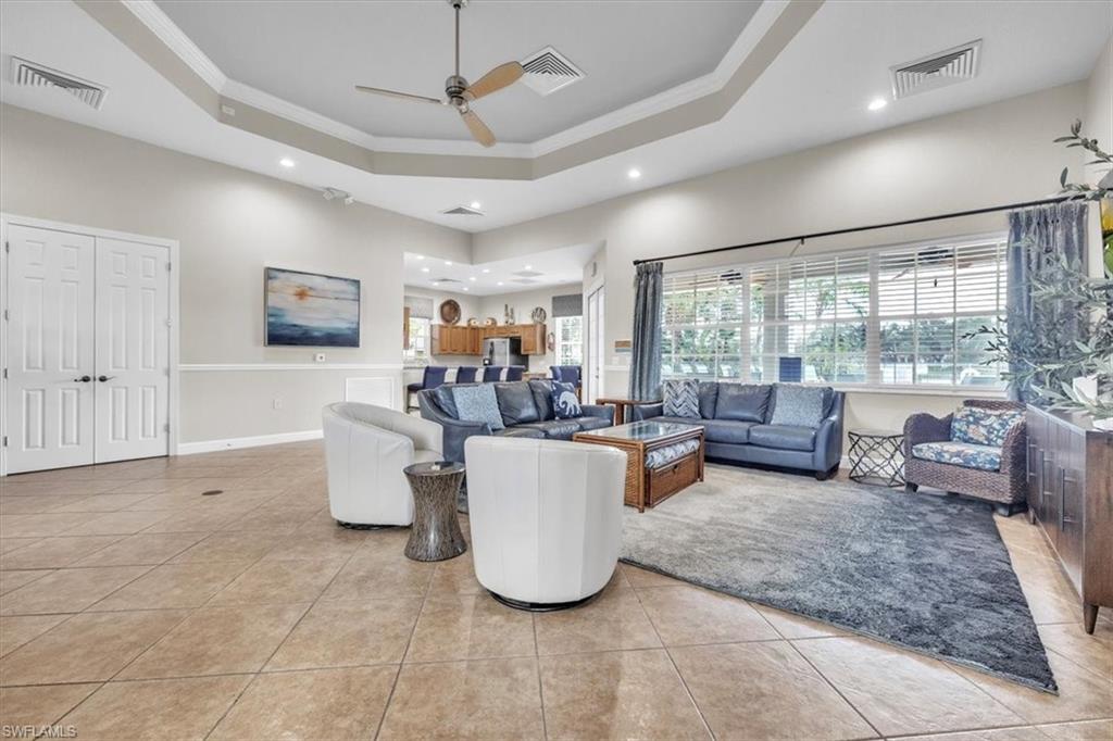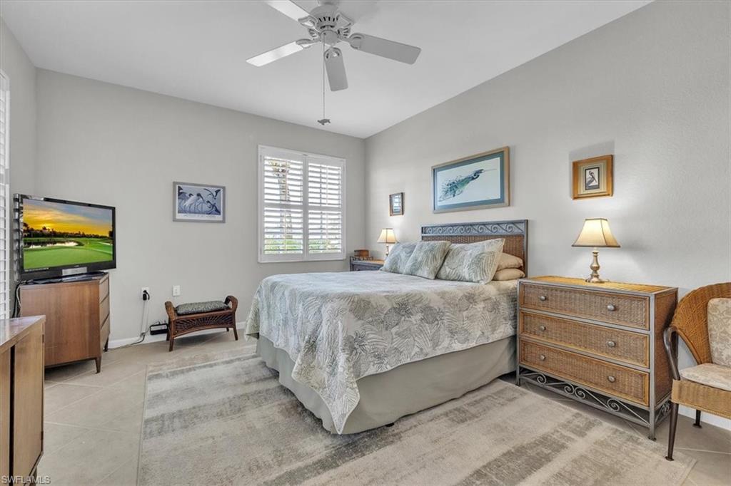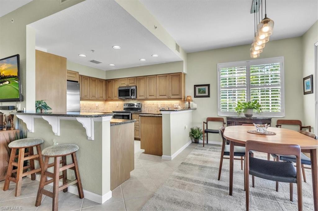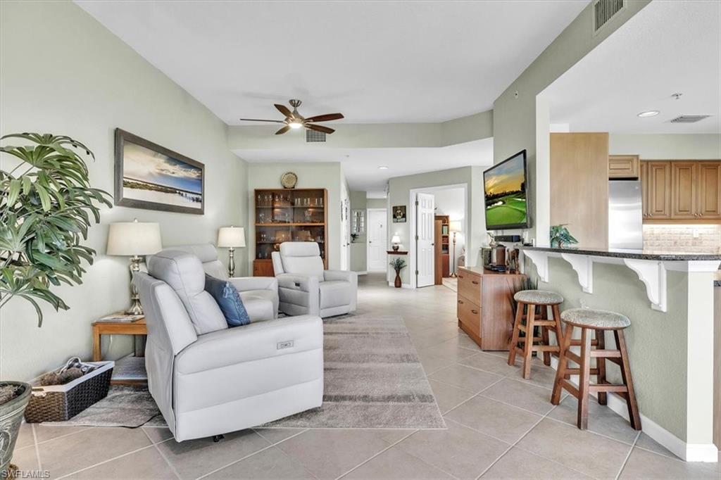 Great opportunity to own a first floor unit in the gated Verandah community in the desirable Pebblebrook neighborhood. The exceptional home features 1532 sq. ft. of living space with 2 Bedrooms, Den, 2 Baths, screened in Lanai and two car garage. As you enter the home you realize that you are in a special place. The open feel greets you into the spacious family room and adjacent dining room with diagonal tile throughout. The kitchen is open and also has a view of the family room. It has newer appliances, granite countertops, attractive backsplash and plenty of cabinet space with a nice pantry. A spacious breakfast room area complement the main living area. The primary bedroom is large with access to the Lanai and features plantation shutters. The primary bathroom has dual sinks and a nice vanity with upgraded lighting and lighter color cabinets. Add to this a walk in shower and large tub and you have everything you need in this Master suite. The expansive Den has two French doors which add privacy if you decide to use the space for additional sleeping areas. The second bedroom and second bath with a walk in shower also provide plenty of space for your guests or family when they visit. Newer washer and dryer and AC unit, plantation shutters throughout and an epoxy garage floor with overhead racks for storage also add to the appeal of this home. The condo has a Radon mitigation system in placed. Pebblebrook has new roofs and new paint which was done recently. The screened in Lanai with Hurricane Storm shutters has one of the better views in Verandah with a view of hole #17 on the Jack Nicklaus designed course and a lake in the background. Enjoy the evening sunsets from the spacious lanai with your favorite beverage and while you entertain friends and family. Pebblebrook offers all of its residents a separate community pool/spa, fitness area and community room. Additionally as a member of the Verandah Club you will have access to 2 Championship golf courses designed by jack Nicklaus and Bob Cupp, tennis facility, state of art of fitness facility, resort style pool, pickleball, 9 miles of walking and jogging paths, kayaks, playground, dog park, multiple restaurants and an active calendar to meet everyone's needs. Don't miss out on the opportunity to own your own piece of paradise.