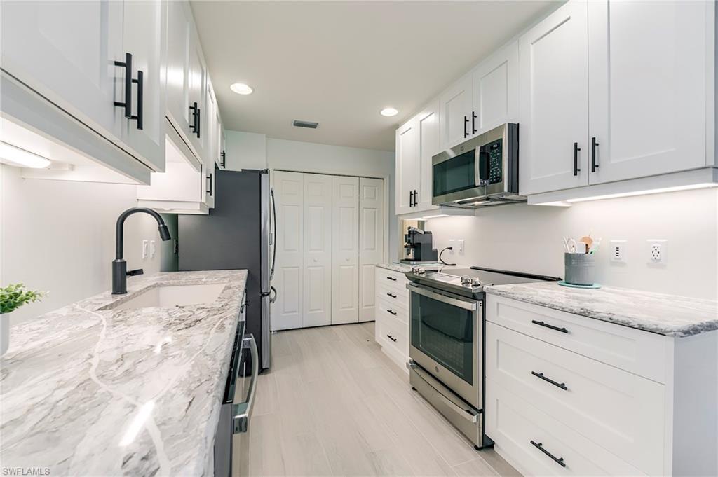 GREAT OPPORTUNITY to own a completely renovated condo with a spectacular golf course view!!! This light and bright 2 bedroom plus den, 2 bathroom, 2 car attached garage condo has so many recent upgrades you'll swear you're in a brand new property! Recent additions include new tile plank flooring throughout the main living areas and the lanai, new carpet in the den and bedrooms, freshly painted interior, new stainless kitchen appliances, new quartz kitchen counters, new kitchen cabinets, new plantation shutters throughout the house, new phantom screen door on the front door, new epoxy floor in the garage and a new picture window screen on the lanai that allows an unobstructed view of the fairway and green of Hole #5 of the Bob Cupp designed Old Orange golf course. This condo has to be seen in person to be truly appreciated. Don't delay, make your appointment to see it today!!