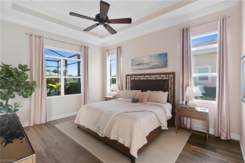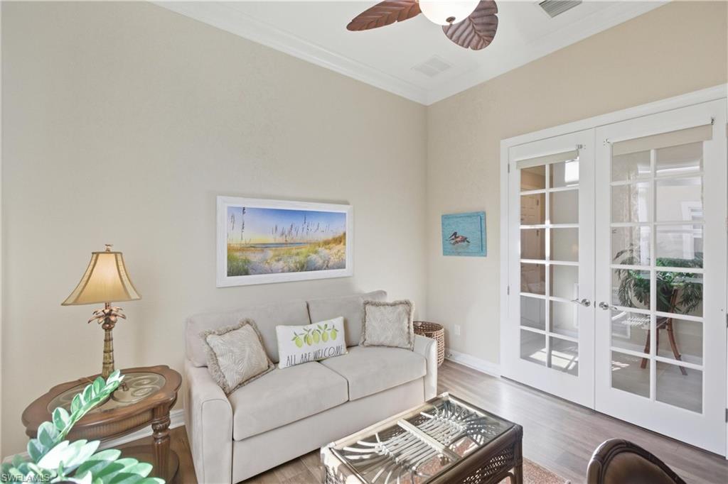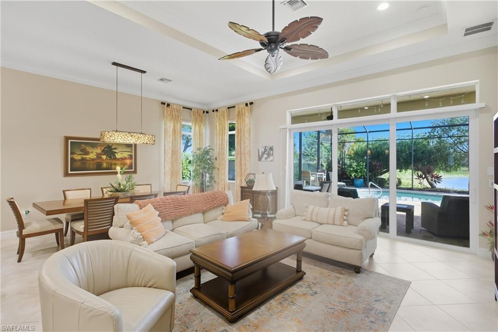 Excellent opportunity to own this popular Largo model with numerous upgrades at an exceptional value. Why purchase new when you can have BETTER THAN NEW? This stunning 2 bedroom plus den, 2 bathroom home boasts just under 2000 square feet of living space and is move-in ready with a plethora of enhancements. The eastern exposure lanai, saltwater pool, and new gas pool heater provide the perfect outdoor oasis with a spectacular lake view. Included with this home is a full house generator with a brand new battery, newer appliances, impact-resistant windows and doors, phantom front door, upgraded kitchen cabinets with quartz countertops, backsplash, and quartz in the bathrooms, tile flooring in the main areas, plank tile in the den and primary bedroom, crown molding throughout, custom outdoor kitchen with refrigerator, epoxy floors in the 2-car garage, upgraded faucets and sinks, walk-in pantry, window treatments, ring cameras, great fans in all rooms, and beautiful lighting. The home's open layout and efficient use of space make it ideal for entertaining family and friends. It features a spacious family room and kitchen complex with an ample dining room adjacent. The large den can be used as a flex den if needed. The primary suite has an expansive bedroom and bathroom with a walk-in closet, separate shower and tub and plenty of natural light to enhance the living space. In the evening, you can enjoy the outdoor lighting that enhances the ambiance from your serene and private Lanai which overlooks the Lake. The owner has a golf membership, so you can bypass any waitlist that may exist. Situated in the vibrant and active gated Verandah community, the amenities include 2 championship 18 hole golf courses designed by Jack Nicklaus and Bob Cupp, state of the art fitness center, tennis, pickleball, bocce courts, resort style pool, kayaks on the Orange River, dog park, playground, 9 miles of walking and biking paths, multiple restaurants and a social calendar that satisfies everyone's needs. This home is truly exceptional and move in ready. Come secure your place in paradise today. A must see before it is gone at this unbelievable price!