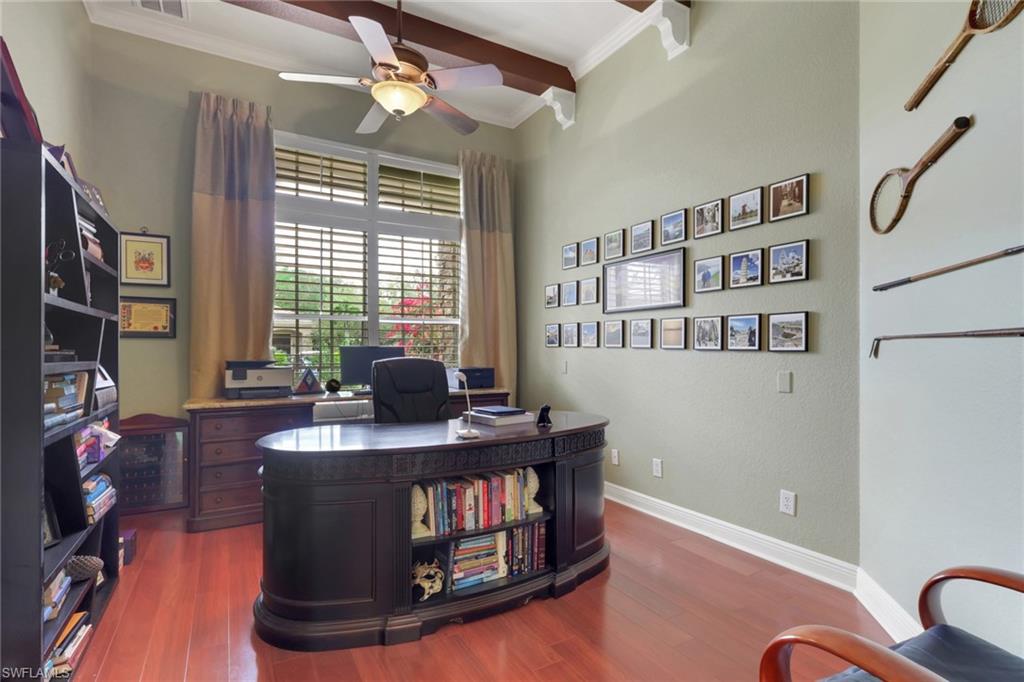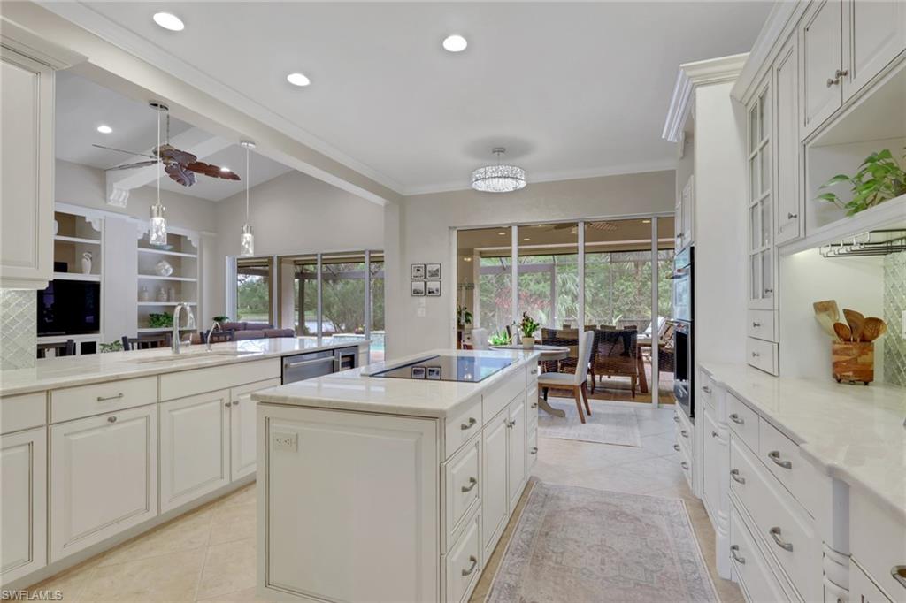 Experience the quintessential Florida lifestyle in this stunning 3-bedroom, 4-bath home perfectly situated in the heart of Verandah. Designed for those who love to entertain, this home seamlessly blends sophisticated indoor living with a spectacular outdoor oasis. Step through the zero-corner sliding glass doors to find a wonderful under-cover entertaining area perfect for alfresco dining or lounging in the shade. Take a dip in your sparkling pool or lounge on the sundeck, and enjoy the picture window views of the local preserve and nearby pond. This home offers a split-bedroom floor plan to ensure maximum privacy for owners and guests alike. Enjoy peace of mind with electric hurricane shutters and a whole house generator. Each of the three ensuite bedrooms is a private retreatu2014ideal for high-capacity hosting. Impeccably maintained, it has a new roof, reverse osmosis water system, mini split AC in the garage, and hardwood flooring in the office, bedroom and closets. There are so many upgraded features to love! Verandah also has two championship golf courses, over 9 miles of walking/biking trails, free use of kayaks, tennis and pickleball, and many social activities.