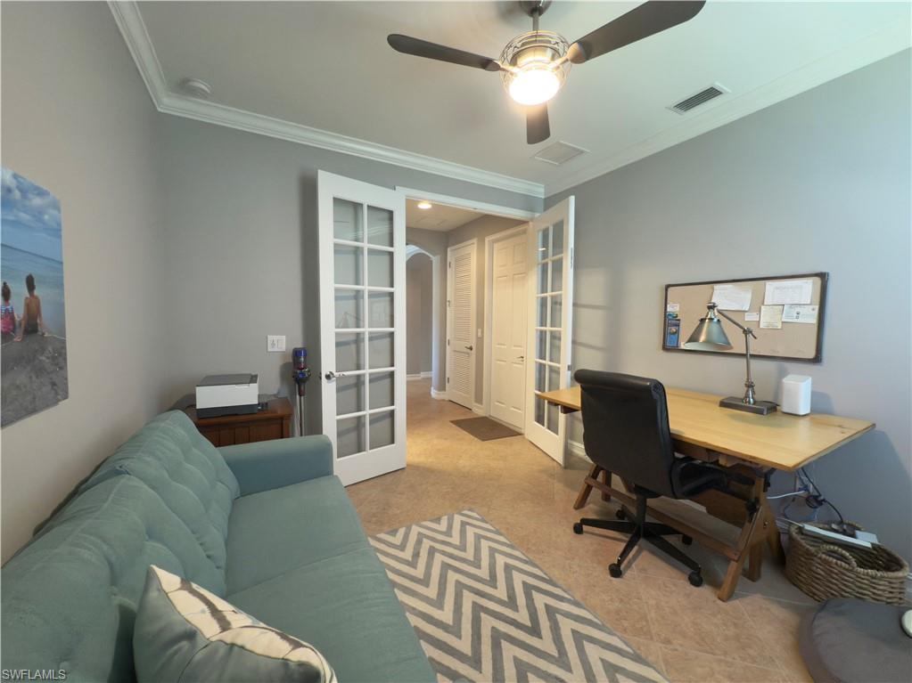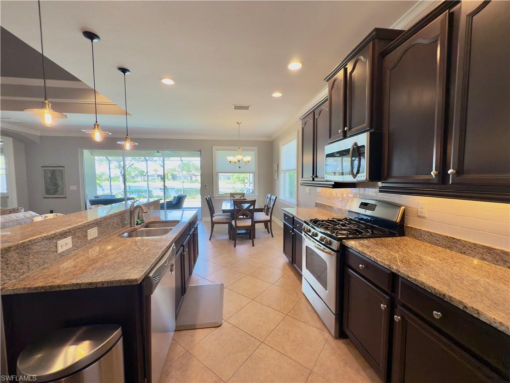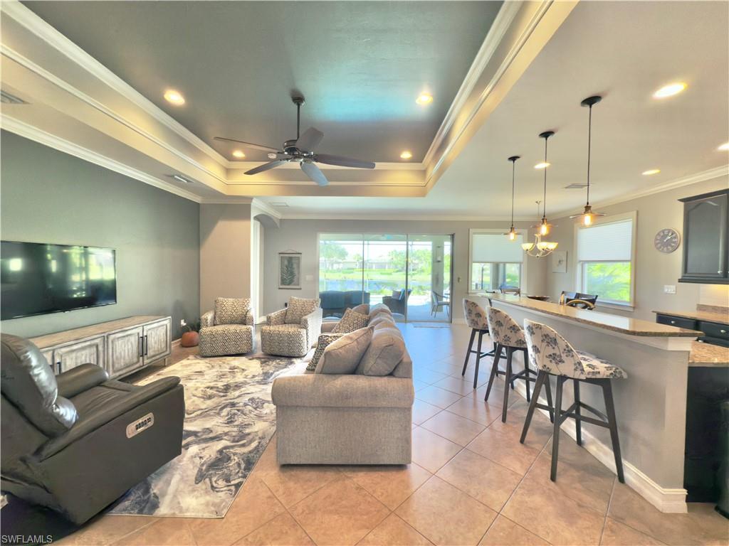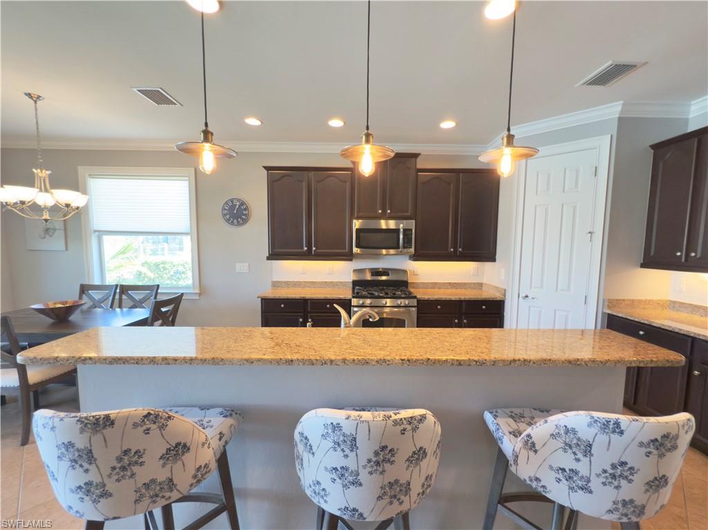 Equity Equity! Welcome to your dream oasis! As you step into the spacious foyer, you're immediately greeted by breathtaking floor-to-ceiling glass sliders that showcase the sparkling saltwater pool and serene lake view with lush landscaping and Oaks for shade. The inviting salt water pool is complemented by a Waterfall Spa. This home boasts of Vaulted Tray Ceilings, Elegant Crown Molding and a Spacious open kitchen that's an entertainers delight. The Kitchen includes earth tone granite counter tops, Custom Espresso soft close cabinets and shelving, a walk-in shelved pantry & Natural Gas Stove. There are solar panels for the SALT WATER pool and a gas pool heater, Summer-2024 New HVAC with remote thermostatu00a0, Aug-2025 freshly painted interior of home, Summer-2025, new pool heater and control panel - aqua link, New Refrigerator/freezer - March, 2025, Landscape lighting, Roof professionally cleaned-summer 2025, Lanai pavers and driveway power washed - Sept., 2025, Window coverings are throughout the home. Premier Suite features his and hers walk-in closets and a relaxing garden tub with an oversized walk in tiled shower. The large attached 2 car garage gives plenty of extra storage space! The Verandah has 36 holes of Championship Golf designed by The Jack Nicklaus, Jack Nicklaus II, and Bob Cupp Golf Courses. Also, featuring tennis, kayaking, miles of biking and walking trails. Conveniently close to airports. Enjoy the lush well landscaped community of 9 miles with walking trails/boardwalk, golfing, tennis, kayaking, (residents also own kayak river launch) boating, fishing, and dining right on the water at Blossoms Sports Bar for casual eating and enjoying cocktails overlooking the river in true Old Florida Style. Or, if you prefer more fine Dining, get reservations at the `River House.` This Community Has IT ALL! Hurry and get your showing scheduled! What a way to spend a Life!!!