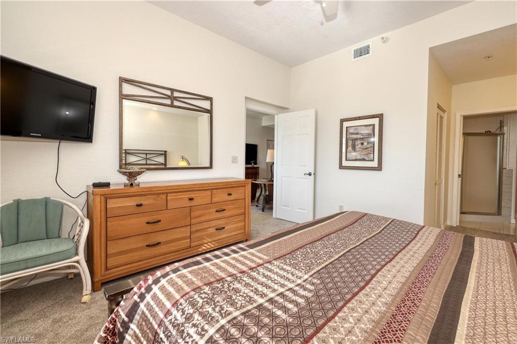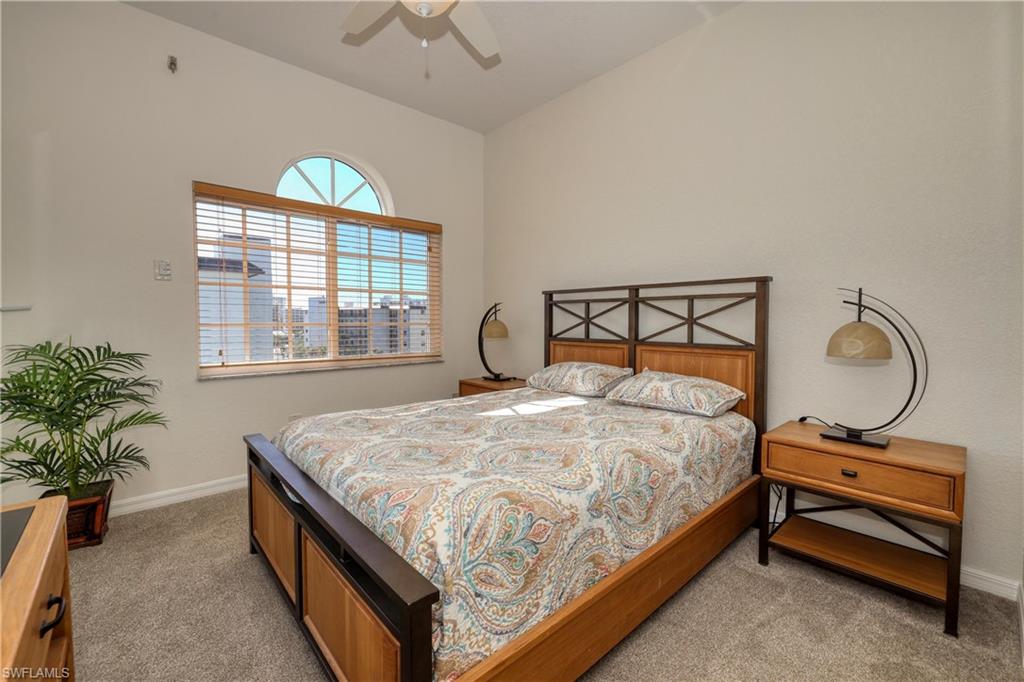 This is a 3 Bedroom 2 Bath on the fifth floor with just a short walk to the beautiful sandy beach on the Gulf. This condo has a new A/C 2023, new hot water heater 2023 and also new carpeting throughout with tile in the kitchen and baths. Every window has Electric Shutters. The A/C and hot water tank are new in 2023. The guest bathroom is updated with new sink, countertop, cabinet and mirror. Master bath has new countertop and 2 sinks. You have 2 guest bedrooms, one with a Queen bed and the other with Twin Couch Beds. The Pool is great and being enjoyed by Owners and guests. The Roof is new. You have Tennis courts, Pickleball and shuffleboard to enjoy with family and friends. Again, the Beautiful Fort Myers Beach is just across the street. Santini Plaza is also a short walk where you can enjoy shopping and a great dining experience.