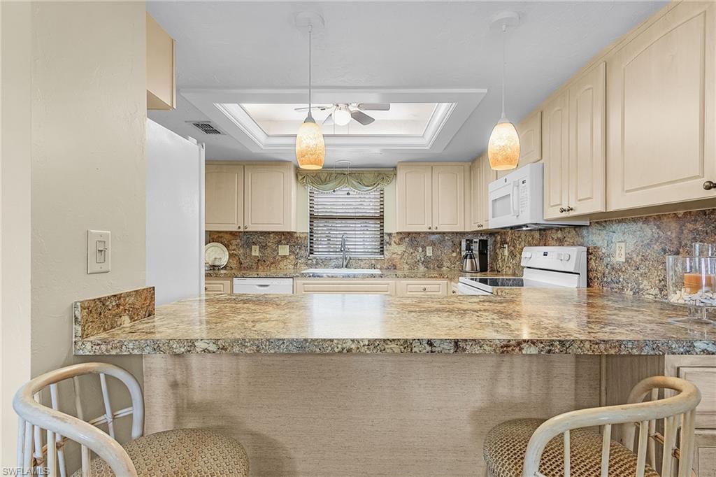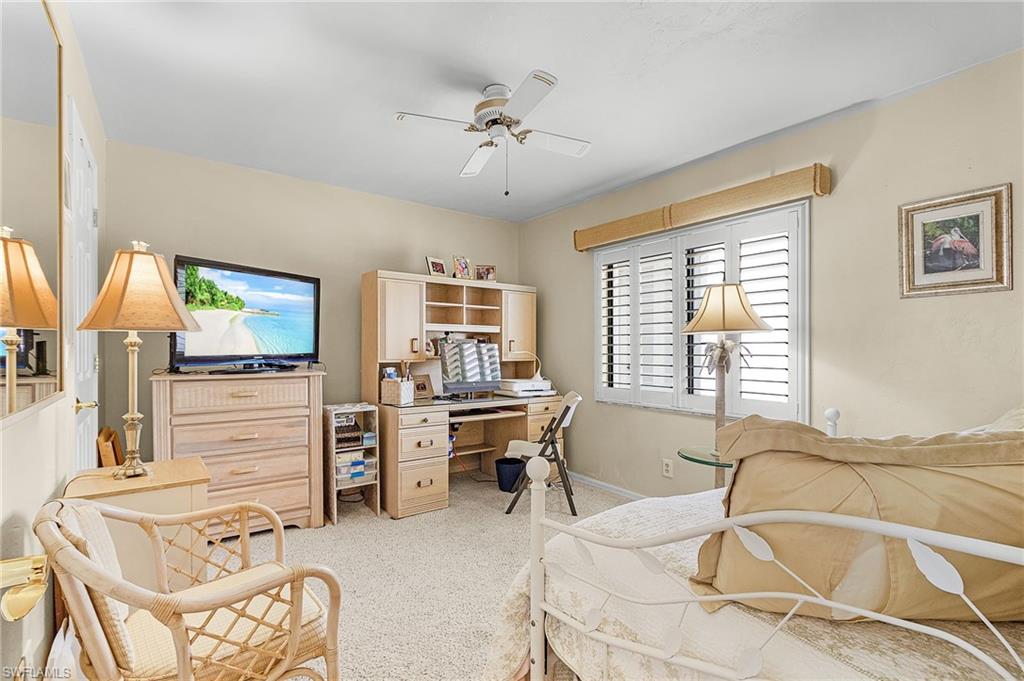 2 bed/2 bath condo in Casa Marina! Wonderful unobstructed views of the canal and EBIA walking path. This light and bright condo features a spacious living room with open dining room. There are 2 separate lanai's with metal shutters. The primary bedroom has a large walk-in closet and en-suite as well as private lanai and laundry room with new washer and dryer. The split 2nd bedroom and bathroom is perfect for privacy for guests. Enjoy morning coffee or an evening beverage watching the dolphins and manatees swim and play right from the comfort of this condo. Gulf facing making evening sunsets a delight. Under building parking and secure foyer for added security. Casa Marina is pet friendly. Community pool and EBIA amenities include: Deeded Beach Access, Beach Parking, Tennis, Pickleball, Bocce Ball, Walking Paths, Chipping Greens, Driving Range and Fishing Pier, Boat slips available for purchase or lease for Bay Beach owners. Located on the South end of Fort Myers Beach close to restaurants, shopping, lovers key state park and a quick drive to Bonita, Naples and RSW Airport.