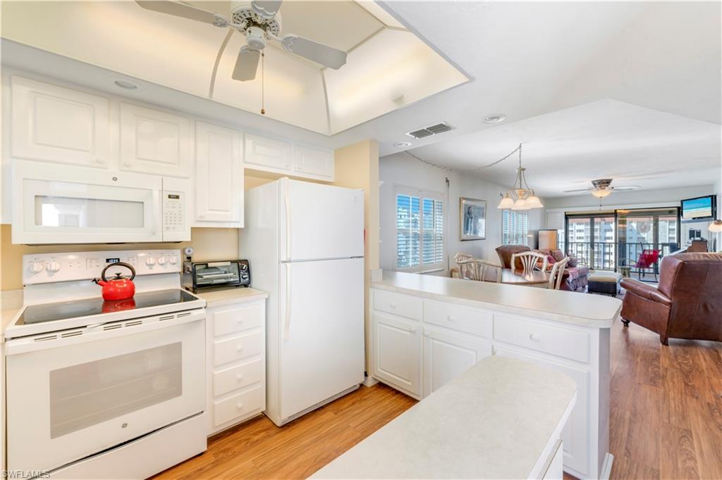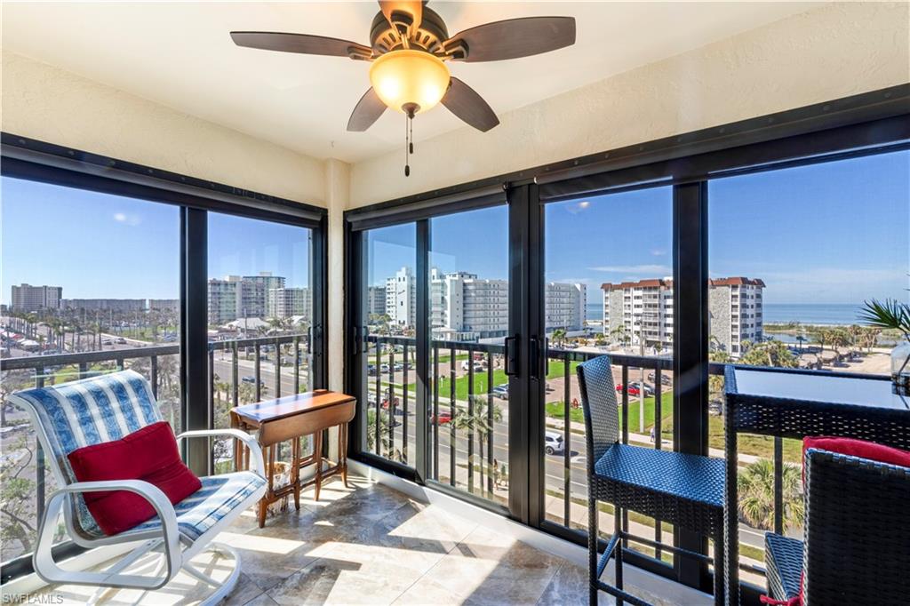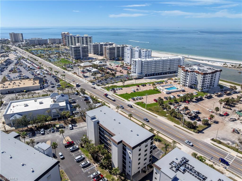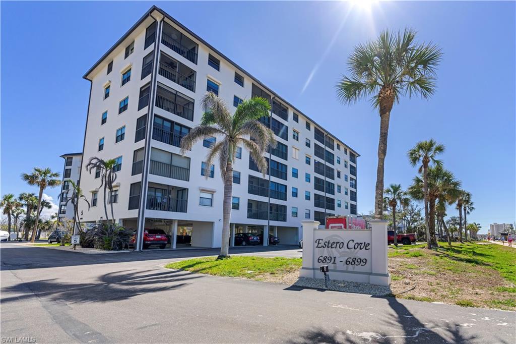 Welcome to your slice of paradise in Estero Cove! Highly desired CORNER UNIT with stunning 5th floor GULF views from your specious screened lanai! Located in building 5 which is right across the street from the beach! Features HURRICANE IMPACT SLIDERS and WINDOWS throughout, as well as HURRICANE SHUTTERS for added storm protection. This condo is well taken care of with so many updates! All windows and sliders have beautiful plantation shutters! Newer electric panel, baseboards, doors, cabinets and counters! Luxury laminate flooring throughout and new tile on the lanai. Remodeled bathrooms both have walk in tiled showers with glass doors, granite counters, Kolar toilets, Moen faucets, and silent exhaust fans. Additional updates include 2024 Water heater, 2022 AC unit and 2024 washer and dryer. Fantastic walkable LOCATION just across the street from the beach and next to Santini Plaza with shops and restaurants!