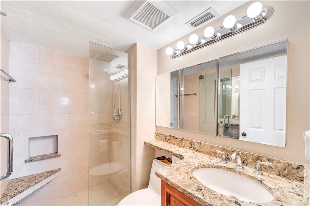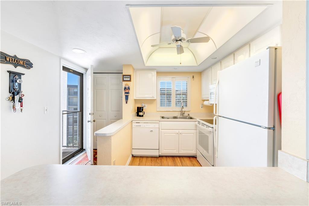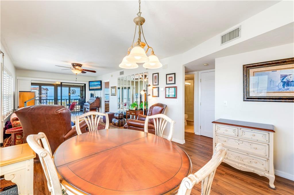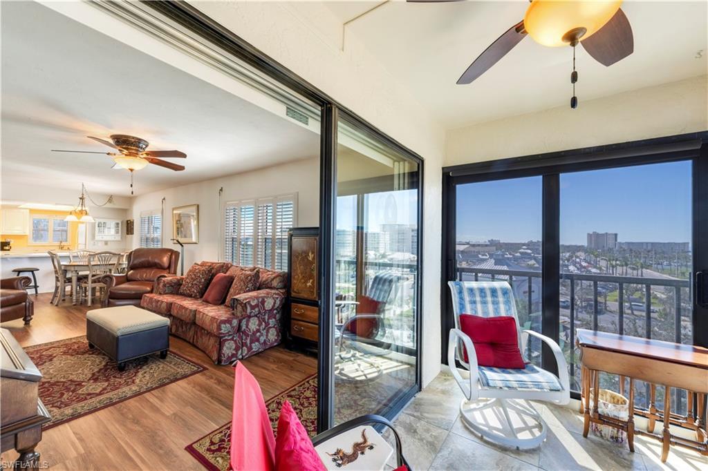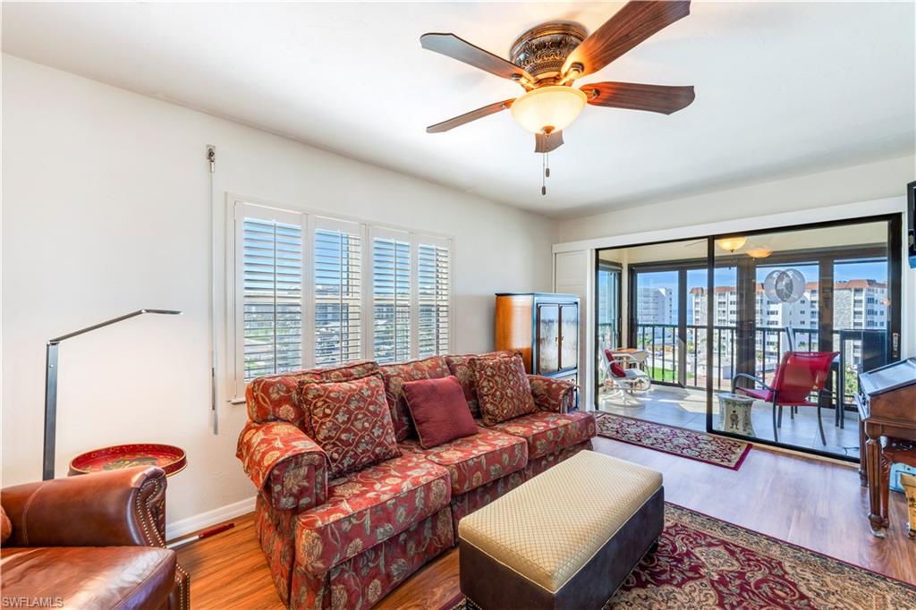 Welcome to your slice of paradise in Estero Cove! Highly desired CORNER UNIT with stunning 5th floor GULF views from your specious screened lanai! Located in building 5 which is right across the street from the beach! Features HURRICANE IMPACT SLIDERS and WINDOWS throughout, as well as HURRICANE SHUTTERS for added storm protection. This condo is well taken care of with so many updates! All windows and sliders have beautiful plantation shutters! Newer electric panel, baseboards, doors, cabinets and counters! Luxury laminate flooring throughout and new tile on the lanai. Remodeled bathrooms both have walk in tiled showers with glass doors, granite counters, Kolar toilets, Moen faucets, and silent exhaust fans. Additional updates include 2024 Water heater, 2022 AC unit and 2024 washer and dryer. Fantastic walkable LOCATION just across the street from the beach and next to Santini Plaza with shops and restaurants!