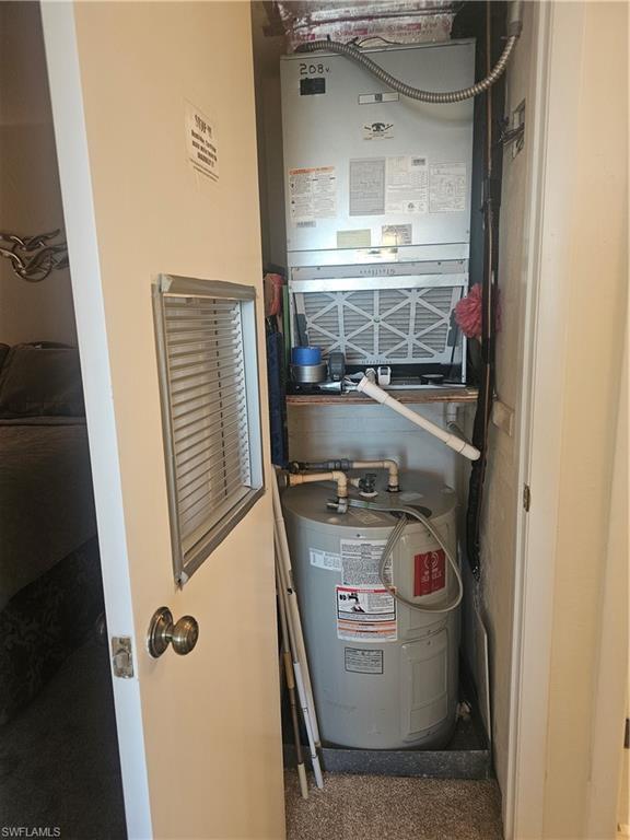 Enjoy expansive views of the pool and preserve stretching toward Estero Bay from this 4th-floor corner end-unit condo, with the beach just across the streetu2014perfect for days in the sand and evening Gulf sunsets. This light-filled 2-bedroom, 2-bath residence at Estero Cove offers relaxed island living with great amenities and an affordable price point.The open-concept layout features new carpet throughout with tile in the kitchen and baths, ceiling fans, and a bright kitchen with double stainless-steel sink, white refrigerator/freezer, dishwasher, range, black over-the-range microwave, and a breakfast bar with seating. The kitchen flows into a spacious dining area and living room, all opening to the screened lanai with peaceful pool and preserve views.Impact Glass Sliding doors open to the lanai from both the living area and the owneru2019s suite, allowing coastal breezes and natural light to fill the home. Storm shutters on the windows and lanai provide added privacy and peace of mind. The primary bedroom includes a walk-in closet and ensuite bath with step-in shower, along with an impact-glass slider to the tiled lanai. A nicely sized guest bedroom features a generous closet, window overlooking the front balcony, with a full guest bath nearby. A laundry closet with stackable washer and dryer is conveniently located in the guest suite hall area. Estero Cove offers a heated pool and sundeck with tables, umbrellas, and loungers, along with a sport court featuring tennis, pickleball, and shuffleboardu2014ideal for enjoying the Florida lifestyle. CVS, 7-Eleven, and Santini Plaza are close by, offering restaurants, shops, a marina, farmers market, and trolley stopu2014all just minutes away.