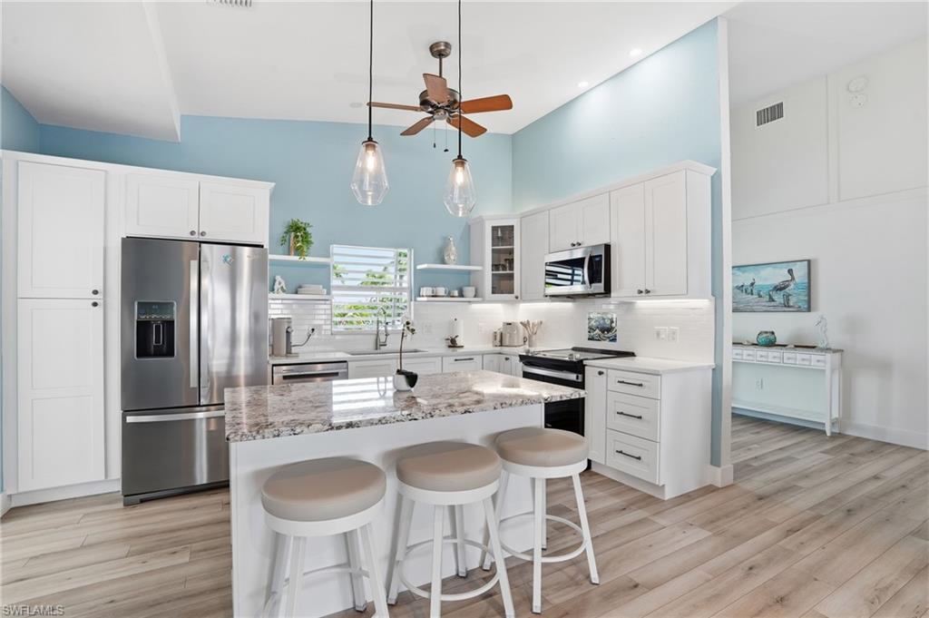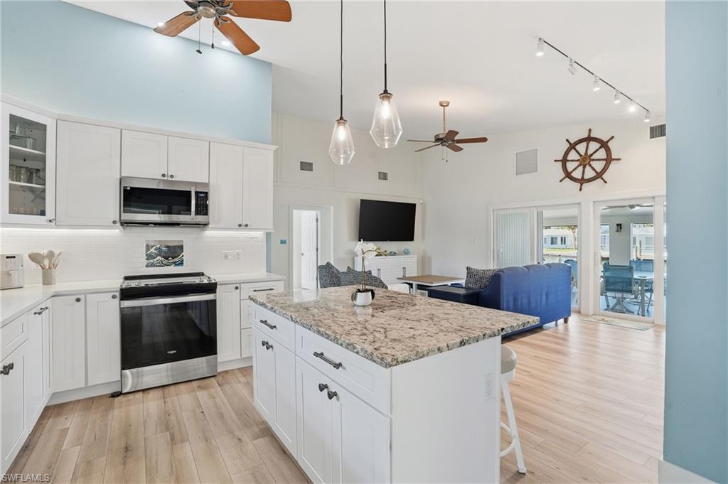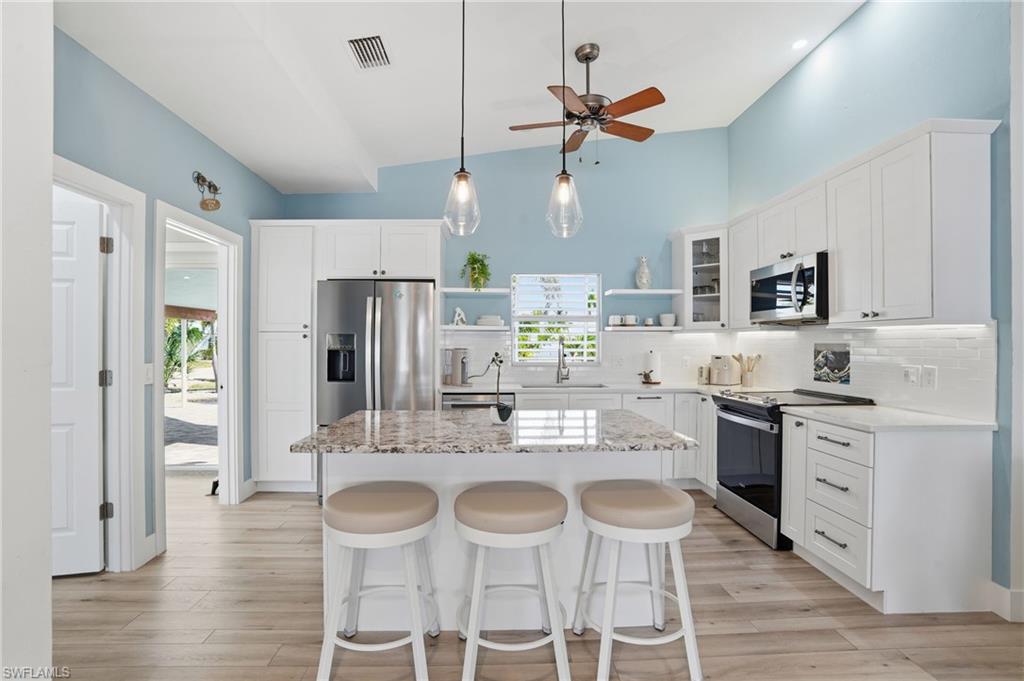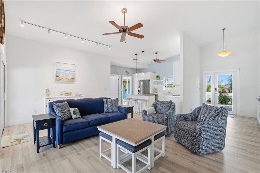 Introducing a rare offering in coveted Fairview Islesu2014an impeccably renovated 3-bedroom, 3-bath canal-front residence that blends mid-century modern architecture with todayu2019s luxury coastal living.Positioned on one of Fort Myers Beachu2019s widest and deepest canal systems, this home delivers premier boating access, timeless design, and a lifestyle defined by ease, style, and Florida sunshine.Step inside to discover a complete renovation, including all-new plumbing and electrical systems, impact-resistant doors and windows, a tightly strapped roof anchored into deep footings, and a durable concrete-brick exterioru2014offering peace of mind and exceptional structural integrity.The brand-new kitchen is a standout, featuring a walk-in pantry, quartz countertops, designer tile backsplash, and all-new stainless steel appliances. Each of the three bathrooms has been fully remodeled with refined, contemporary finishes. A spacious laundry/flex room provides valuable additional storage, complemented by two exterior storage rooms and an underground sprinkler system.Outdoors, the property shines with Florida-chic curb appeal enhanced by professional landscaping, a composite boat dock, and a custom architectural carport designed by local architect Albert Dambrose of Studio A.D. Relax and unwind in the compact pool/spa area overlooking the canal, or enjoy the all-weather, fully electric shade screens on the lanaiu2014perfect for privacy and protection from the sun. Raise the screens to instantly double your living area and open the space to a beautiful uncovered paver patio.Located in a community with no required HOA fees (voluntary contributions only), this home is offered in one of the islandu2019s most desirable boating and fishing neighborhoods.This is not a cookie-cutter home. It is a thoughtfully crafted, beautifully updated coastal retreat designed to surprise and delight at every turn. Donu2019t miss your chance to own a truly special property in Fairview Isles.