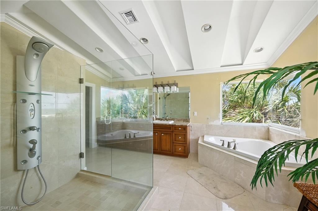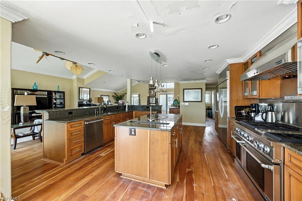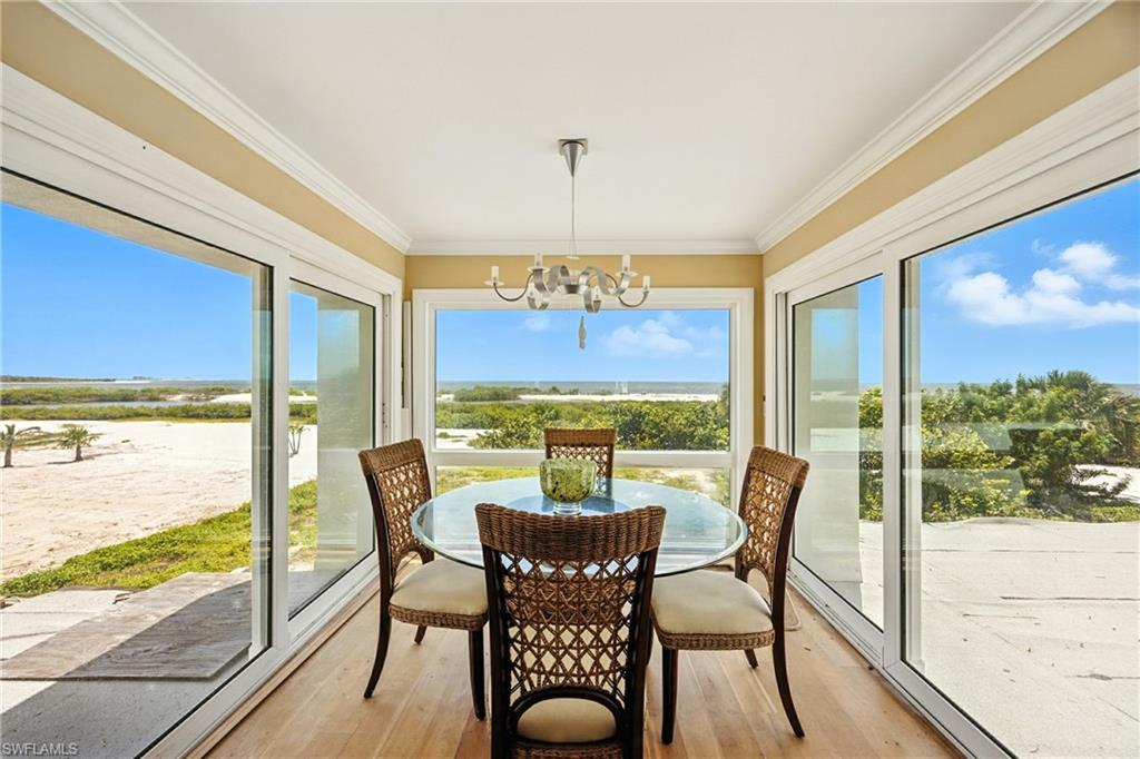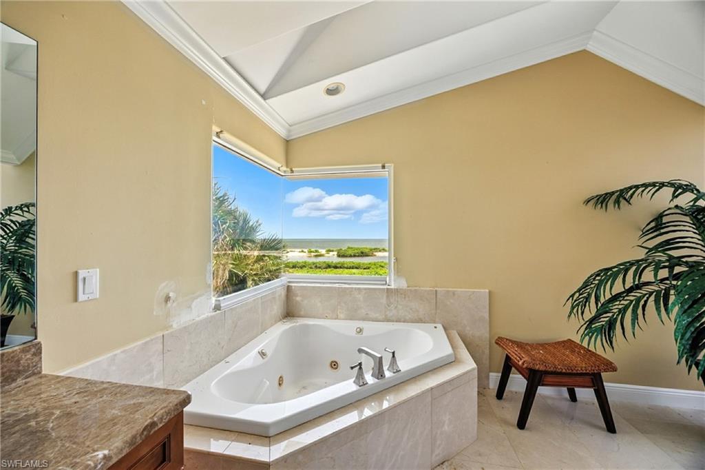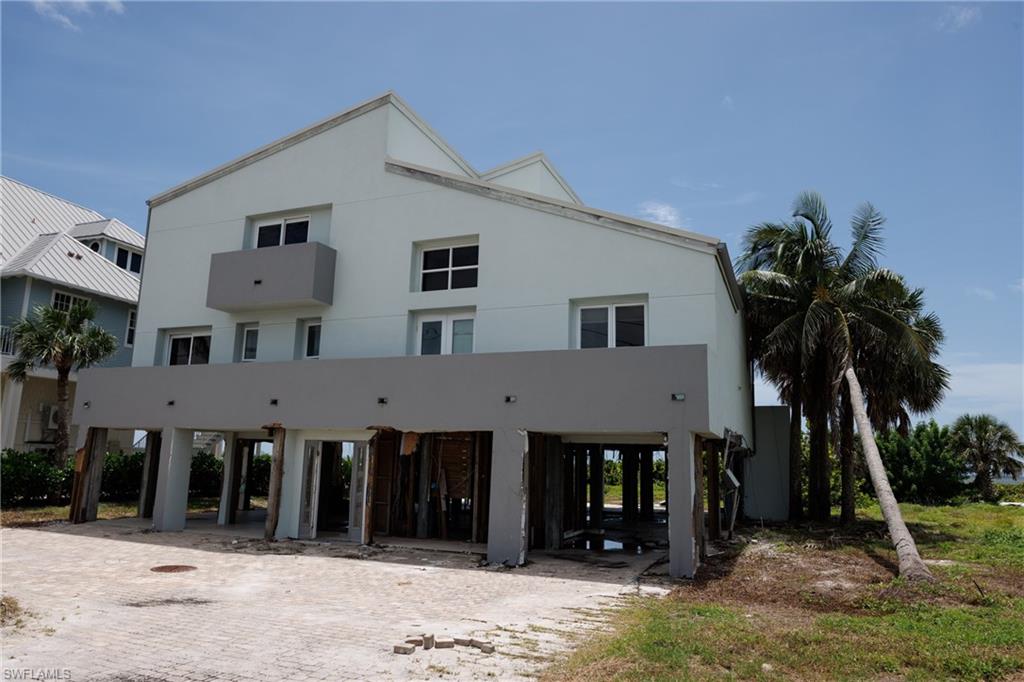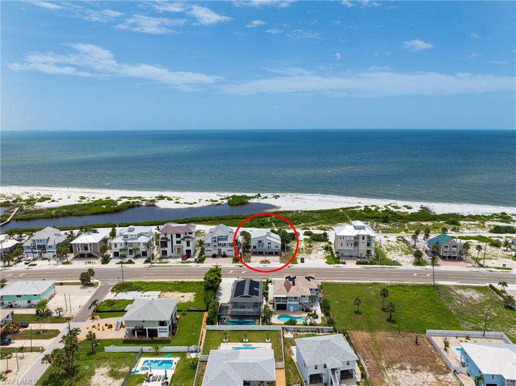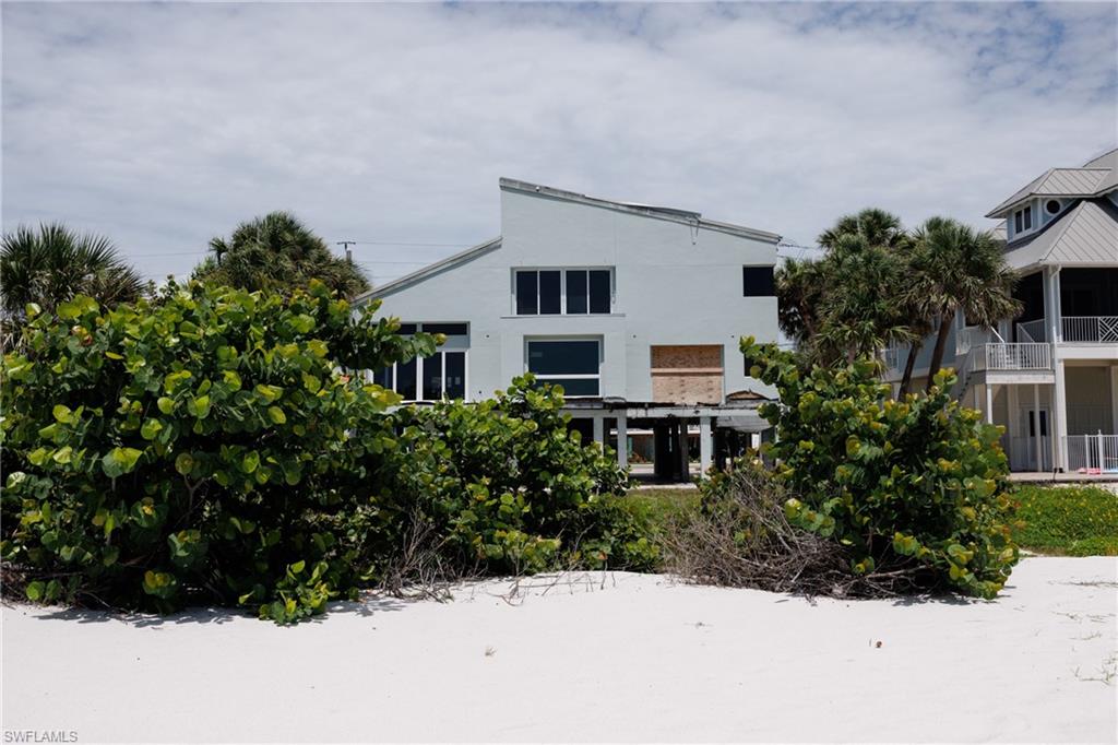 Welcome to your beachfront paradise on the coveted south end of Fort Myers Beach! This exceptional 3040 sqft, turnkey residence offers a unique opportunity to own a piece of island luxury with unobstructed, 180-degree views of the Gulf of Mexico, all for a price unlike anything else on the market. Designed for effortless entertaining and coastal living, the desirable open-concept floor plan creates a warm and inviting atmosphere. The standing seam metal roof installed in 2022 gives additional peace of mind. The chef's dream kitchen is a culinary masterpiece, featuring stainless steel Jean-Air appliances, including a six-burner range with a griddle and double ovens. A pasta arm faucet and a large exhaust hood complete the range area, while a separate island with a sleek prep sink and under-counter mini-fridge provides extra convenience. A huge breakfast bar overlooks the eat-in nook, living with additional wine refrigerator, and dining areas, all framed by breathtaking gulf views. The massive primary suite is a true retreat, boasting a wet bar and offering the kind of stunning Gulf coast sunsets typically reserved for travel magazines. The spa-like primary bath features dual vanities, marble flooring, a walk-in shower with multiple shower heads, and a separate jetted tub with a seamless, glass-to-glass corner window perfectly positioned to overlook the beach. The home offers additional luxurious accommodations, including an ensuite bedroom with a sliding glass door opening to a space to re-build the private beach-view balcony, plus two additional ensuite bedrooms that offer private balconies with views of Estero Boulevard. With two laundry areas, this home provides all the comforts and conveniences you desire. Open the windows and sliding glass doors to feel the inviting Gulf breeze fill the house. An elevator chase is conveniently located near the front of the house. A private path leads you to one of the island's most secluded, white sandy beaches, with pristine, turquoise waters. This versatile property is perfect for a private beachside residence or as a high-income rental investment. Enjoy the convenience of being close to shopping, dining, public marinas, and the vibrant life of Bonita Springs and Downtown Fort Myers Beach. For added peace of mind, a structural engineer approval letter was obtained after Hurricane Ian, and the publicly available FEMA 50% Rule letter indicates a building value of $1.274 million, leaving ample room for any necessary/desired improvements. Sold fully furnished and as-is, this exceptional opportunity is ready for you to start living your beachside dream.