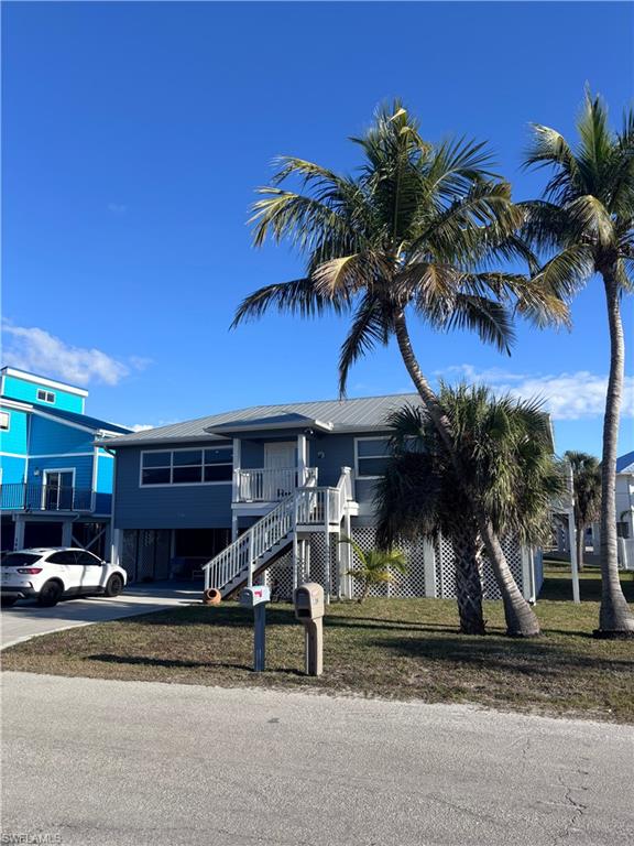 Classic and modern Fort Myers Beach home/cottage. This updated home offers 3 bedrooms 2.5 baths with 2, 000 sqft of living area and another 2, 500 sqft on Ist level which is screened and is a great area to relax and entertain. New construction in 2011 added 1200 sqft while renovating and bringing the original structure up to new code and elevation, Vaulted ceilings, granite countertops and vanity tops, dual HVAC's, custom cabinets, tile floors throughout home. impact windows and doors (home survived lan with zero damage). Large master suite with walk in closet and shower, rear sun deck with stairs, metal/galvanized roof, six person hot tub, security lights, large enclosed storage area and workshop. Home is located in the small community of Gulf Island Manor, and offers a private beach access with a Gazebo and Marina/Park like setting on the back bay with Large Tiki Hut and fishing dock. Private beach and back bay access ! This home has it all.
