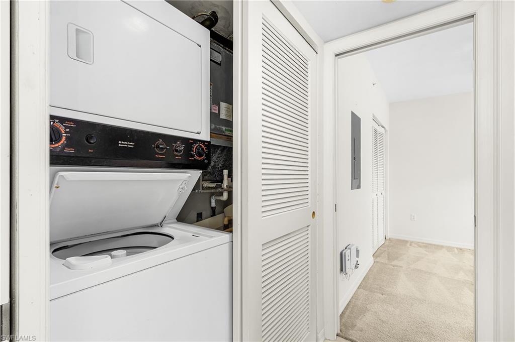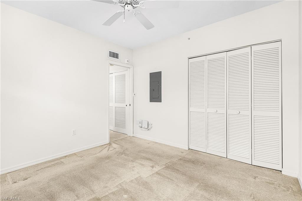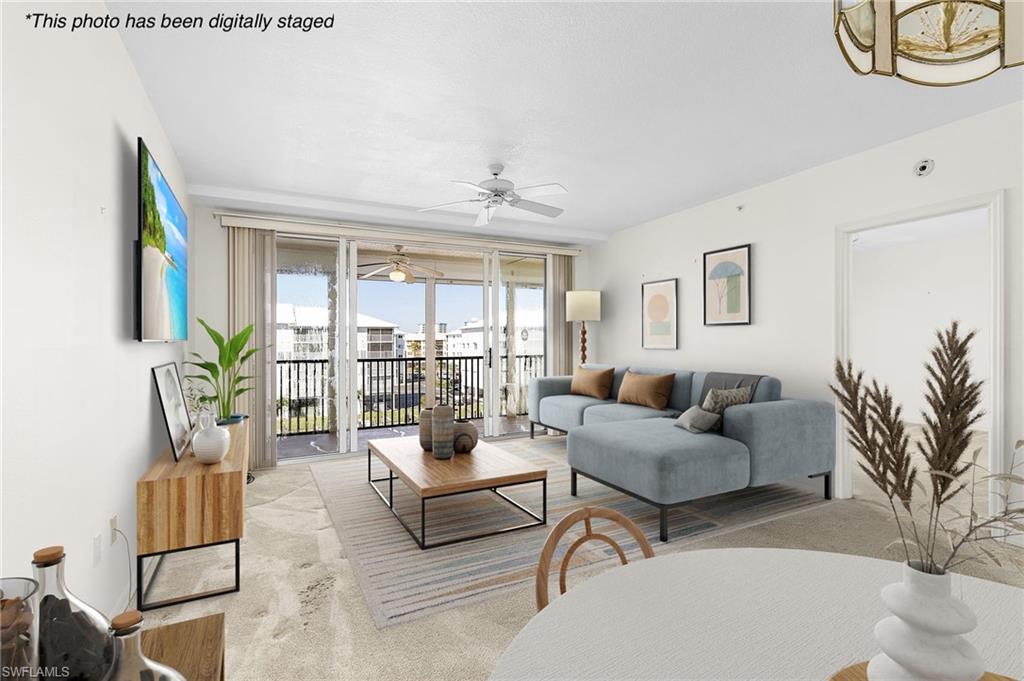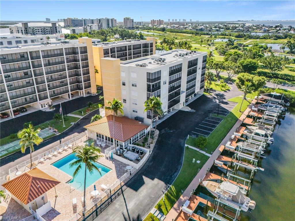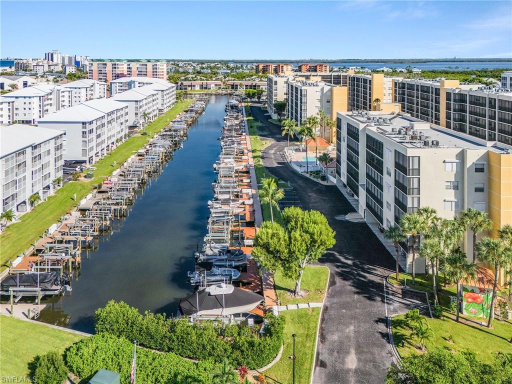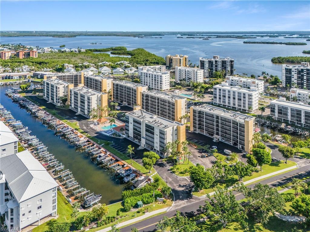 Great investment opportunity at Hibiscus Pointe! This 2bed/2bath condo odffers a split bedroom floor plan perfect for entertaining guests. The primary bedroom features a large walk in closet and ensuite bathroom. Enjoy watching the dolphins and manatees from the oversized lanai! Have peace of mind with electric storm shutters. Condo includes extra storage cage, under building assigned parking and guest parking. Perfectly located on the south end of Fort Myers Beach close to Santini Plaza, restaurants, Lover's Key State Park, easy access to RSW Airport, Bonita Springs, and Naples. Boat docks are available for sale. Community Amenities: Pool, shuffleboard, car wash area and guest parking. EBIA amenities: tennis courts, pickleball, fishing pier, beach parking, walking paths, chipping greens, golf driving cage and DEEDED Beach access.