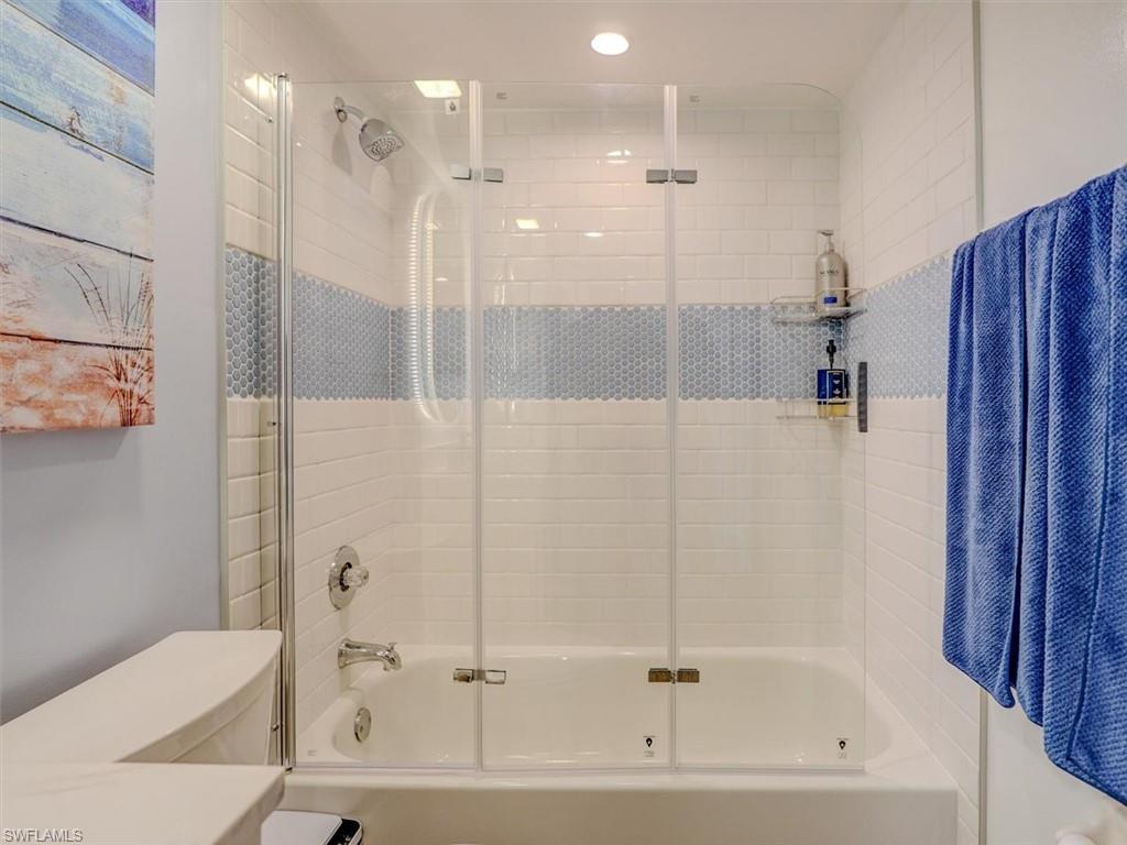 TURNKEY FURNISHED Hibiscus Pointe 2BR/2BA unit with spacious eastern exposure lanai. There's nothing for new owners to do but unpack! u2022 Turnkey furnished. u2022 All new modern furnishings, light fixtures and remote-controlled ceiling fans w/lights. u2022 Luxury vinyl plank tile flooring throughout. u2022 Custom zebra shades. u2022 Fluted wood accent walls throughout. u2022 Kitchen: Frigidaire Gallery and Whirlpool appliances; open shelving; full height tiled backsplash with Morrocan-style tile accents; stainless steel sink w/high arc touchless faucet; Acacia wood butcher block countertops with dining extension; lighted tray ceiling. u2022 Main living area features a custom built-in cabinet with beverage cooler and wall-mounted electric fireplace.u2022 Owner's suite has direct eastern exposure lanai access, LED-lit king bedframe, spacious walk-in closetu2022 Owner's en-suite bath: backlit anti-fog mirror; 72u201d dual sink vanity with marble countertop; full-height tiled shower frameless glass doors and rain head). u2022 Western exposure guest bedroom has a clever queen bed/twin loft combo to accommodate guests. u2022 Guest bath updates: vanity; backlit anti-fog mirror; refurbished tub; folding glass shower door; tile w/decorative accent. u2022 Spacious screened lanai (w/wall-mounted TV) runs the length of the unit. u2022 In-unit laundry combo. u2022 Convenient under-building parking. u2022 Enormous storage locker located on unit floor! u2022 Located in popular, south end Bay Beach community surrounded by canals. u2022 Hibiscus Pointe amenities include pool, community room and spa, deeded beach access, fishing pier u2022 Bay Beach Commons amenities: paths; chipping and putting greens; driving cage; pickleball courts; bocce ball courts; tennis courts; tiki huts u2022 Direct TV & internet are included in the quarterly fees. u2022 Boat docks may be available for lease/purchase in Bay Beach area. This is an amazingly redone unit you simply must see!