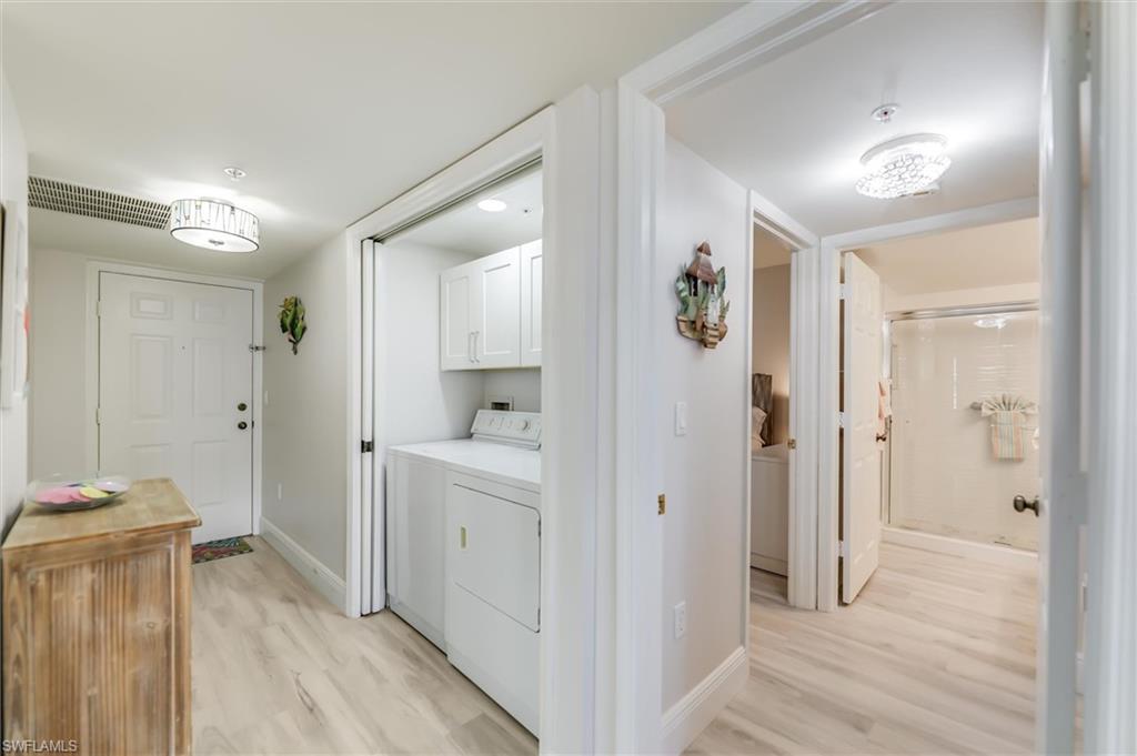 Your Island Paradise Awaits! Discover this beautifully renovated and rare 3-bedroom, 2-bath corner condo, filled with natural light and offering breathtaking water views and unforgettable sunsets. Located on the first floor with easy stair access (no elevator needed) u2014 perfect for those with small dogs or anyone seeking simple living. Water views from every room with endless sunsets to enjoy.Renovated kitchen with white self-close cabinets and Bretagne Vetrazzo countertops.Updated master shower with modern tile; second bathroom also features Bretagne Vetrazzo finishes.Luxury vinyl plank flooring throughout for a sleek, durable look.Spacious master suite with large walk-in closet; generous closets in the second and third bedrooms.Full-size washer and dryer for your convenience. This condo is turnkey furnished u2014 move right in or take advantage of the incredible potential as a vacation rentalUnder-building parking and same-level storage.Community Amenities: Pool, shuffleboard, and wash area. Extra parking available.EBIA amenities include tennis courts, pickleball, fishing pier, beach parking, marina, and bike/jog paths.Prime location with easy access to RSW Airport, Bonita Springs, and Naples.Enjoy private beach access and parking, with everything you need just minutes away. Conveniently close to Santini Plaza, downtown Fort Myers Beach, Margaritaville, and the trolley, plus easy access to CVS, Publix, restaurants, coffee shops, and ice cream parlors. Shopping, rental water sports, boating, kayaking, and jet skiing are all right on the island u2014 making every day feel like vacation.