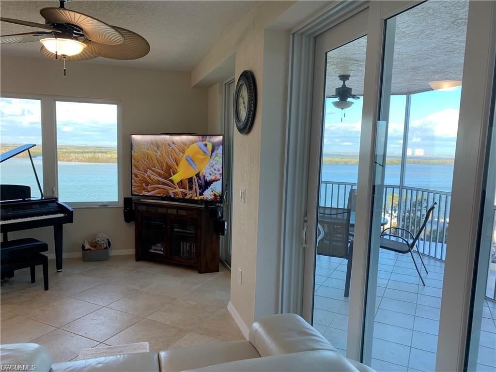 MAY TAKE A SINGLE FAMILY HOME IN TRADE. Enjoy spectacular water views from every room in this open floor plan condominium. It is located across from Lover's Key State Park with it's own private beach. Island Beach Club Unit 704 is Partially furnished with new windows and doors, just painted inside and out, newer appliances and a/c unit and water heater are newer. Tile flooring throughout. The unit has oversized lanai's off the main living area with another lanai off the master bedroom suite. The unit has a climate-controlled storage space and a assigned parking spot in the garage. Island beach club is a gated community that offers amenities that consist of boat docks, free standing club house, parking garage, tennis court, pickleball, pool and hot tub.
