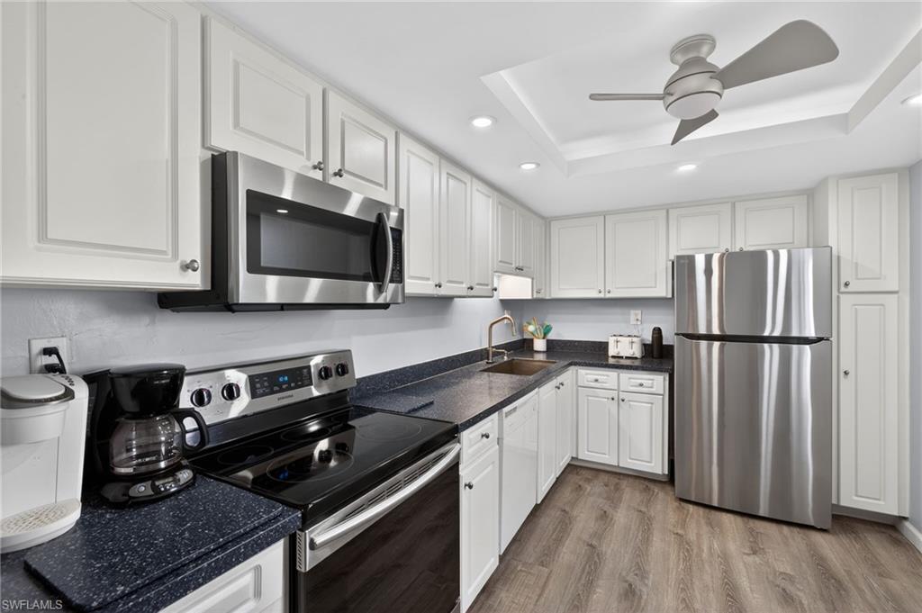 Welcome to resort style living and this beautifully maintained beachfront condo located on the gulf side of Fort Myers Beach in a quiet, upscale, low-density community on the desirable south end of the island. This turnkey residence offers 1,261 spacious sq ft under air, 2 bedrooms and 2 full baths, and features gorgeous Gulf views from the unit. The unit features high end remodeled bathrooms with luxury fixtures and an updated kitchen with stainless steel appliances and quartz countertops. Enjoy lush, well-maintained landscaping, a beautiful beachfront resort pool, shuffleboard and a newly renovated community room with catering kitchen. All this, just steps from the white sand beach and Gulf waters of Fort Myers Beach. This location and building are perfect for those seeking peaceful coastal living with an exclusive breathtaking waterfront view. The building has passed all inspections and all assessments have been paid.