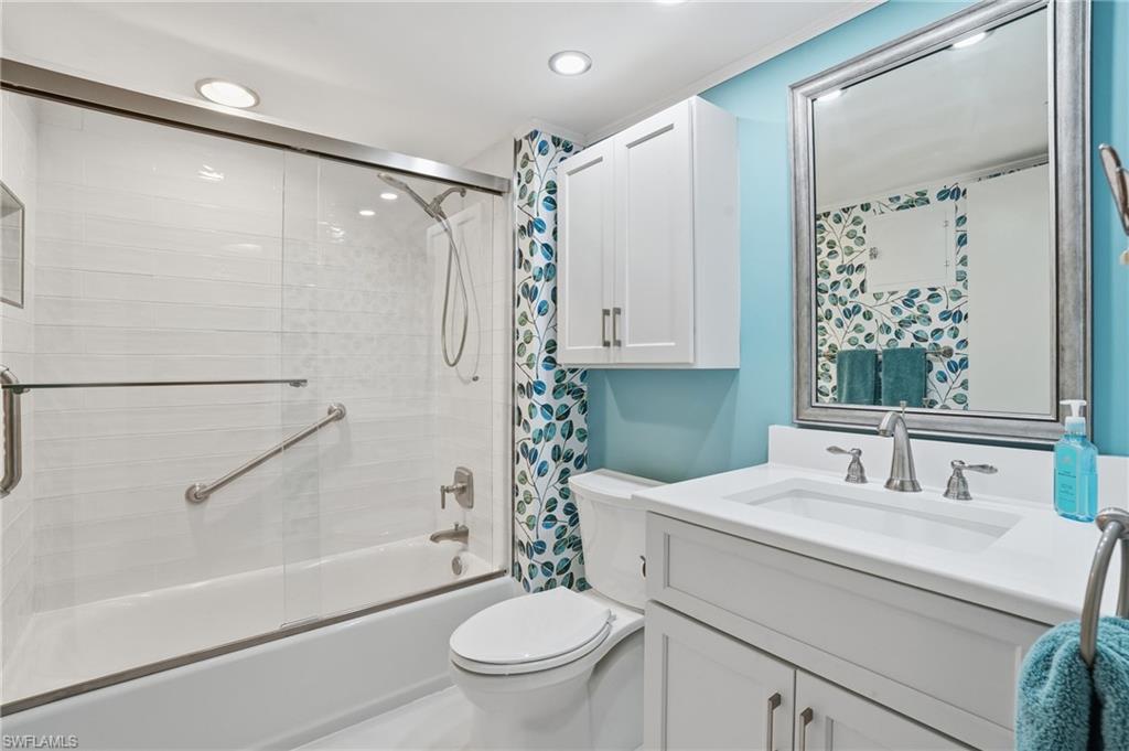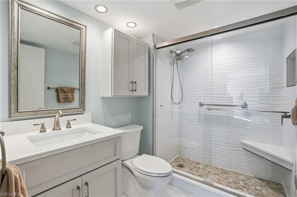 Beachfront Bliss at Island Reef! Welcome to your Gulf-front retreat at Island Reef, where breathtaking, never-ending views await from this rarely available beachfront corner unit with a wrap-around screened lanai. From sunrise to sunset, enjoy panoramic Gulf vistas that define coastal living at its finest.Step into a beautifully updated galley-style kitchen featuring custom Omega wood cabinetry with soft-close doors and pull-out drawers, a custom tile backsplash, stainless steel appliances, and quartz countertopsu2014truly a chefu2019s delight. The living room showcases brand new luxury vinyl plank flooring, offering both style and durability while complementing the coastal aesthetic.Both bathrooms have been thoughtfully redesigned with timeless coastal influences. The primary bath features oversized tile walls, a shaker-style vanity, a custom mirror, and elegant tile flooring. The guest bath offers classic white subway tile in the shower, a shaker vanity, and tile floors.The primary bedroom includes a built-in desku2014perfect for working remotelyu2014along with direct access to the lanai. The spacious guest bedroom also features sliding glass doors leading to the screened lanai, allowing guests to wake up to serene Gulf views. The lanai has been recently upgraded with plank tile, creating an inviting space to relax and unwind while enjoying ocean breezes.Additional highlights include roll-down storm shutters, impact windows, a new HVAC system (2025), an in-unit stackable washer and dryer, a water softener (hot side only), and two-car tandem under-building parking.Island Reef has undergone extensive updates, ensuring a modern, well-maintained community. Recent improvements include a new roof, new elevator, newly renovated pool, and updated community room and pool bathsu2014enhancing both comfort and convenience for residents.Perfectly situated on Fort Myers Beach, Island Reef offers direct beach access and resort-style amenities including a pool, shuffleboard court, and clubhouse. Walk to CVS and Santini Plaza, where several new restaurants, ACE Hardware, Surf Style Beachwear, and more are coming online soon. Lovers Key State Park is just minutes away for kayaking and wildlife spotting, while Times Square and the Fort Myers Beach Pier offer dining and entertainment. Nearby marinas make boating and fishing easy, and thereu2019s even a ferry to Key West just a few miles away.With breathtaking sunsets, a relaxed island atmosphere, and a friendly, quiet community, Island Reef is also one of the few dog-friendly beachfront complexes. Whether youu2019re seeking a primary residence or a second home, this stunning beachfront condo is a rare opportunity you wonu2019t want to miss.