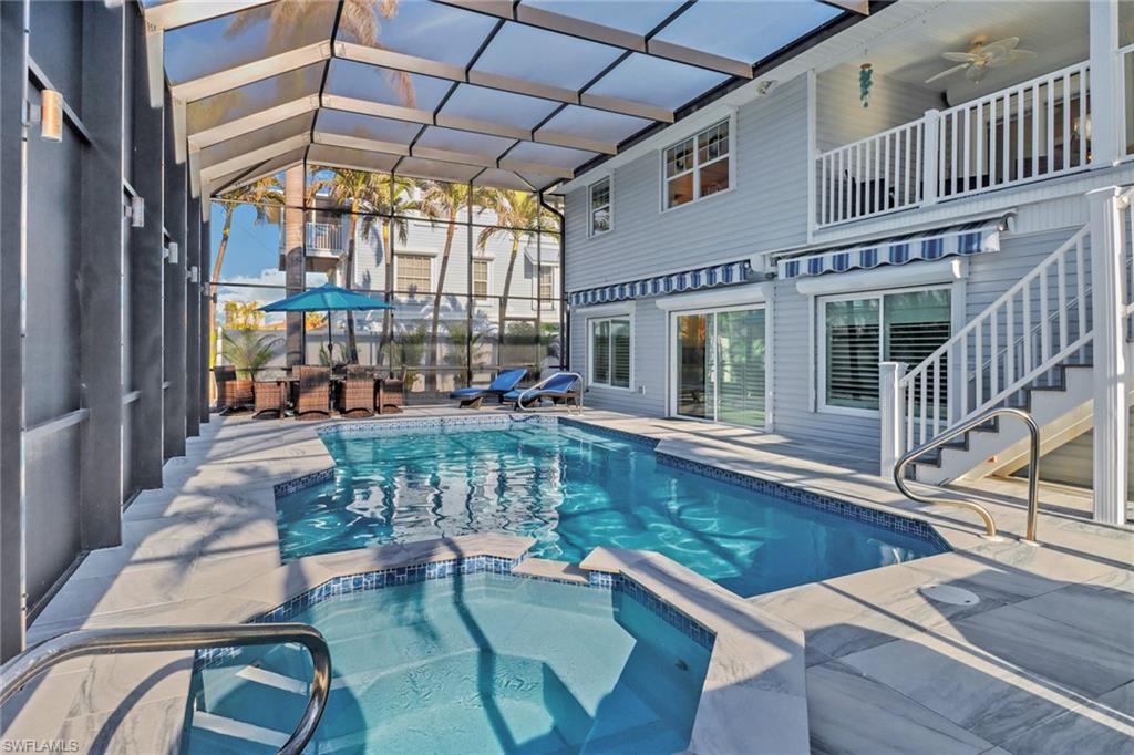 Pool/Spa Combo, Below Ground, Concrete, Custom Upgrades, Equipment Stays, Gas Heat, Solar Heat, Salt Water, Screen Enclosure, See Remarks