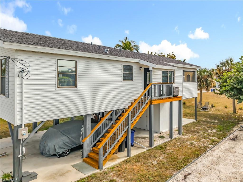 Welcome to Laguna Shores, a quiet Fort Myers Beach south end neighborhood! This elevated stilt home is a spacious single-family home with 3 large bedrooms and 3 full bathrooms. The oversized main bedroom opens up to a large sundeck, perfect for enjoying your morning coffee or watching the sunset. The split floorplan provides privacy and convenience for you & your visitors. There are 2 Zoned AC's installed in '23 & '25. The new roof was installed in 2023 as well as new stairs. There is room for a pool, additionally, the large open area under the home provides parking for 2-3 cars or toys and a large storage space for all of your beach gear or tools. Just a short walk to the beach, restaurants, and nightlife, this home offers the perfect combination of a beach home and convenience. Don't miss out on this incredible opportunity to own your own piece of paradise in Fort Myers Beach. Live the beach lifestyle you've always dreamed of in this beautiful and spacious home.