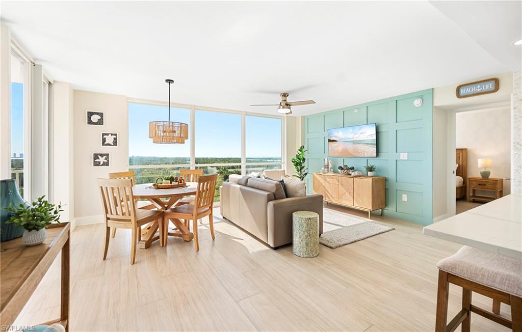 Indulge in elevated coastal living from this exclusive waterfront condo-hotel residence showcasing sweeping views of the Gulf and Estero Bay. Perfectly positioned near Lovers Key Beach, Fort Myers Beach, Bonita Beach, and Naples, this premier location offers effortless access to pristine shorelines, upscale shopping, and renowned dining destinations.This 780 sq ft, 1-bedroom, 1-bath luxury suite has been thoughtfully reimagined with sophisticated coastal design elements, including a striking custom woodwork accent wall, curated designer furnishings, and a serene palette of blues and sand tones inspired by the surrounding waterfront. All-tile flooring, king-size luxury bedding, and a brand-new designer furniture package (included) create a turnkey, resort-style retreat.The spa-inspired bathroom adds another layer of refinement, featuring dual vanities and a custom walk-in luxury shower adorned with a stunning ombru00e9 tile design, creating a calming, boutique-hotel ambiance.A dramatic wall of windows and sliding glass doors frames uninterrupted waterfront views, filling the residence with natural light and seamlessly blending indoor comfort with outdoor beauty. Located on prestigious Black Island, residents and guests enjoy an exceptional resort lifestyle with access to a waterfront pool, state-of-the-art fitness center, business center, and full-service check-in lobby, along with the convenience of an onsite rental management program.Completing the experience is a destination waterfront restaurant and full bar located next door, offering breakfast, lunch, and dinner just steps from your door. Notably, this residence has not been placed into the rental program since its renovation, preserving its pristine condition while presenting outstanding income-producing potential.This is more than a residence u2014 it is a luxury coastal investment opportunity where lifestyle, location, and return potential converge.
