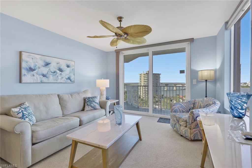 Enjoy sweeping views of Big Carlos Pass from this beautifully furnished 9th-floor condo, where daily rentals are allowed for maximum flexibility and income potential. Expansive sliding glass doors fill the open-concept living space with natural light and lead to a private balcony perfectly positioned for watching boats pass by, spotting dolphins, and taking in breathtaking sunset skies. Offered furnished, this residence features tasteful furnishings, a bright and airy layout, and elevated privacy that enhances the serene coastal atmosphere. The seamless flow between the kitchen, dining, and living areas creates an inviting space ideal for relaxing or entertaining, while the high-floor vantage point captures panoramic water views that truly set this unit apart. Ideal as a personal vacation retreat or revenue-producing investment, this condo offers move-in-ready convenience in a sought-after location close to white-sand beaches, boating, kayaking, waterfront dining, and scenic nature trails, delivering the very best of Southwest Florida coastal living.