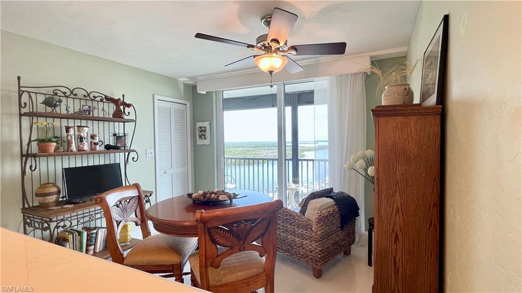 Welcome to your private Ft. Myers Beach oasis at Ocean Harbor u2014 one of the islandu2019s most desirable gated communities nestled on 9 acres.This 14th floor corner unit has stunning views from all sides with 2 private balconies. Experience the best of water front living in this beautifully renovated 2-bedroom, 2-bath condo. Take in serene morning sunrises over the tranquil Back Bay, where dolphins and manatees glide through the water. Inside discover a bright living space with a seamless indoor-outdoor flow, with every detail thoughtfully modernized u2014 from the hurricane-impact windows and doors to the stylish finishes throughout. Ocean Harbor offers resort-style amenities that make every day feel like a vacation u2014 including a heated tropical swimming pool, two relaxing hot tubs, pickleball and tennis courts, bocce ball, a fitness room, private boat docks, and a kayak launch. Enjoy social gatherings in the clubhouse, take a short stroll to direct beach access on the islandu2019s pristine white-sand beaches or fish off the dock.Discover the perfect blend of comfort, convenience, and island charm u2014 welcome home to Ocean Harbor.
