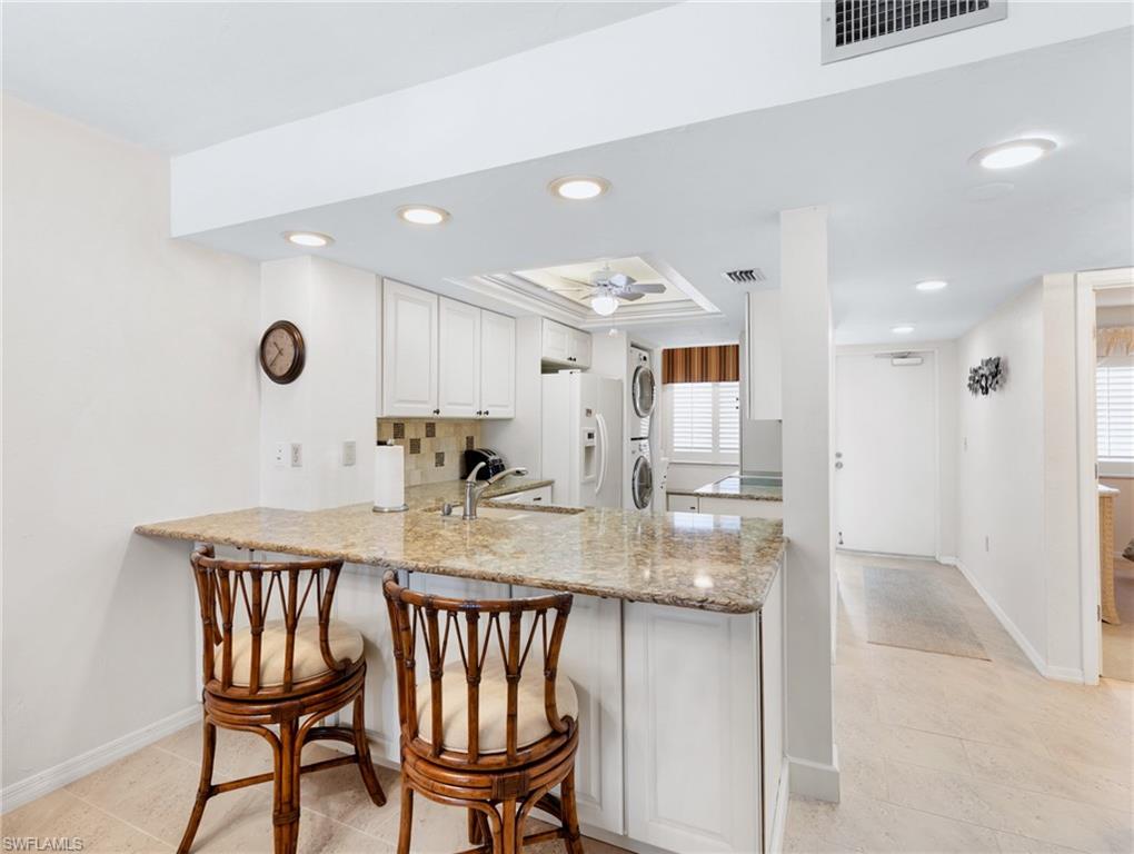 Thereu2019s something special about a place where the beach becomes part of your everyday routine. This beachfront 2-bedroom, 2-bath condo on Fort Myers Beach offers 1,042 square feet of comfortable living space and is being sold turnkey furnished, making it easy to start enjoying coastal life right away. The layout is open and inviting, with a bright living area that connects naturally to the kitchen and dining space, creating an easy flow for relaxing or hosting. Granite countertops, soft-close cabinetry, updated baths, and tile flooring throughout the main living areas give the home a clean, timeless feel. Large impact glass sliders open to a spacious lanai where Gulf views, sea breezes, and sunset skies become part of your daily rhythm. With direct beach access just outside, spontaneous walks, shelling, and sunset strolls are always within reach. Recent improvements include a new A/C system in 2024, along with impact-resistant windows, plantation shutters, and hurricane shutters, offering both comfort and peace of mind. A standout feature of this unit is the included covered parking space. Only 12 of the 81 residences in the building have covered parking, and this space conveys with the condo. The community offers a beachfront pool, grilling area, and a desirable bi-weekly rental policy, providing an excellent balance of personal enjoyment and rental flexibility. Ideally positioned near Santini Plaza, as well as popular dining, shopping, and entertainment, this property is perfectly suited for a primary residence, second home, or income-producing investment.