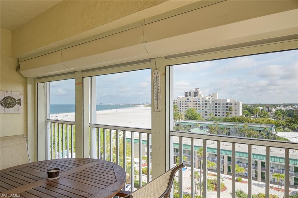 ***NO ASSESSMENTS HERE WITH NEWER POOL, COVERED PARKING, BARBEQUE AREA, AND LOVELY ATRIUM AREA***Experience the ultimate Florida lifestyle in this PENTHOUSE PARADISE on the highly desirable south end of Fort Myers Beach! Whether you're looking for the perfect second home or an unbeatable investment opportunity, this stunning condo has it allu2014NO HURRICANE DAMAGE HERE, just uninterrupted coastal beauty and peace of mind. Imagine waking up to a PANORAMIC VIEW of both the tranquil Bay and the sparkling Gulf, sipping your morning coffee on your screened lanai, where breathtaking sunrises and sunsets are your daily backdrop. This corner unit boasts an open, bright, and airy layout with expansive impact-resistant windows and doors that let the Florida sunshine pour in. The beautifully appointed open-concept kitchen features Corian countertops, a breakfast bar, a built-in desk, and a convection ovenu2014perfect for whipping up a quick meal or entertaining friends. The condou2019s thoughtful design includes two spacious bedrooms, two baths, an inside laundry closet, and turnkey furnishings, so you can start enjoying your slice of paradise the moment you arrive. Just bring your toothbrush and swimsuit! Step outside, and youu2019ll find yourself a very short walk to the widest beach access in Fort Myers Beach. Whether you're lounging on the sand, taking a leisurely stroll along the shore, or exploring the shops, restaurants, and marina at nearby Santini Plaza, this unbeatable location puts everything at your fingertips. For peace of mind and convenience, this unit includes electric shutters on the lanai, covered parking close to the building, and a strong association that ensures the property is well-maintained. With rental restrictions of just 14 days, this condo is not only a dream retreat but also a smart investment opportunity. Donu2019t let this chance slip awayu2014this is more than a property; itu2019s a lifestyle, a sanctuary, and a savvy investment rolled into one. Schedule your showing today and see why this Sand Caper Penthouse is truly the gem of Fort Myers Beach! Your coastal escape awaits.