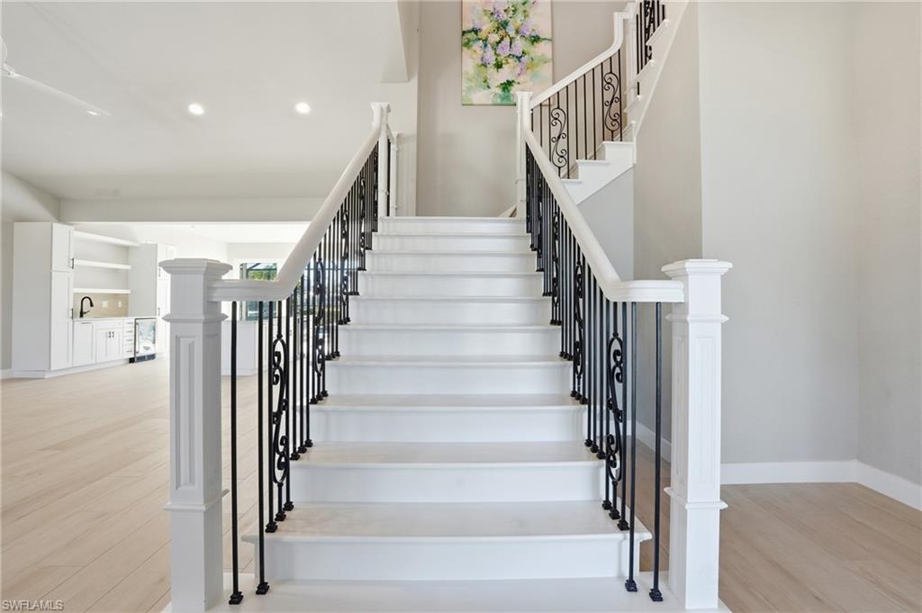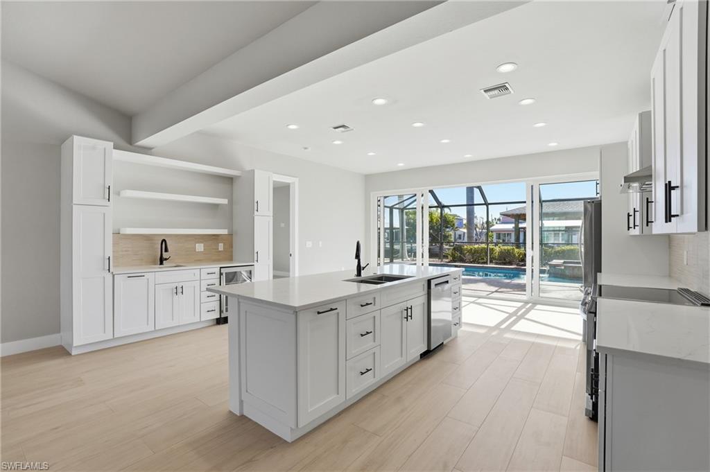 Extraordinary Gulf-Access Island Estate with Private Guest Quarters, Deeded Beach Access & Walkable Resort Lifestyle. Welcome to 132 Egret Street, a rare and expansive waterfront island estate designed as a true luxury family compound. Offering approximately 3,575 square feet under air, this exceptional residence features six bedrooms and five baths, including a beautifully renovated private guest quarters with a Private entrance, ideal for multigenerational living, extended family, or hosting guests in complete privacy. Thoughtfully designed for both elegant everyday living and grand entertaining, the main residence showcases a light-filled open-concept floor plan with vaulted ceilings, a statement island kitchen, and a spacious great room that flows effortlessly to the outdoor living areas. Walls of sliding glass doors create a seamless connection to the south-facing pool and spa, waterfront terrace, and docku2014enter through the front door and experience immediate connection to water, light, and outdoor living. The first-floor offers a primary suite which serves as a private retreat with an en-suite bath and direct pool access. In addition, on the first floor there is a 2 bedroom / 1 bath guest retreat. Upstairs, an elevated living area with sitting space and laundry is flanked by newer en-suite guest bedrooms, offering privacy and comfort for family and guests alike. The LEGAL attached guest quarters is fully equipped with its own kitchen, bath, and laundry, creating a refined yet flexible space perfect for independent family members, long-term guests, or private accommodations. This estate is a boateru2019s dream, offering quick Gulf access in just minutes. Amenities include a covered dock and boathouse, wraparound deck, electric boat lift with remote, water service at the dock, and a separate davit lift for a jet skiu2014designed for effortless days on the water and relaxed evenings cleaning the dayu2019s catch dockside.The beach access lies just steps away, allowing for leisurely strolls along sugar-sand beaches and unforgettable sunset views. The property also enjoys a premier walkable location near the islandu2019s most significant redevelopment projects, including the Beach Theater redevelopment, the London Bay redevelopment of the former Outrigger property, and the future dining and entertainment venues planned at the former Wyndham site. Santini Plaza only a 5u201310 minute walk, now offers a curated mix of restaurants, boutiques, ice cream shops, and everyday conveniences.This exceptional offering blends scale, privacy, flexible living spaces, boating and beach access, and long-term island reinvestmentu2014creating a rare opportunity to establish a multigenerational Fort Myers Beach family compound built for both lifestyle and legacy.