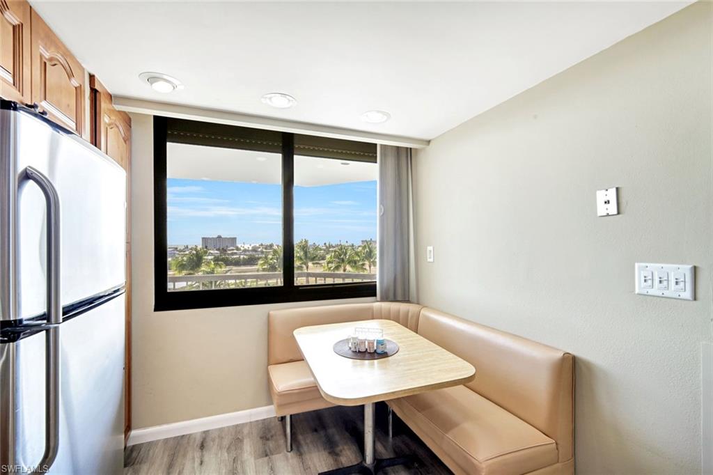 This fully furnished, two-bedroom fifth-floor residence is beautifully framed by sweeping,unobstructed views of Estero Bay and located within the highly sought-after waterfrontcommunity of The Palms. The thoughtfully updated kitchen features stainless steel appliances,while laminated flooring flows throughout the living spaces. The bathrooms have been tastefullyupgraded, including the addition of a walk-in tub for enhanced comfort and convenience.The screened lanaiu2014also accessible from the primary suiteu2014offers the perfect setting to savorcoastal breezes, glowing sunrises, and the ever-changing natural beauty of Southwest Florida.Daily sightings of colorful birds, manatees, and dolphins create a truly captivating waterfrontexperience. The residence includes one covered parking space, along with ample guest parking.The Palms has recently completed a comprehensive exterior renovation, showcasing a new roof,fresh exterior paint, updated lanai railings, and a newly repaved parking areau2014adding both peaceof mind and enhanced curb appeal.A short stroll brings you to the communityu2019s private beach, offering effortless access to theGulfu2019s pristine sugar-sand shoreline. Boat slips, available for purchase or lease, are convenientlylocated within walking distance.Resort-style living awaits at The Palms, featuring a beautifully appointed clubhouse with a fullkitchen, outdoor grilling area, and dedicated fish-cleaning stationu2014ideal for entertaining.Residents also enjoy an extensive network of scenic walking paths, an Olympic-size heated pool,tennis and pickleball courts, a driving cage, chipping and putting greens, and a professionallyequipped fitness center.Perfectly situated on the coveted South Island, this exceptional community offers an ideal blendof luxury, comfort, and convenience. Enjoy a complimentary island trolley ride to the NorthEndu2019s lively dining and nightlife or take a short drive to Naples or Bonita Springs for world-classshopping and cuisine.