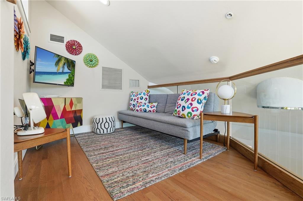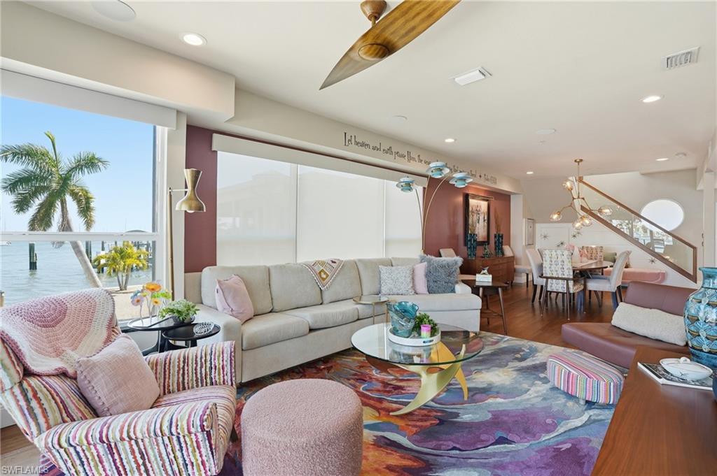 Panoramic BAYFRONT living ideally positioned in the heart of the Pier District / Times Square. AMAZING Rental Location! REMODELED in 2023-24, this stunning BAYFRONT POOL home showcases modern coastal living with iconic Mid-Century Modern architectural influences, honoring the design roots of Fort Myers Beach. Enjoy the ultimate walkable island lifestyle with no need to search for parkingu2014yet with the rare convenience of being able to quickly get on and off Estero Island when needed. Designed for entertaining and effortless everyday living, the open floor plan features an efficient kitchen with abundant storage and BIG CHILL appliances as its focal point. Expansive windows flood the home with natural light while framing sweeping BAY viewsu2014enjoy watching boats gliding by, dolphins playing and shimmering evening light displays across the BAY. From the upper deck, enjoy panoramic views including the 4th of July fireworks show, while the covered deck allows you to savor waterfront living even on rainy evenings. The du00e9cor is fun, colorful, and mood-elevating, perfectly complementing the coastal setting. The primary suite offers breathtaking BAY views, creating a private owneru2019s sanctuary, while the spacious loft provides the perfect u201cgrandkidsu2019 escapeu201d or flexible bonus space. The 2 Guest rooms compliment the Decor throughout the home. Additional highlights include covered parking for two vehicles, along with ample space to accommodate up to four guest vehicles. Plus a true dedicated laundry room featuring a commercial-grade washer and dryer. Outdoor living is exceptional with a new heated pool & spa, multiple balconies, and expansive waterfront vistas. The pool is heated by propane gas, using a 250-gallon tank. The This HIGH PERFOMANCE RENTAL LOCATION, offers exceptional investment potential alongside unforgettable personal enjoyment. This timeless Coastal Classic delivers unmatched walkability, vibrant island energy, strong rental appeal, and the very best of elevated bayfront living on Fort Myers Beach.