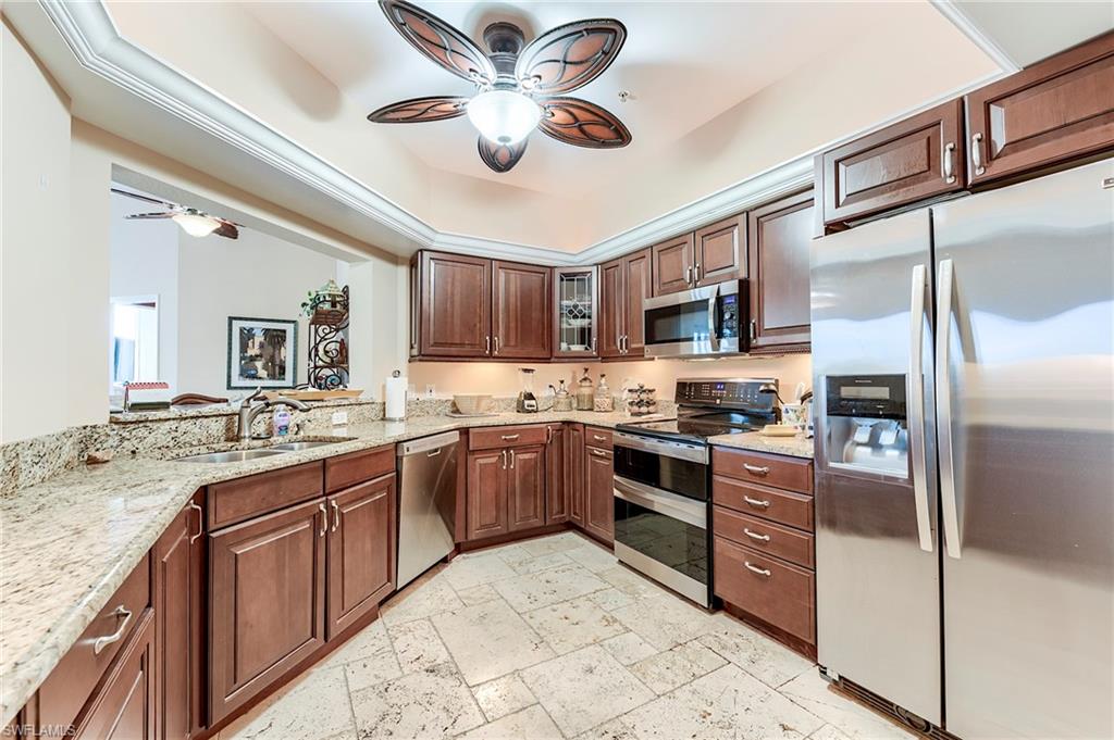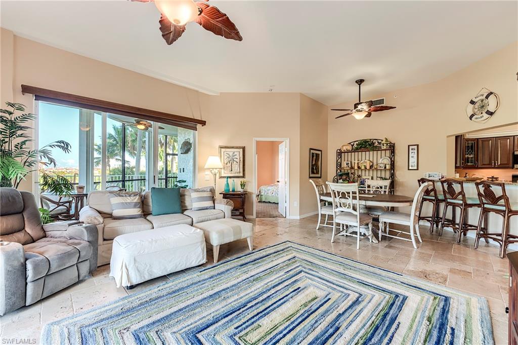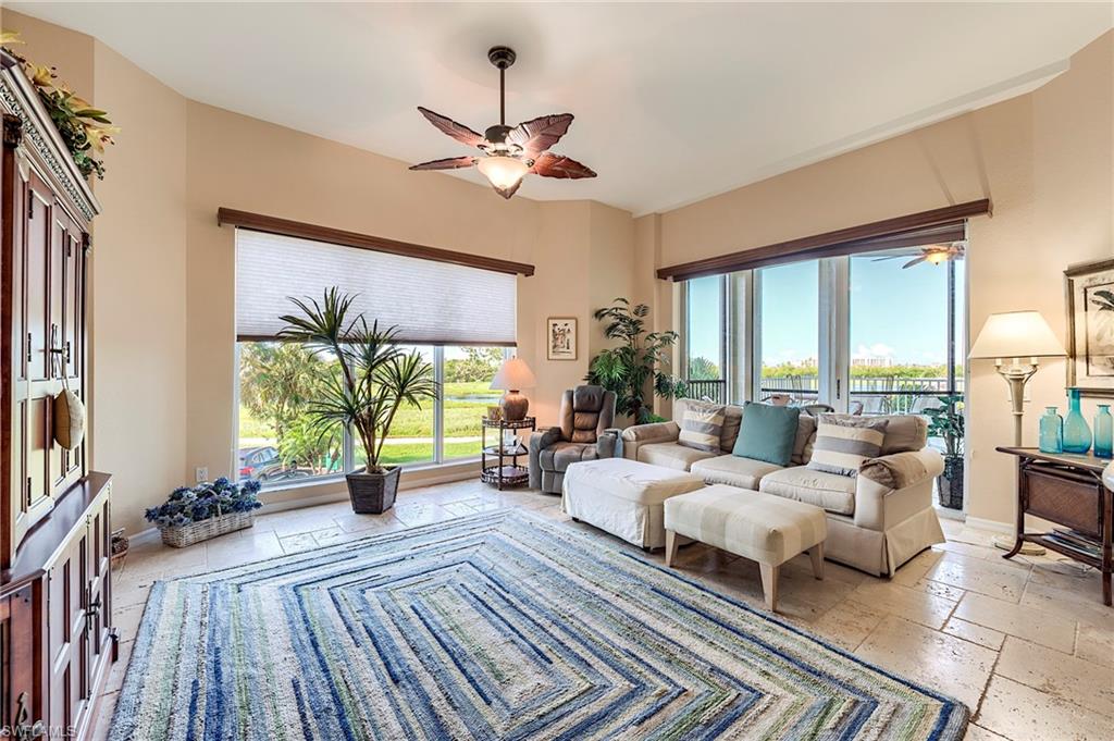 Enjoy serene bay and lake views from this spacious corner residence at Waterside. This second-level 3-bedroom, 2-bath home features 11-foot ceilings and an extended terrace for outdoor living, perfect for sunsets and watching the activity on Estero Bay. This condo is on the same level as the social room, gym and guest suites so a lot of your amenities are just steps away! The residence offers travertine flooring, upgraded carpet, granite countertops, stainless steel appliances, California closets, hurricane shutters, under-building parking, and extra storage. Offered furnished with some exclusions. Waterside residents enjoy resort-style amenities including a pool and spa, fitness center, sauna, steam room, tennis courts, social room, guest suites, walking/jogging path, fishing pier, and private beach access. Ideally located on the quiet south end of Fort Myers Beach with convenient access to restaurants, shopping, and Loveru2019s Key State Park. Boat docks available for lease or purchase!