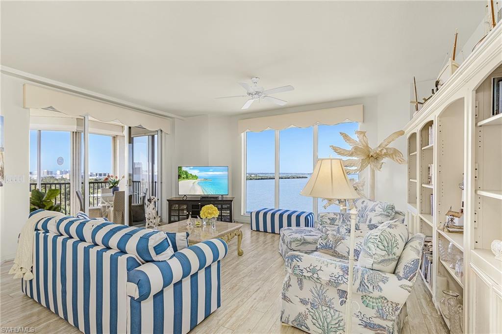 VIEWS, VIEWS, VIEWS! Breathtaking panoramic views of Estero Bay and the Gulf from this stunning 7th floor Waterside at Bay Beach condo. This 3 bed/2 bath condo offers water views from every window! The kitchen showcases elegant white shaker cabinets and stainless appliances, creating a fresh and contemporary cooking space. Natural light floods the living spaces, perfectly framing those spectacular water views that will never grow old. Enjoy daily spectacular evening sunsets! The over sized lanai is perfect for entertaining or just relaxing while watching dolphins and wildlife. This condo also offers 2 storage units and covered attached parking space. Amenities include: fitness room, locker room with sauna, 2 guest suites, community room, community pool, fishing pier, walking path, pickleball, tennis, bocce ball, chipping greens, golf driving cage and deeded beach access. Located on the south end of Fort Myers Beach close to Santini Plaza, restaurants, shopping Lover Key State Park and more! Boat docks available for purchase. Schedule a showing today!