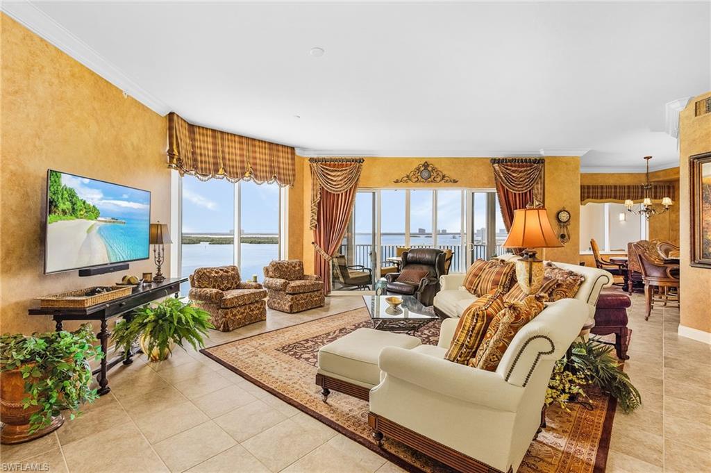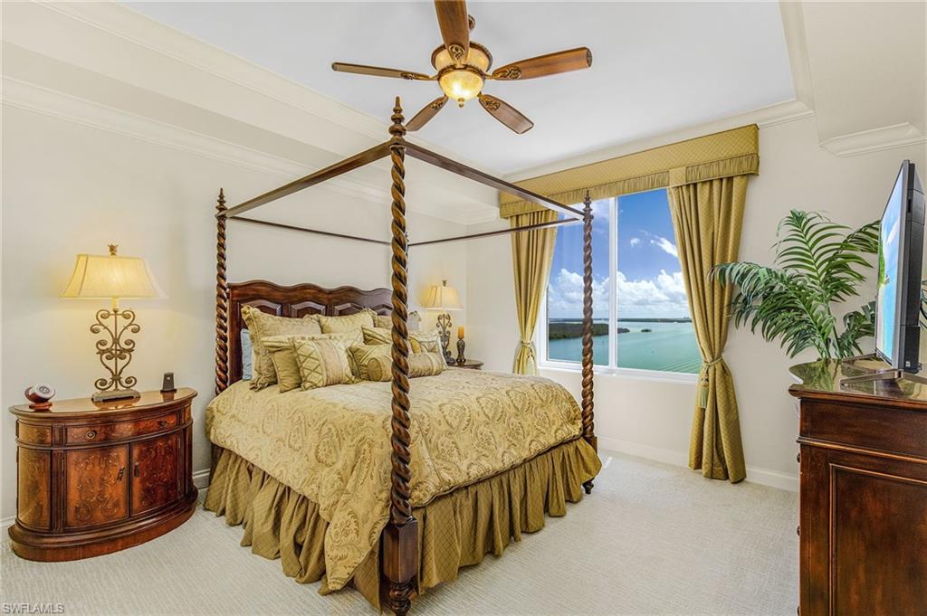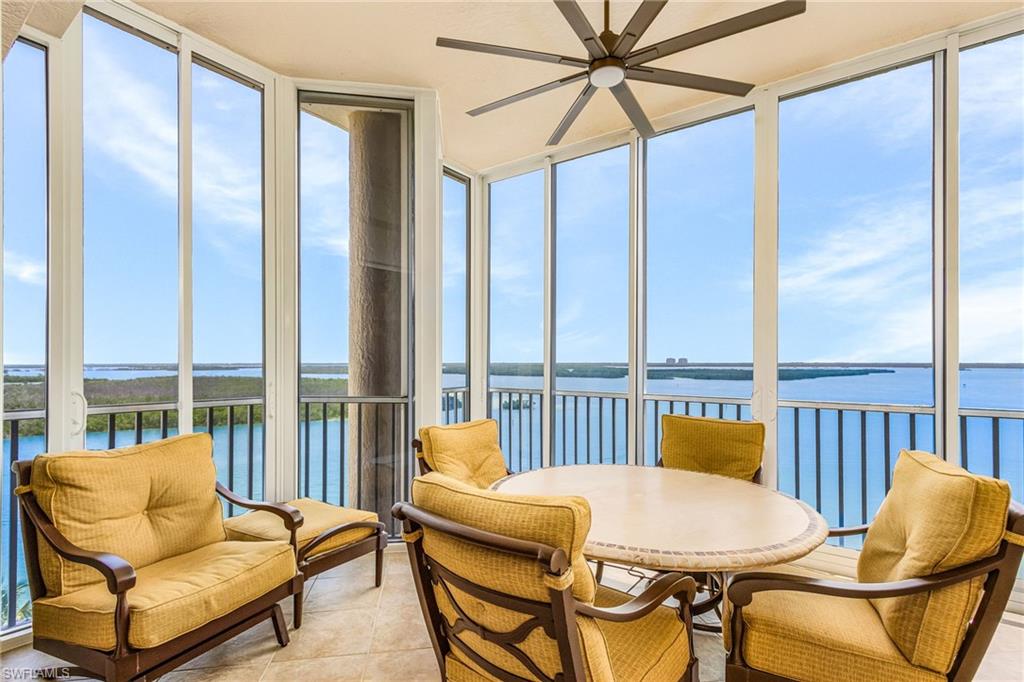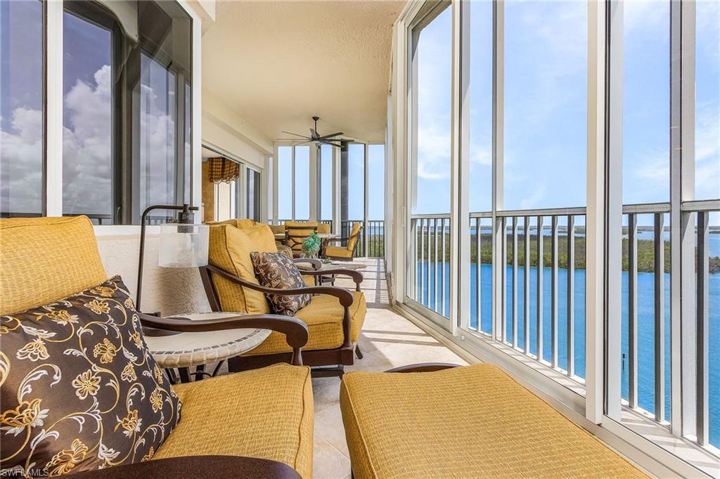 RARE opportunity to own this spectacular 3 bed+Den/4Bath PENTHOUSE within Dolphin Pointe at Waterside at Bay Beach. INCLUDED in the sale price are: a private pool CABANA, TWO GARAGE parking spaces and TWO storage units. Oversized Lanai with the BEST BAY VIEWS on Fort Myers Beach! Spacious living with over 3000 total sq feet, 11ft ceilings with multiple trays and open floor plan. The kitchen showcases beautiful granite countertops, tile backsplash, new appliances and built in wine fridge. New AC and newer water heater. Each bedroom has its own ensuite bathroom perfect for guest privacy. Enjoy peace of mind with impact resistant windows and doors as well as impact resistant glass enclosure doors on lanai. Sold Turnkey Furnished. Condo amenities include lobby security, 2 guest suites, fitness center pool/spa, sauna, and community room. Additional community amenities: deeded beach access, fishing pier, tennis courts, pickleball, chipping greens, driving cage and walking paths. Waterside is a gate community on the south end of the Island close to shopping, restaurants, Lovers Key State Park, Bonita Springs, airport and more.