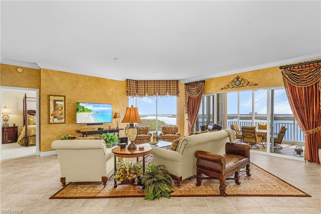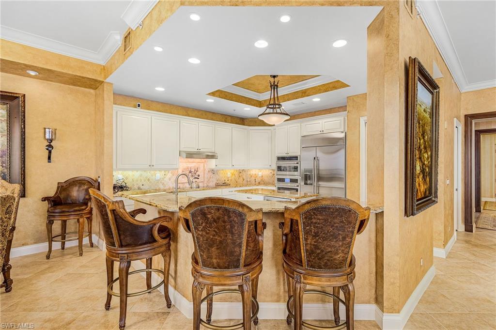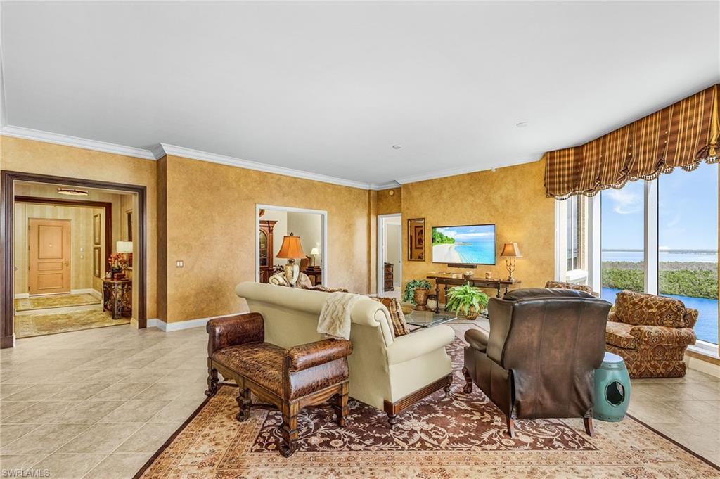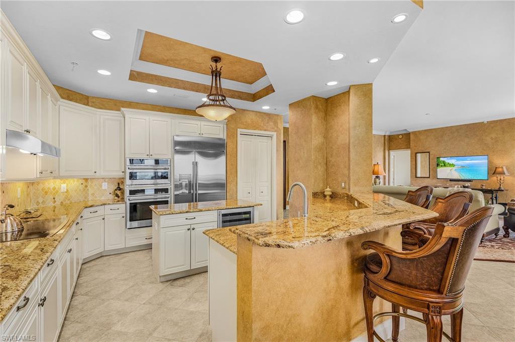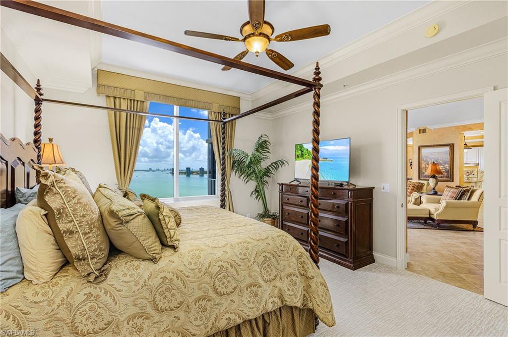 RARE opportunity to own this spectacular 3 bed+Den/4Bath PENTHOUSE within Dolphin Pointe at Waterside at Bay Beach. INCLUDED in the sale price are: a private pool CABANA, TWO GARAGE parking spaces and TWO storage units. Oversized Lanai with the BEST BAY VIEWS on Fort Myers Beach! Spacious living with over 3000 total sq feet, 11ft ceilings with multiple trays and open floor plan. The kitchen showcases beautiful granite countertops, tile backsplash, new appliances and built in wine fridge. New AC and newer water heater. Each bedroom has its own ensuite bathroom perfect for guest privacy. Enjoy peace of mind with impact resistant windows and doors as well as impact resistant glass enclosure doors on lanai. Sold Turnkey Furnished. Condo amenities include lobby security, 2 guest suites, fitness center pool/spa, sauna, and community room. Additional community amenities: deeded beach access, fishing pier, tennis courts, pickleball, chipping greens, driving cage and walking paths. Waterside is a gate community on the south end of the Island close to shopping, restaurants, Lovers Key State Park, Bonita Springs, airport and more.