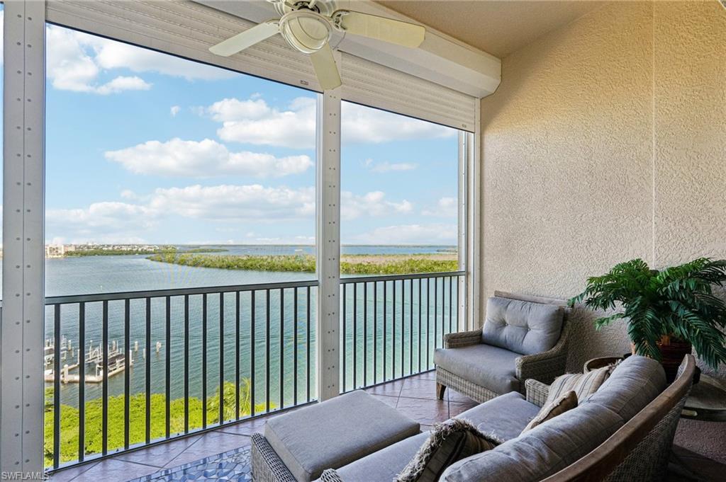Experience Elevated Island Living on Fort Myers Beach!Wake up each morning to the soft glow of a spectacular sunrise over Estero Bay from this beautifully furnished 3-bedroom, 2-bath penthouseu2014a perfect blend of coastal elegance and casual comfort. Every window captures peaceful water views and lush tropical scenery, while the desirable eastern exposure fills the home with gentle morning light and keeps it cool and comfortable throughout the day.Move-in ready, this tastefully furnished residence invites you to simply bring your swimsuit, flip-flops, and toothbrushu2014everything else is already in place for your island lifestyle.Nestled within the prestigious, gated Waterside community on the tranquil southern tip of Fort Myers Beach, residents enjoy exceptional resort-style amenities, including a spacious pool and spa, tennis courts, a modern fitness center, and a fishing pier with cleaning station for the angler at heart. Deeded pool cabanas and boat docks occasionally come up for sale, offering added opportunities for convenience and recreation.The community also offers guest suites available at a fraction of hotel rates, perfect for welcoming visiting family and friends. And with the security of an enclosed garage plus 24-hour gate access, peace of mind is built into your daily life.From your morning walk or bike ride to the nearby beach, cafu00e9s, and local shops, to evenings watching the city lights shimmer across the bay, every moment here celebrates the effortless beauty and warmth of coastal living. This is more than a home, itu2019s an invitation to the refined, relaxed lifestyle that makes Southwest Florida living truly special.Deeded pool cabanas and dock slips occasionally become available for purchase from fellow residents.