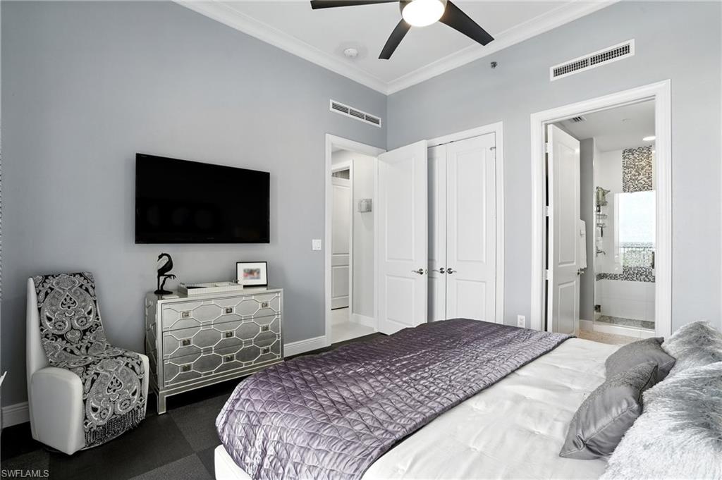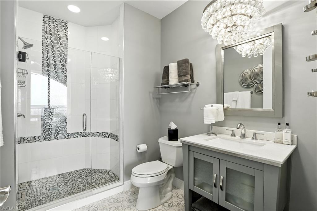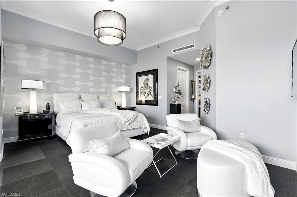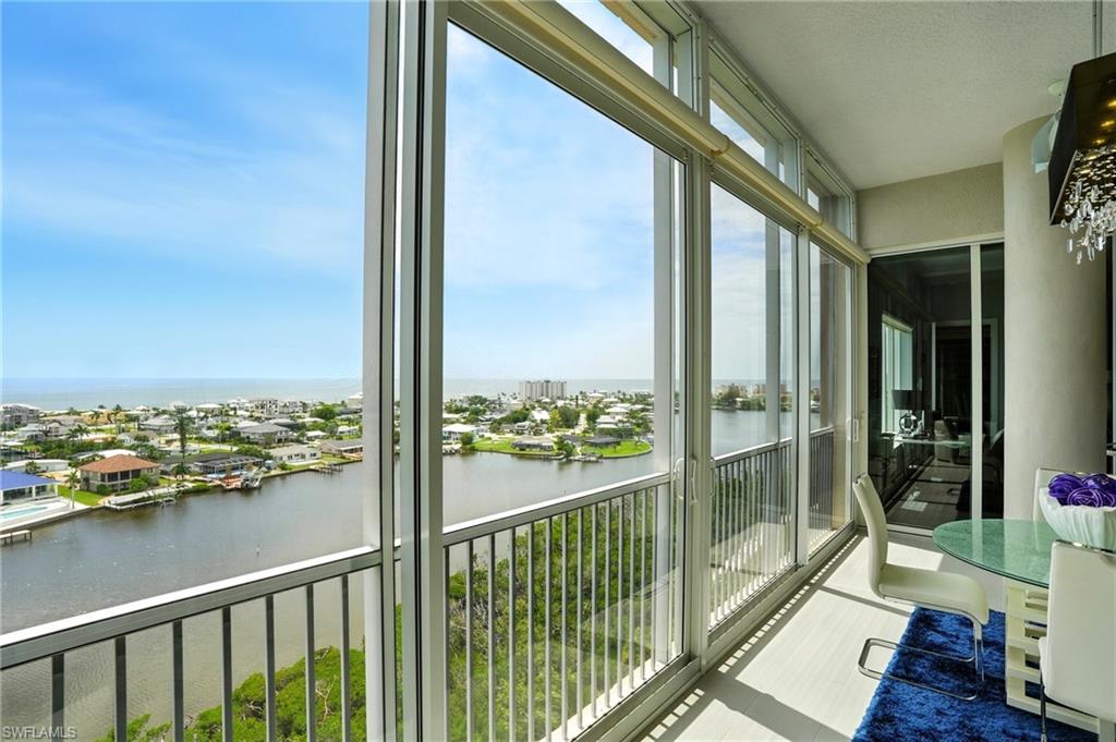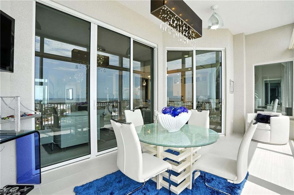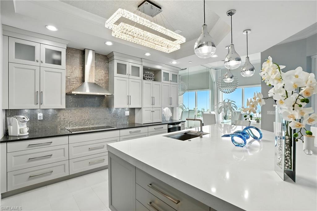 Perched at the very end of Bay Beach Lane, this exceptional three-bedroom, three-bathroom penthouse suite crowns the prestigious Waterside enclave, offering a lifestyle defined by elegance, privacy, and breathtaking Gulf and lagoon panoramas.Step inside and discover a residence curated with bespoke luxury. The gourmet kitchen is a chefu2019s dream, anchored by a Viking refrigerator and freezer, Bosch induction cooktop, dual wall ovens with microwave combo, and a beverage center with built-in ice maker. Custom cabinetryu2014including refined Mingel designsu2014frames an oversized, sculptural island that becomes the centerpiece for both intimate mornings and sophisticated entertaining.Thoughtful design details abound: motorized shades, designer light fixtures, and additional impact sliders expand the lanai into a seamless, air-conditioned extension of living space. The master suite is a sanctuary in itself, featuring a sitting area that opens to sweeping Gulf views, his-and-hers custom closets, a private office storage space, and a spa-inspired bath with soaking tub, walk-in shower, and tray ceilings accented with elegant detailing. Guest suites enjoy lofty ceilings, custom-designed bathrooms, and share access to a second expansive bayfront patio.For formal occasions, the dining area sets an exquisite tone with its mirrored wall and graceful proportions. All private suites feature Bolen woven vinyl tile and carefully selected finishes balance modern refinement with coastal warmth. Practical luxury includes a private elevator with direct penthouse access, an LG washer and dryer, and a PRIVATE AIR-CONDITIONED TWO-CAR GARAGE!!Beyond the residence, Waterside offers resort-style amenities exclusive to its residents: a lagoon-side pool and hot tub, sauna and steam room, fully equipped fitness center, lighted Har-Tru tennis courts, four pickleball courts, bocce, driving range, fishing pier, and two rentable guest suitesu2014all complemented by deeded beach access.With 2,605 square feet of impeccably designed living space, this penthouse is not merely a home, but a statement of refined coastal living. At Waterside, every detail reflects the pinnacle of luxury at the wateru2019s edge.