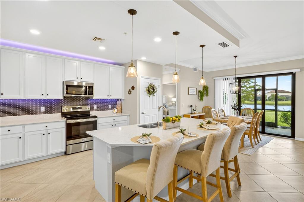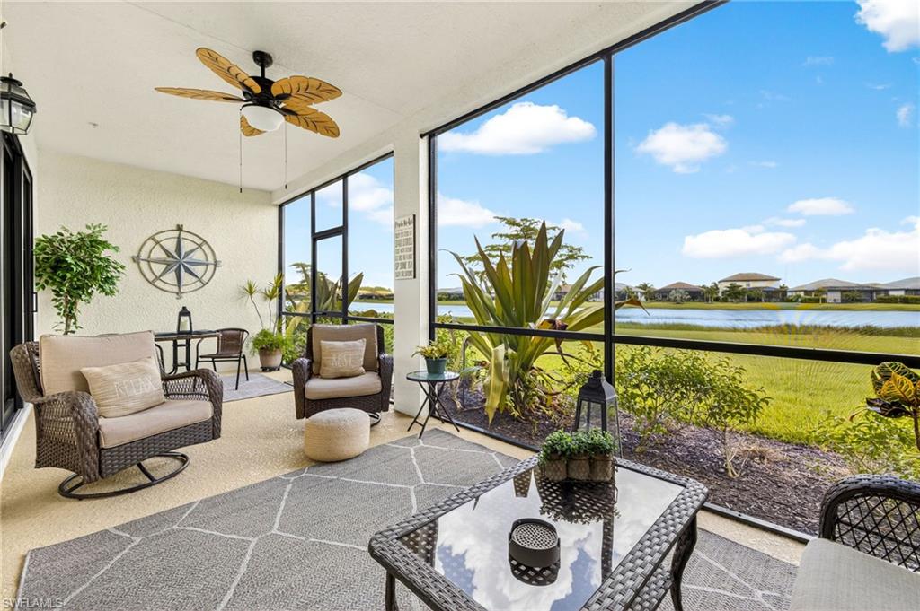 Come live the resort lifestyle in one of SW Florida's premiere communities, Arborwood Preserve. Lake front units like this one rarely come up on the market. You'll appreciate how this home has been meticulously cared for and gently lived in. Whether you're looking for year-round or seasonal living, this gorgeous condominium will check all your boxes. You'll love the open floorpan with tons of natural light flowing in from the dual impact-resistant storm-rated sliding doors. The kitchen is thoughtfully laid out with a large island, stainless steel appliance suite featuring an upgraded Whirlpool French-door refrigerator, large pantry and tons of cabinets topped off with matching quartz countertops. The master bedroom is large and expansive and features a roomy ensuite and large walk-in closet. A thoughtful split-bedroom floor plan gives guests privacy and the home features a den/office that can be used as guest overflow space or work from home. Fiber optic internet with 1gb capabilities and a whole-home router ensures you're well connected to the outside world.The crown molding is a nice touch to the high ceilings. The screened in lanai is a peaceful setting with gorgeous views for relaxing, dining or entertaining. Impact windows and doors throughout the unit offer security during storms. Other owner upgrades include a RING alarm system, under/over cabinet lighting (can be changed to any color), tile backsplash, solar window tinting, patio sunshade, main electrical panel surge protection, epoxy flake garage floor and garage shelving. Another bonus is this unit is located next to the overflow and guest parking spaces. Arborwood Preserve is located out of any hazardous flood zone and has never lost power during any major storm event to date. Conveniently located in a peaceful neighborhood off of the Treeline Ave corridor, you will be in close proximity to RSW Airport, spring training parks, dining, shopping and entertainment. The town center has a resort style pool, bar/restaurant, complimentary coffee room, fitness center, yoga studio, card rooms theater and art studio. Lighted bocce ball, pickle ball and clay tennis courts will keep you active. South Florida living at its best! Book your showing and see why this community is such a desirable place to live.