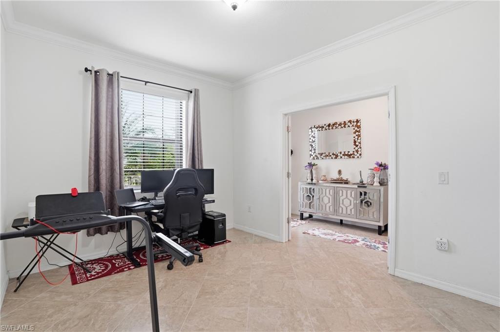 Set at the end of a quiet cul-de-sac in Arborwood Preserve, this two-story lakefront home offers an expansive layout and a backyard that enjoys extra privacy rarely found in the neighborhood. The flexible floor plan includes a den upgraded with custom french doors to create a true private office (or place to hide the kid toys), two separate A/C systems for efficient comfort on both levels, and an EV charger in the garage. Enjoy peaceful water views while living in a community known for its resort-style pool, on-site restaurant & bar, coffee lounge, fitness center, pickleball and bocce courts, movie theater, hobby rooms, and more - all within a gated entrance staffed by a live attendant. Ideally located near I-75, RSW International Airport, shopping, dining, and everyday conveniences, this home delivers both lifestyle and location.